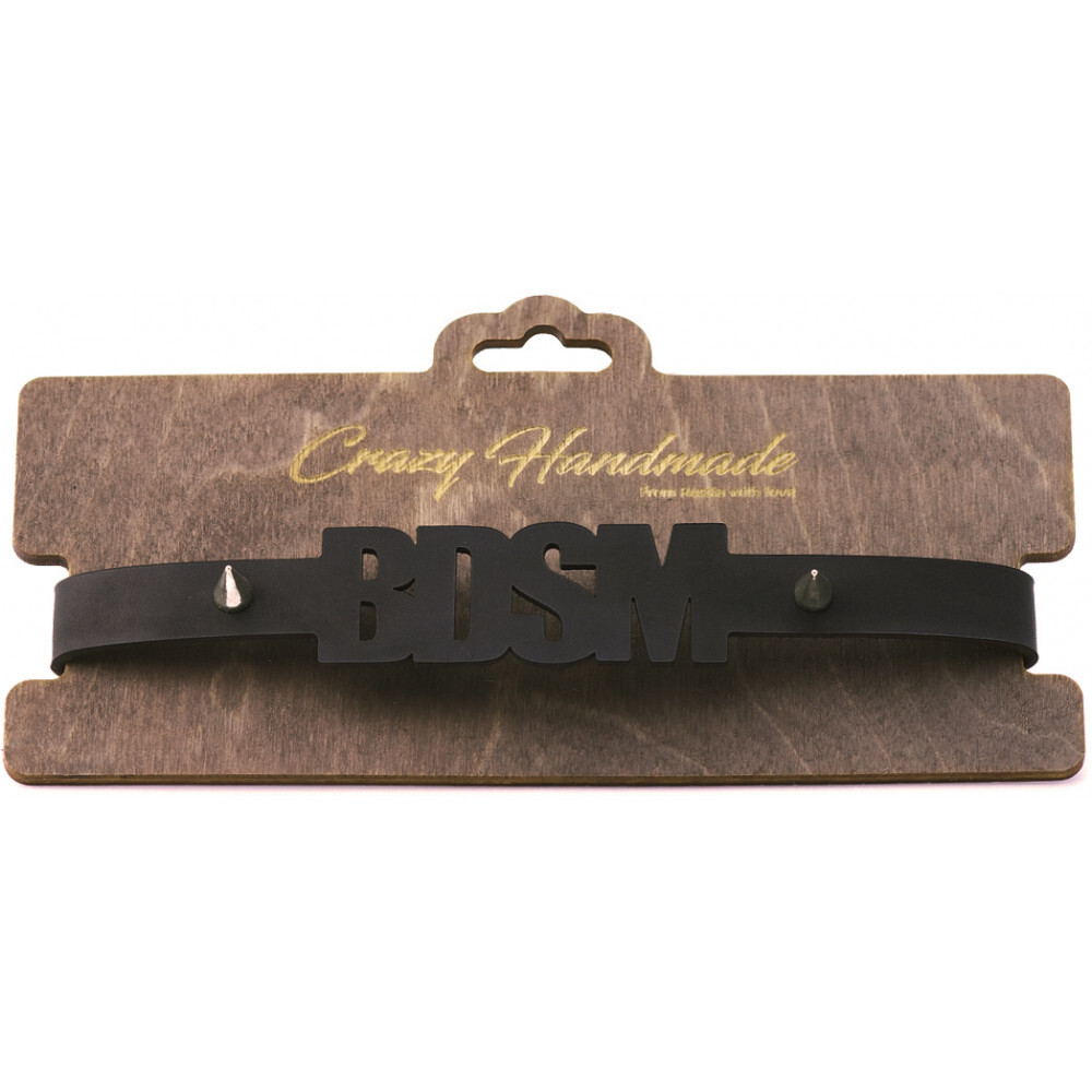 Чокер из натуральной кожи с буквами BDSM и шипами Crazy Handmade