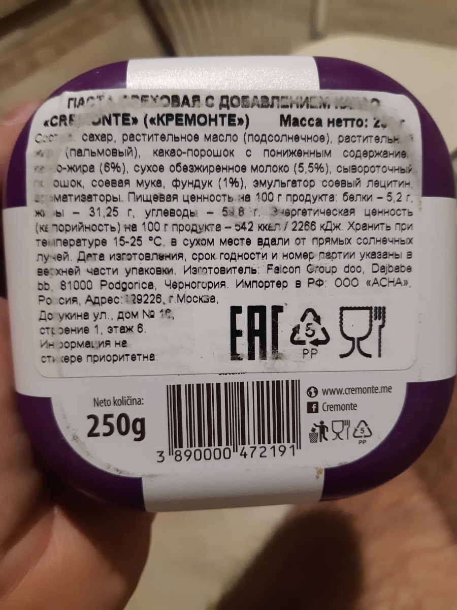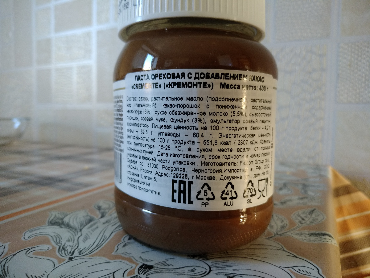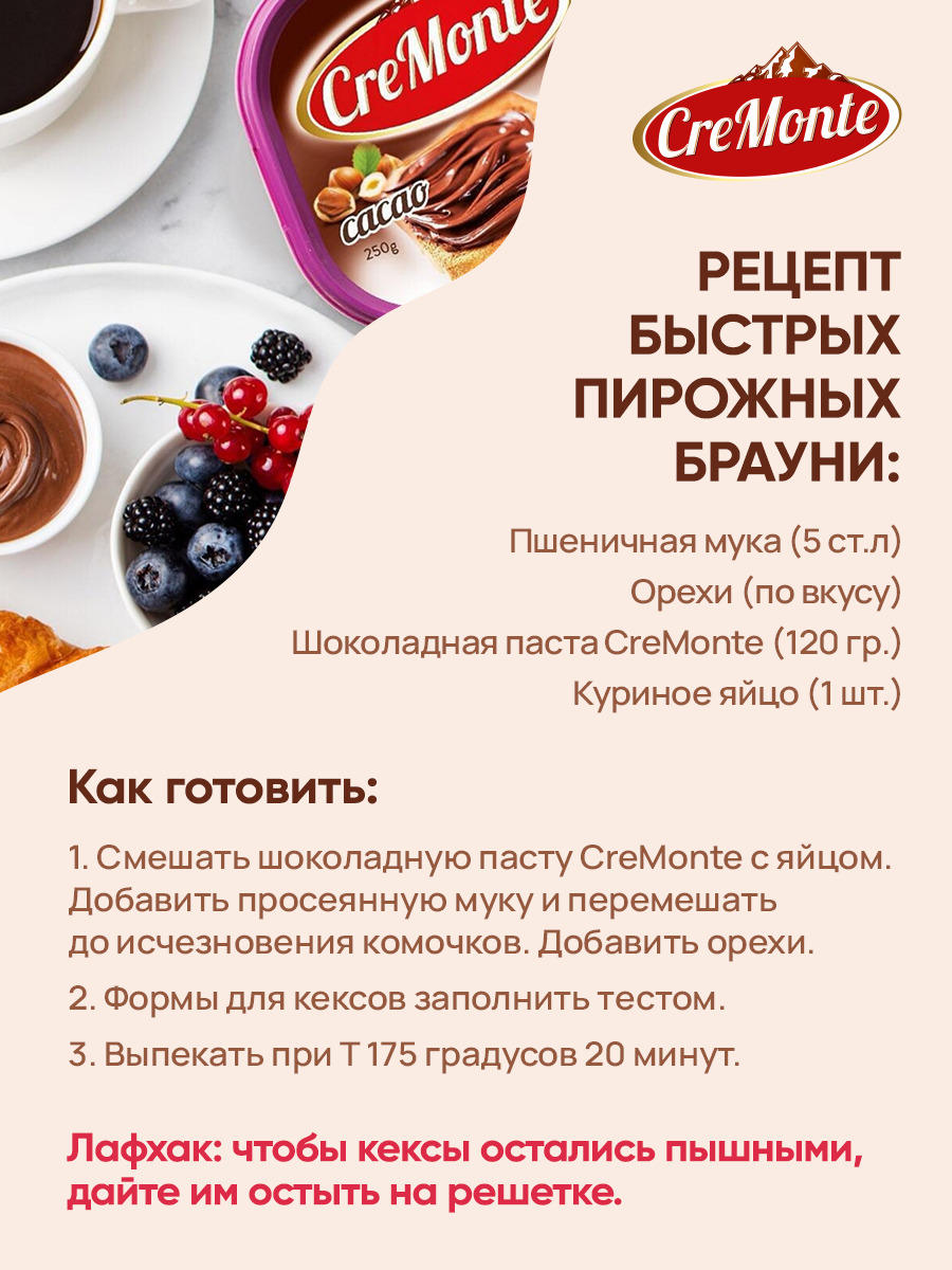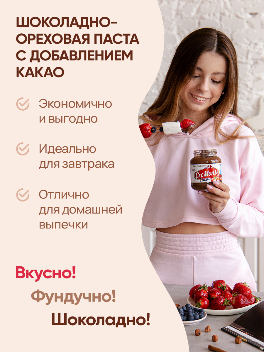 Паста орехово-шоколадная CreMonte Cacao с добавлением какао, 250 г