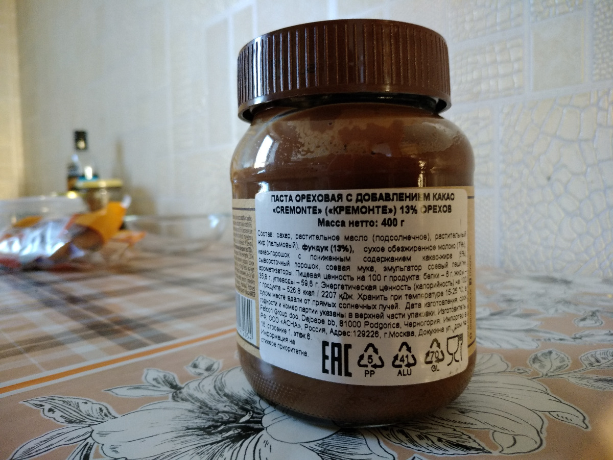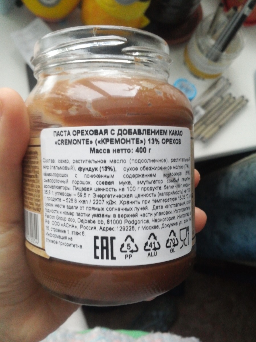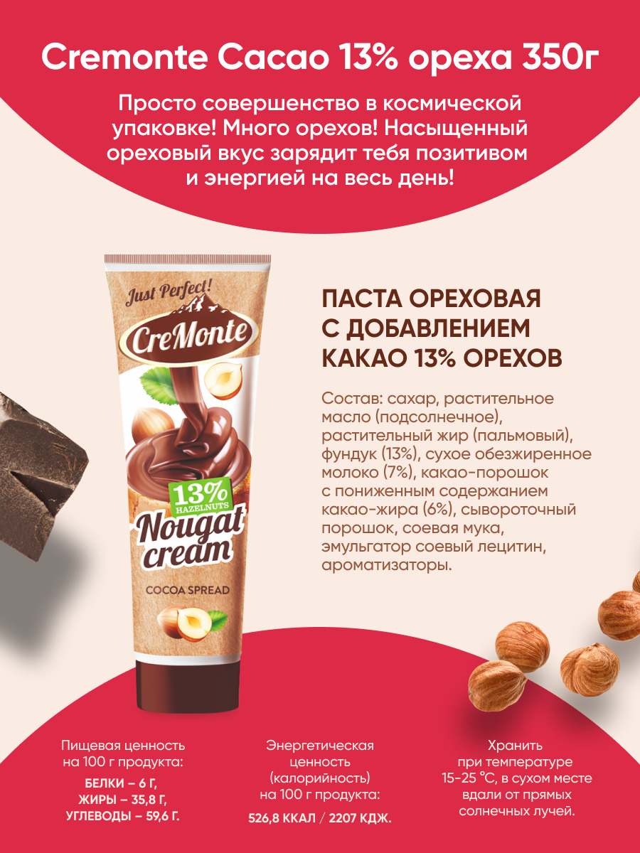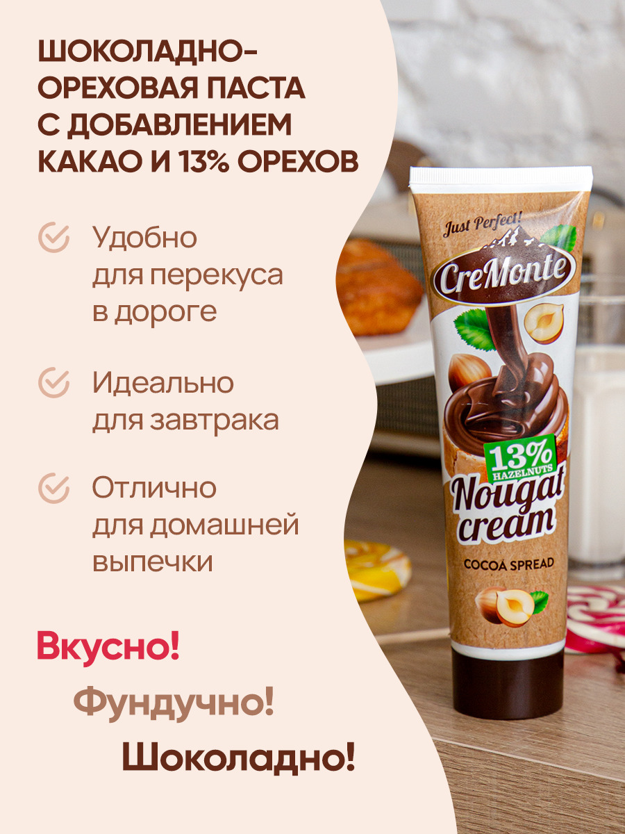 Паста орехово-шоколадная CreMonte Cacao с добавлением какао 13% ореха туба, 350 г