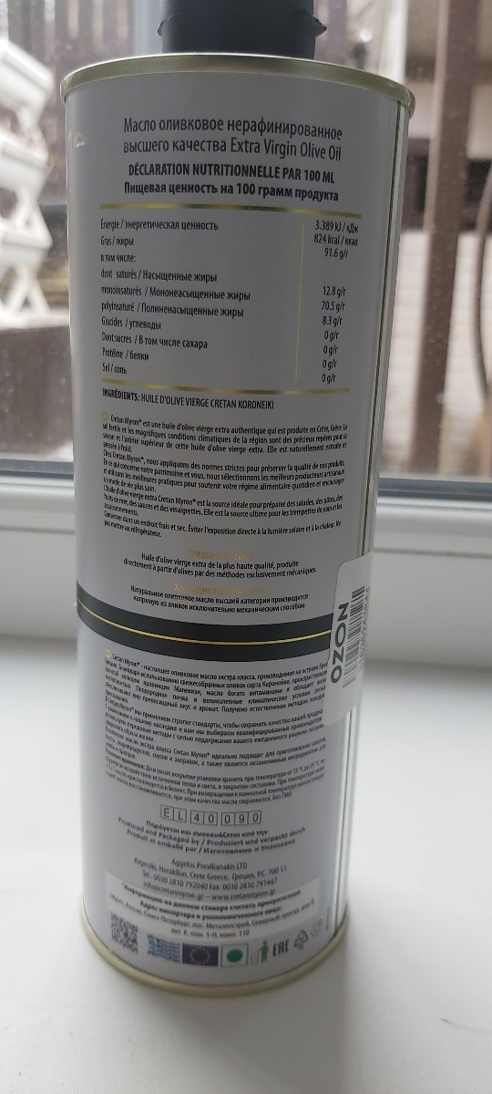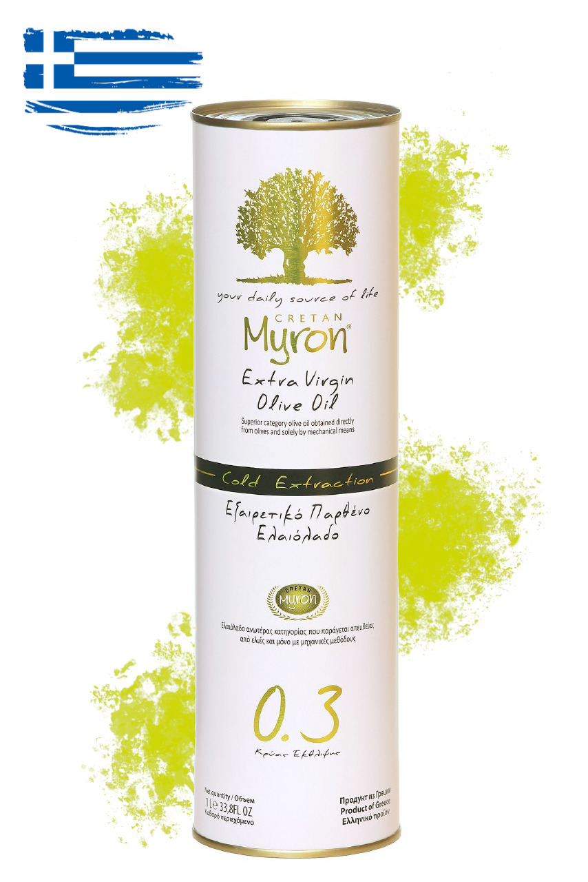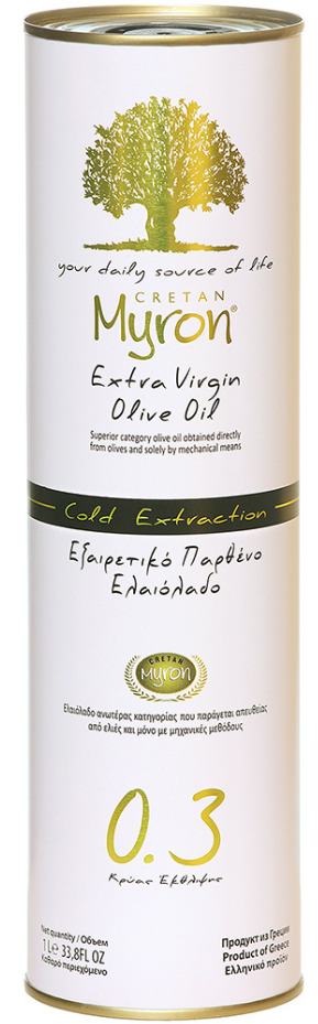 Оливковое масло Cretan Myron Extra Virgin Olive Oil, нерафинированное, высшего качества, жестяная банка, 1л (Греция)