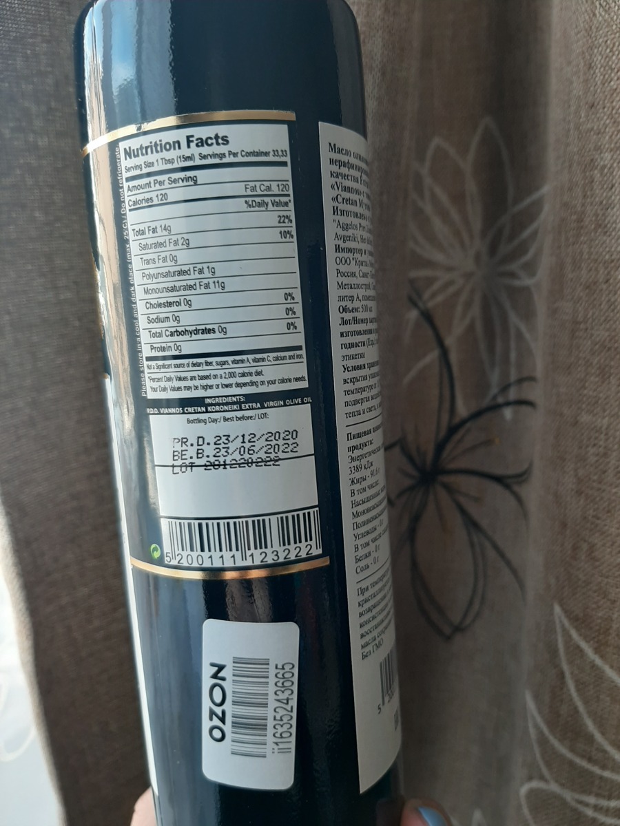 Оливковое масло Cretan Myron Extra Virgin Olive Oil, нерафинированное, высшего качества, жестяная банка, 500 мл (Греция)