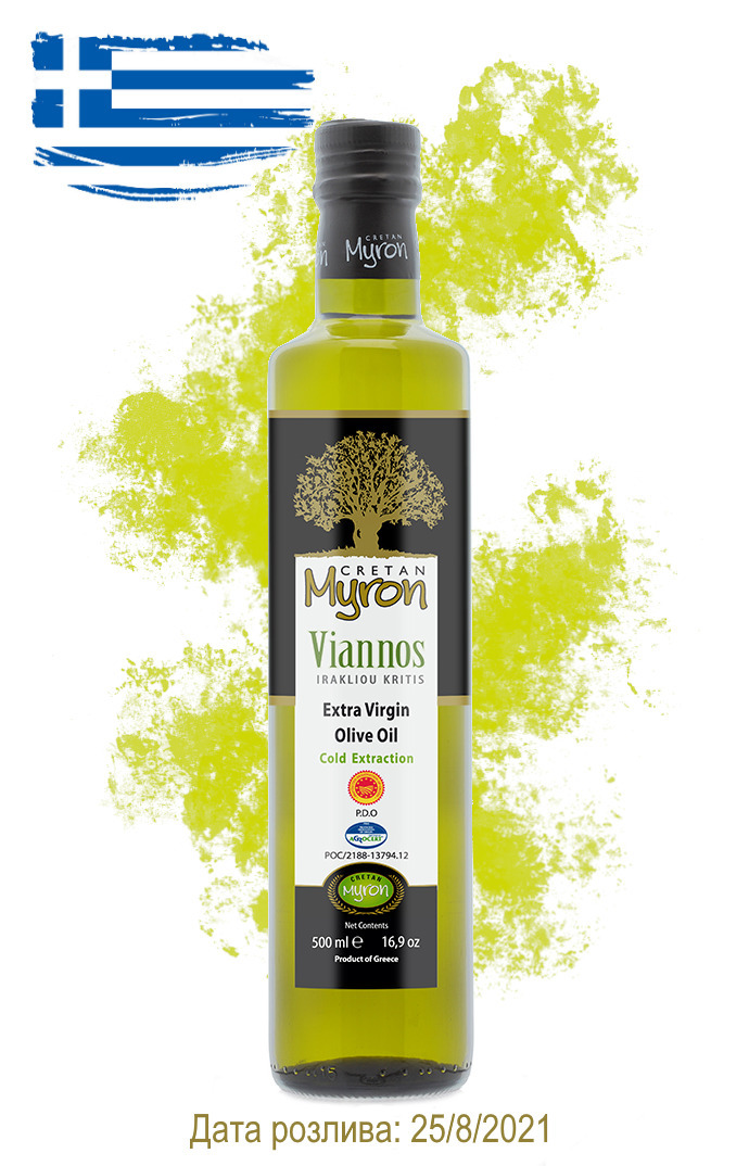 Оливковое масло Cretan Myron Extra Virgin Olive Oil, нерафинированное, высшего качества, стеклянная бутылка, 500 мл (Греция)