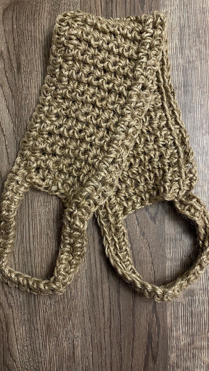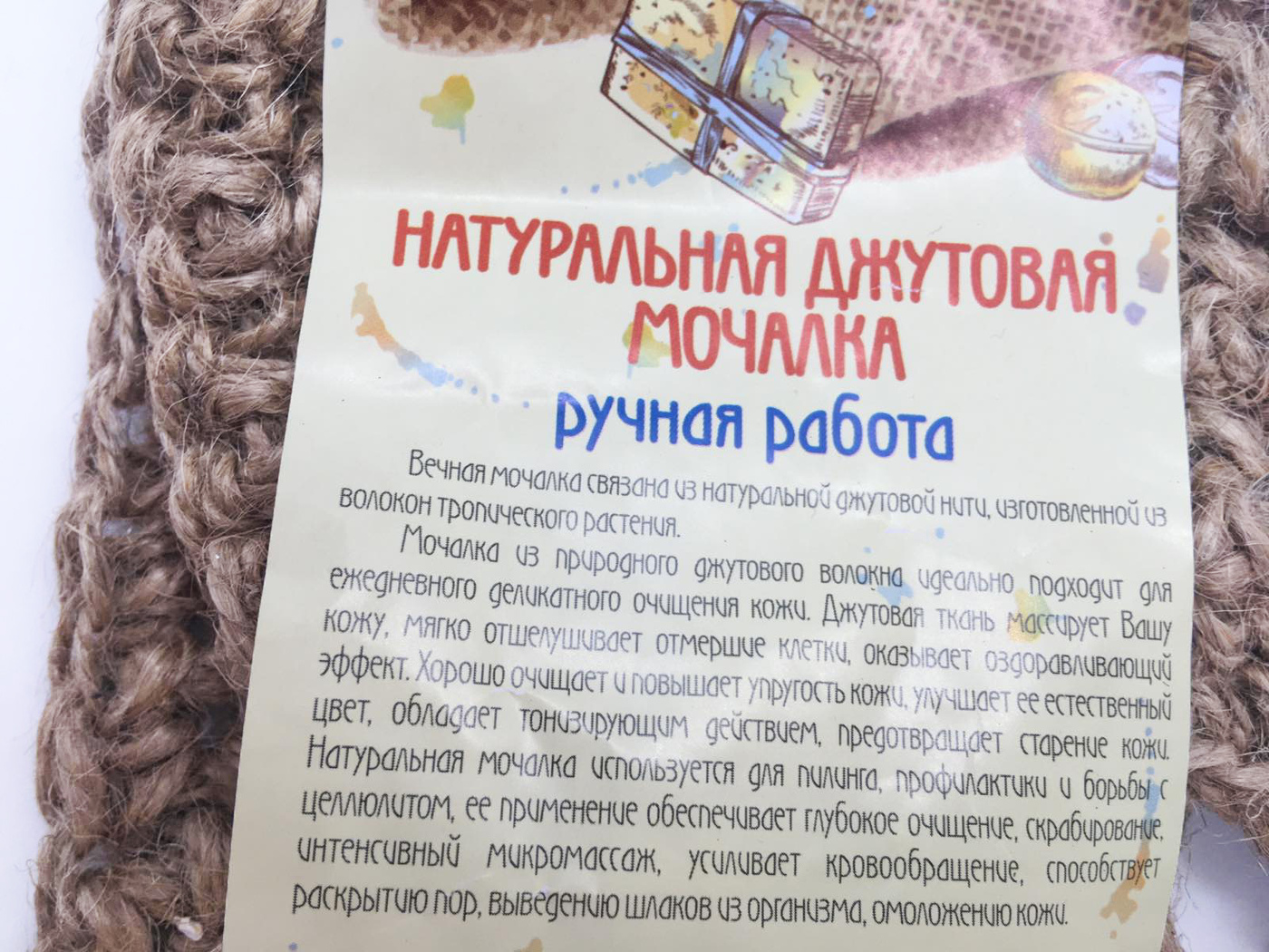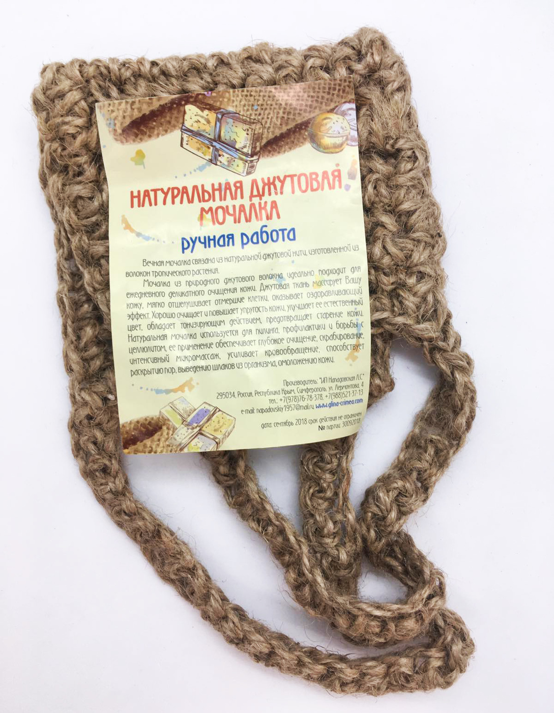 Крымская мочалка джутовая с ручками для тела/ ручная работа/ жесткая/ 10х30 см.