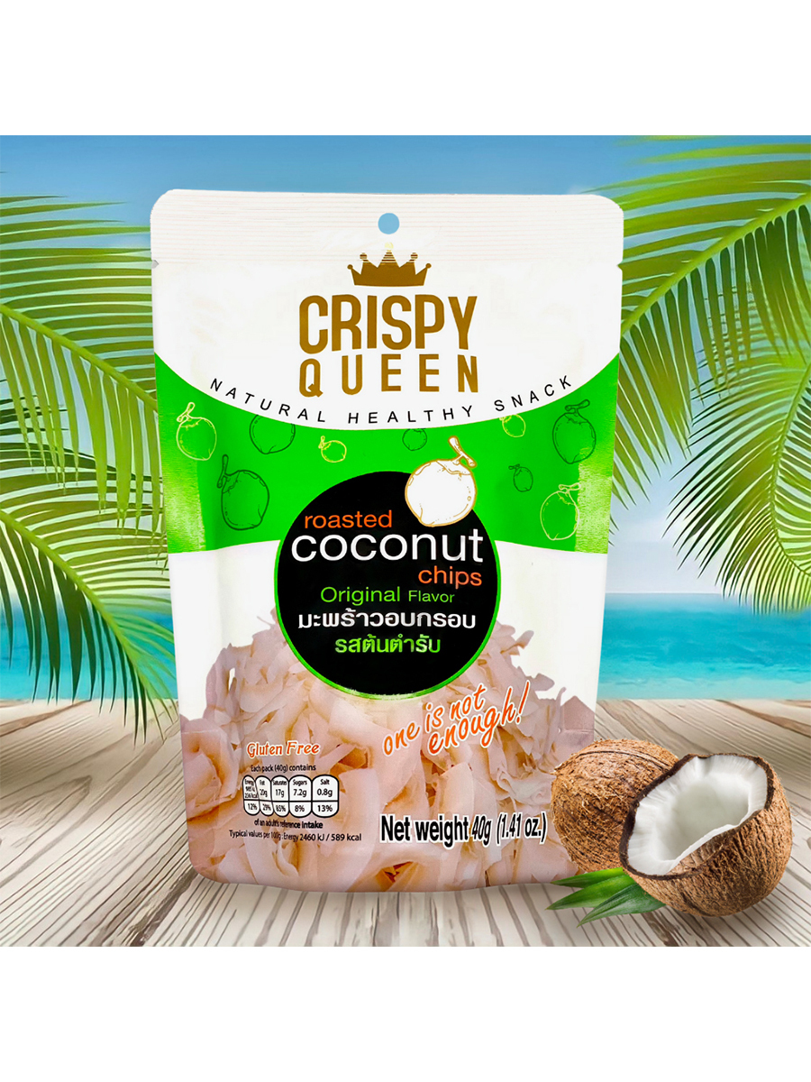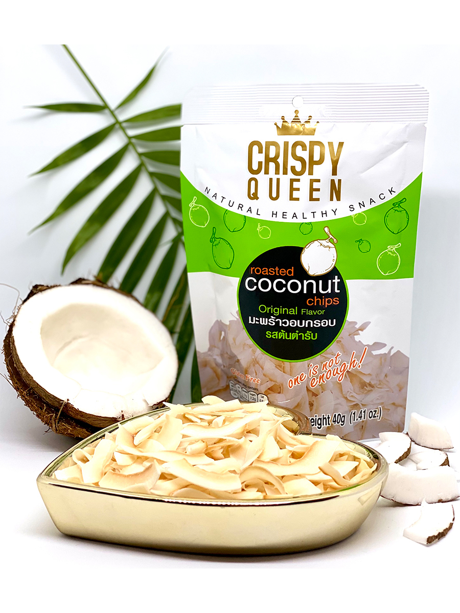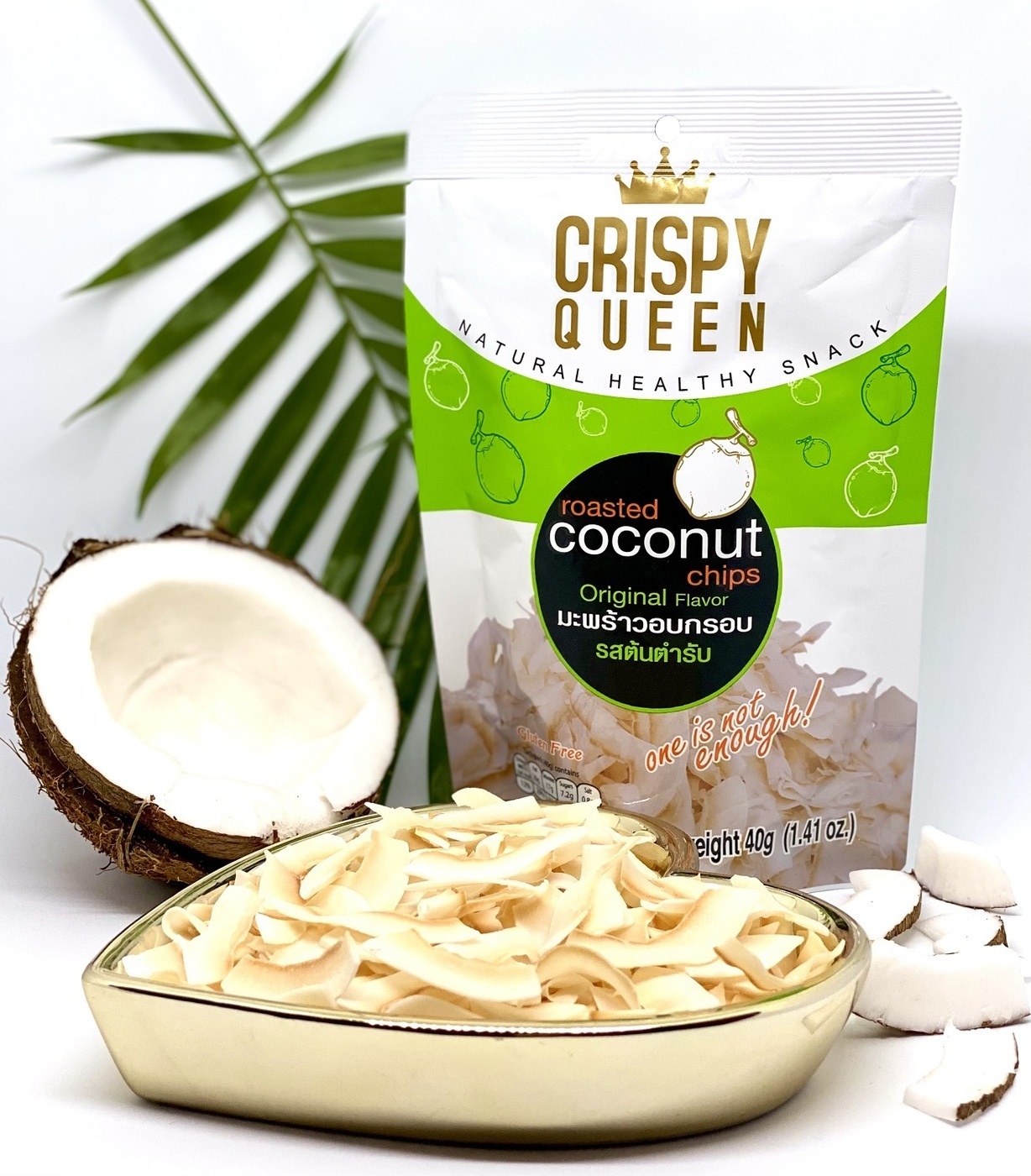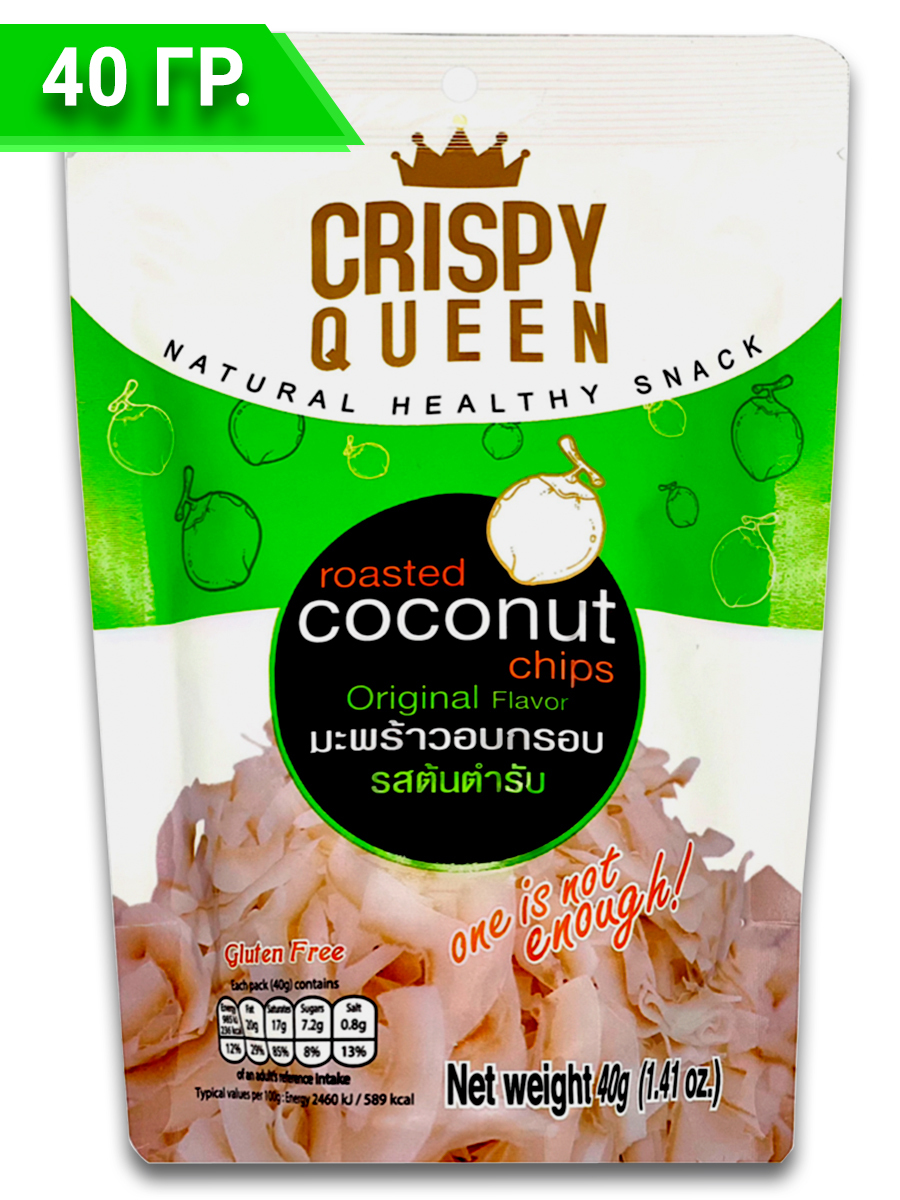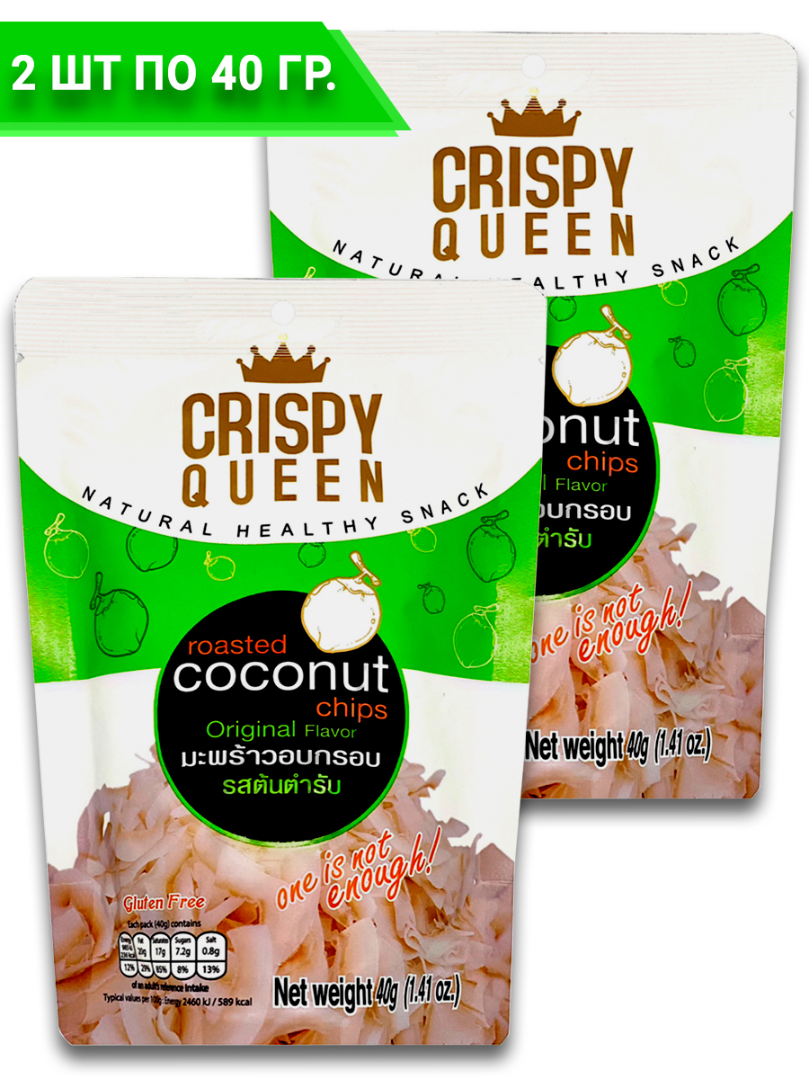 КОКОСОВЫЕ ЧИПСЫ CRISPY QUEEN 2шт по 40г/ НАТУРАЛЬНЫЕ ПРОДУКТЫ СНЕКИ СУХОФРУКТЫ СУПЕРФУД СТРУЖКА ИЗ КОКОСА ТАИЛАНД