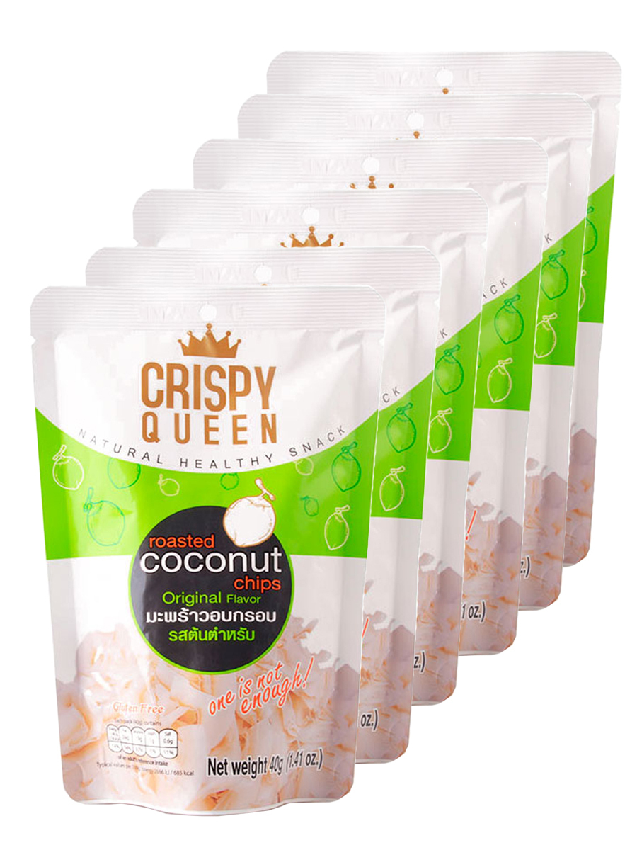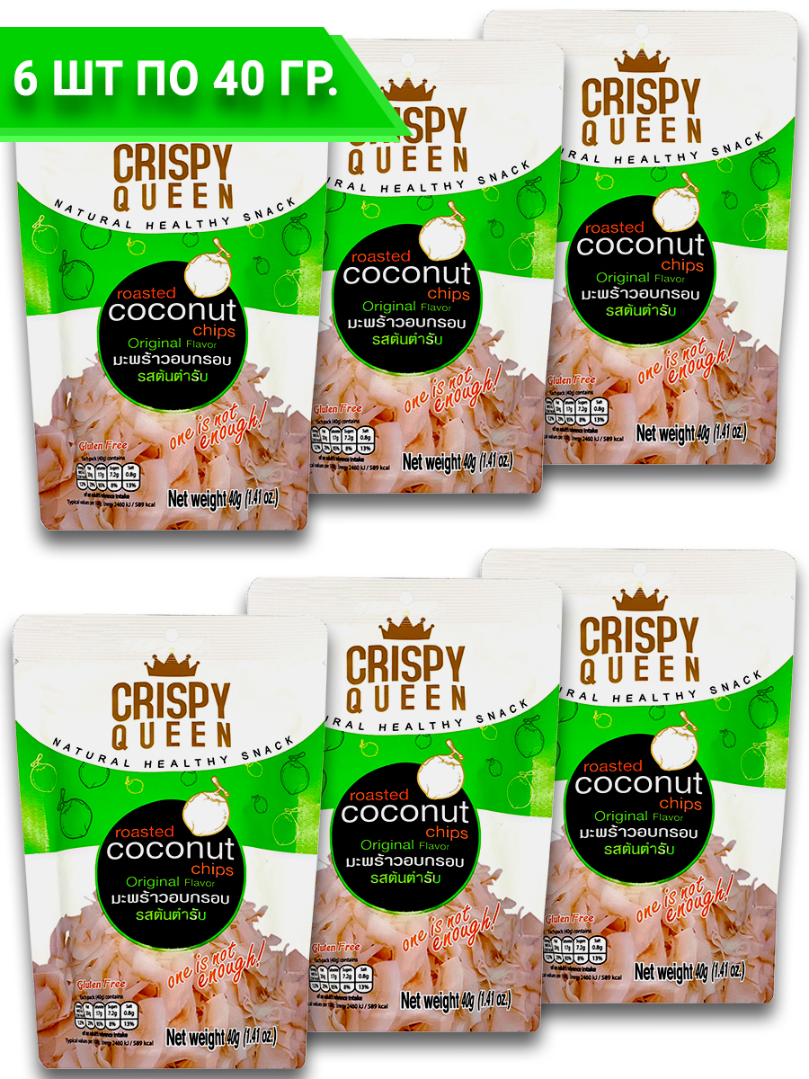 Кокосовые чипсы CRISPY QUEEN 6 пачек по 40 гр 100% натуральные ( Тайланд ) - правильное питание полезный перекус