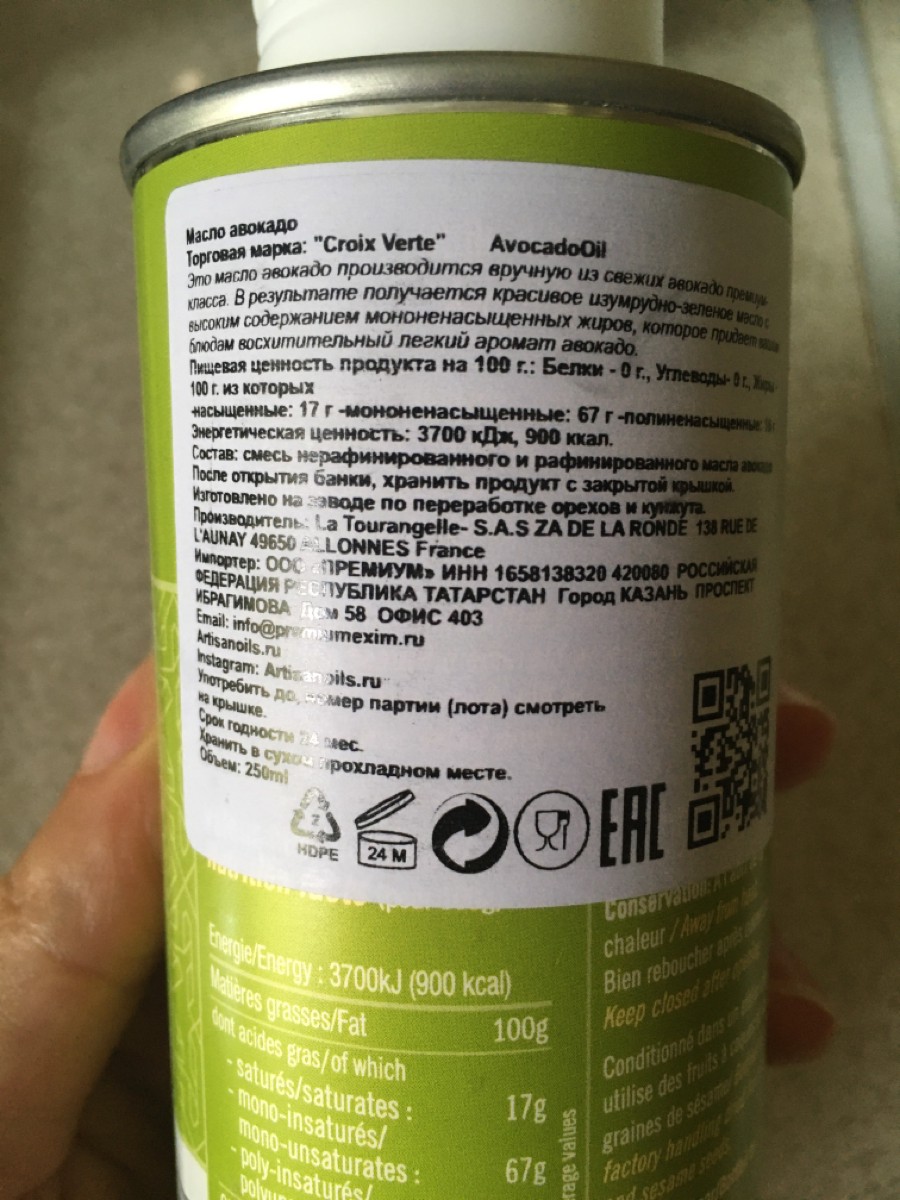 Масло Авокадо 250 мл "Куаверт" CROIX VERTE