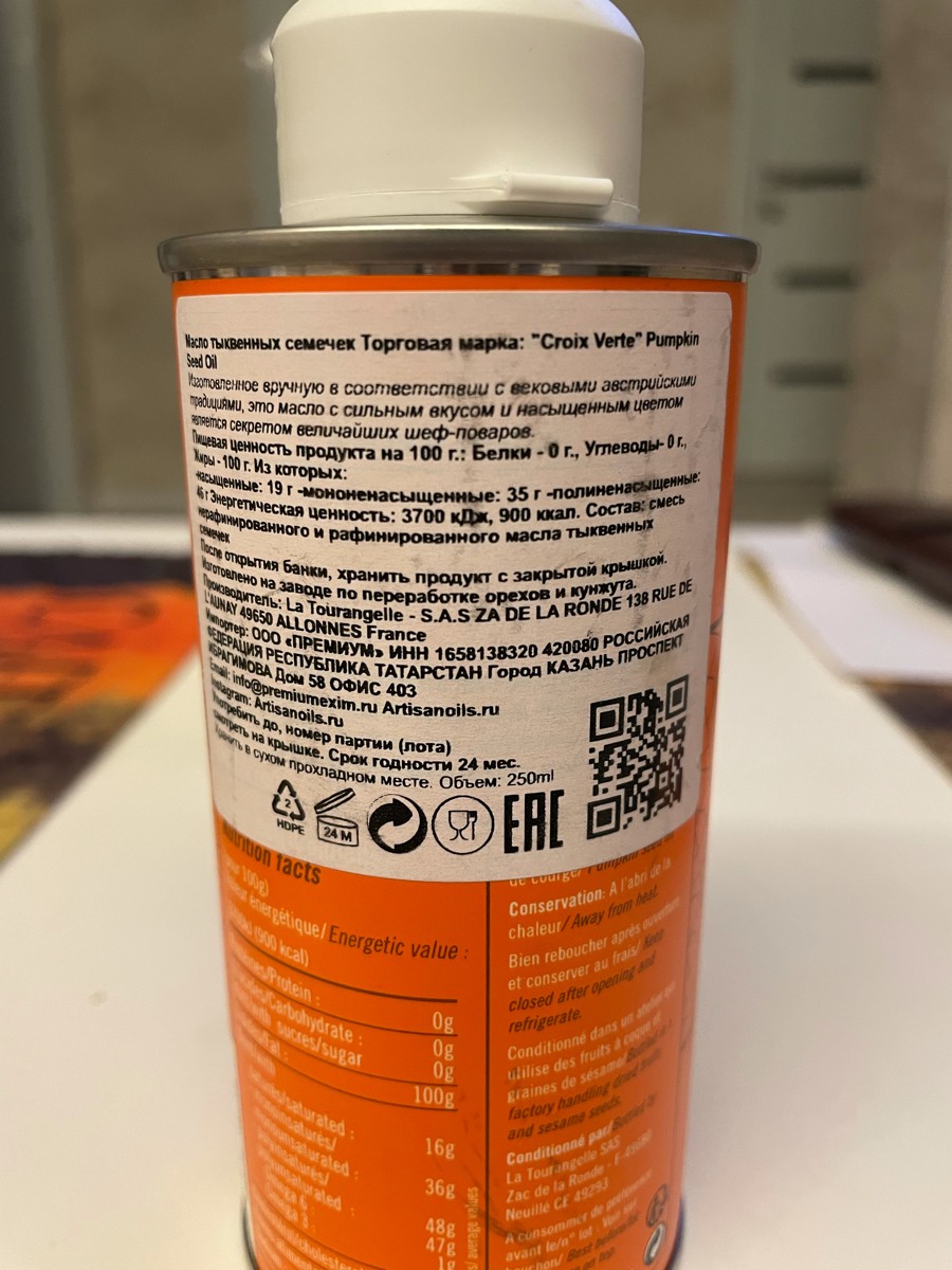 МАСЛО ТЫКВЕННЫХ СЕМЕЧЕК PUMPKIN SEED OIL CROIX VERTE 250 ml
