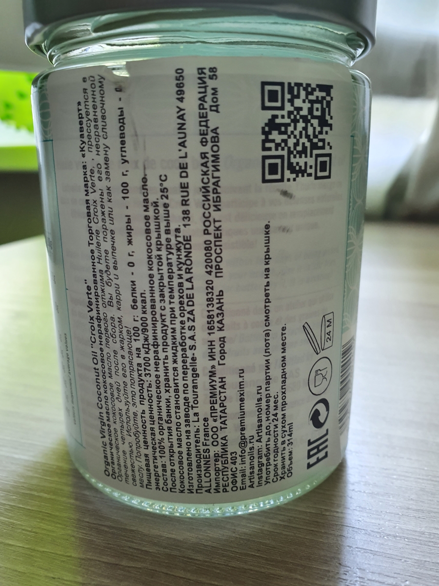 Кокосовое масло Origine Philippines CROIX VERTE, первого отжима, нерафинированное, 314 мл
