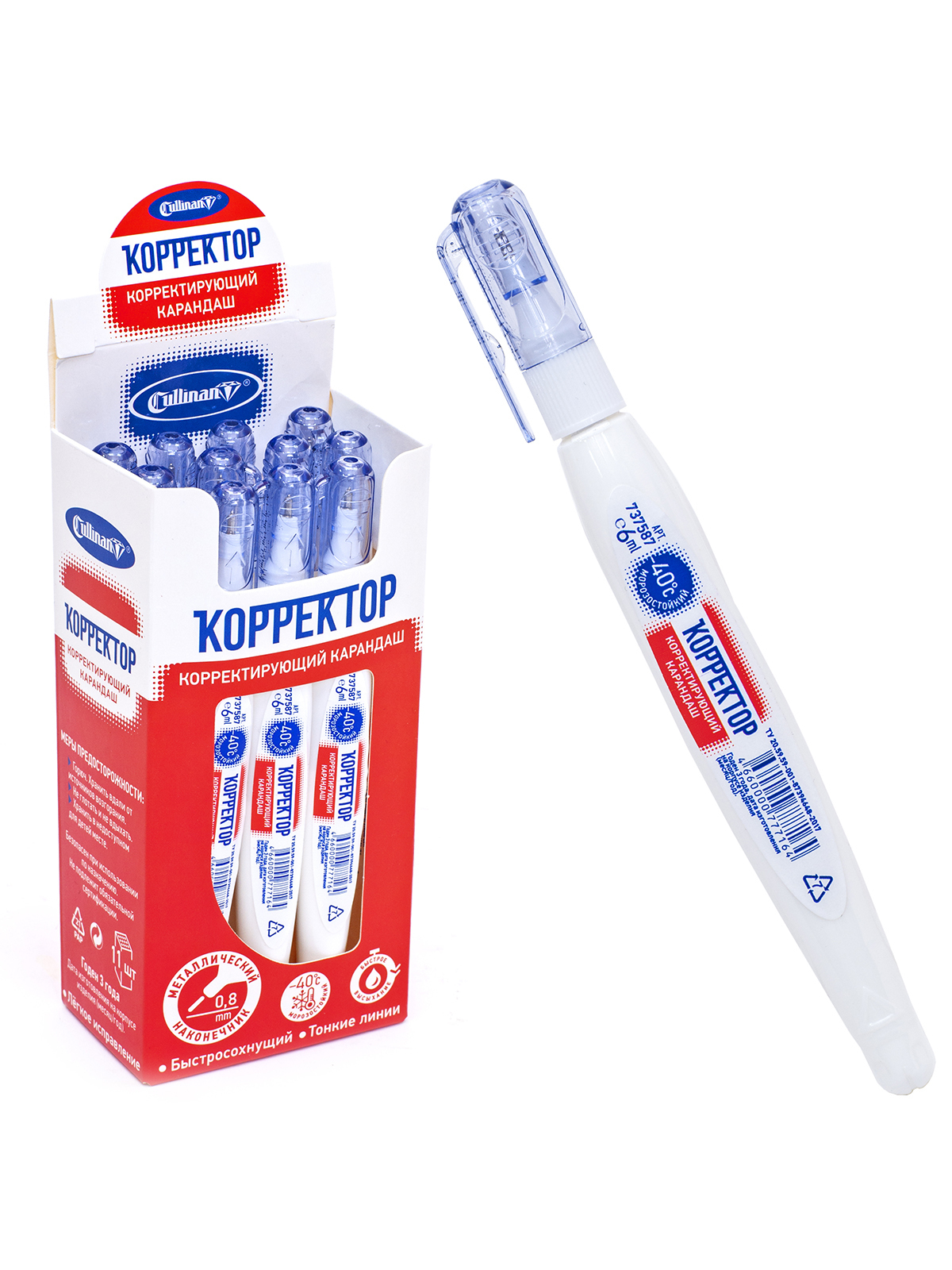 Корректирующая ручка КорРекТор Slim 6мл, комплект 11 шт,морозостойкая, металлический наконечник