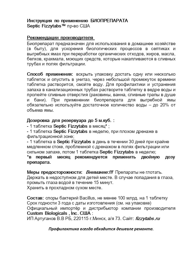 Бактерии для септиков и выгребных ям "Septic Fizzytabs", пр-ва США, упаковка на 3-6 месяцев.