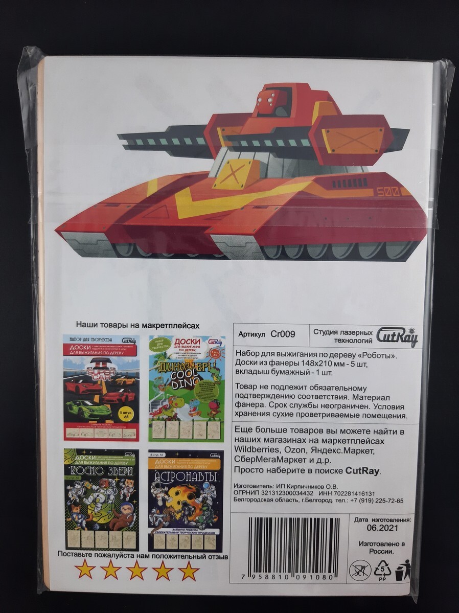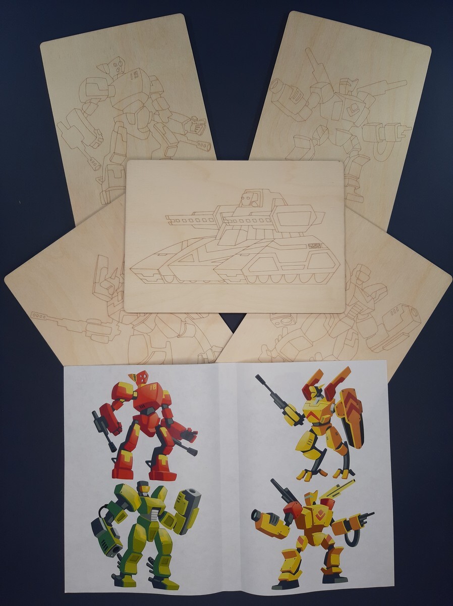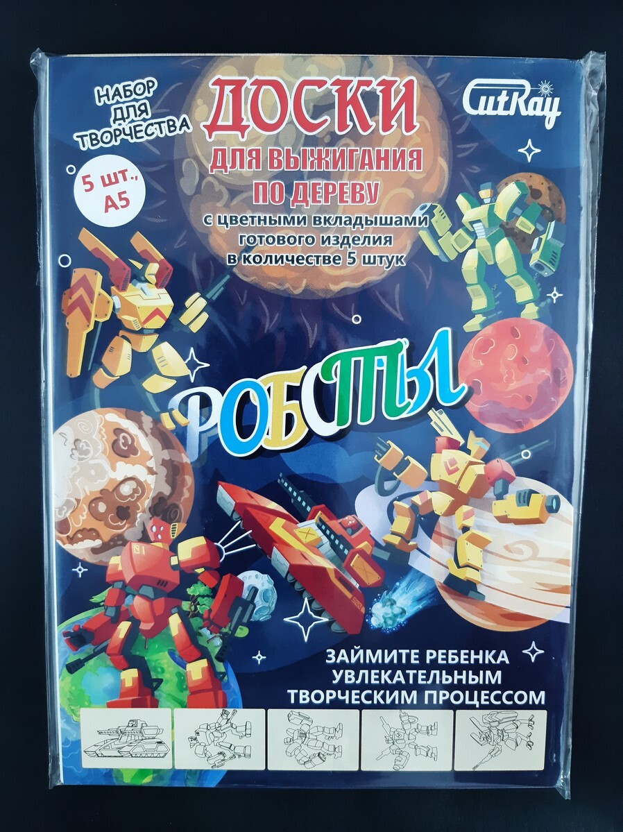 Набор, доски для выжигания и рисования по дереву "Роботы", А5, 5 шт, для творчества, детские