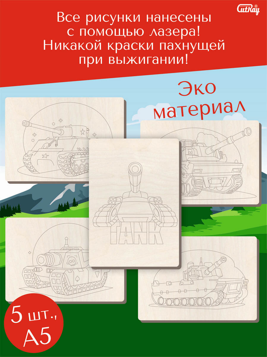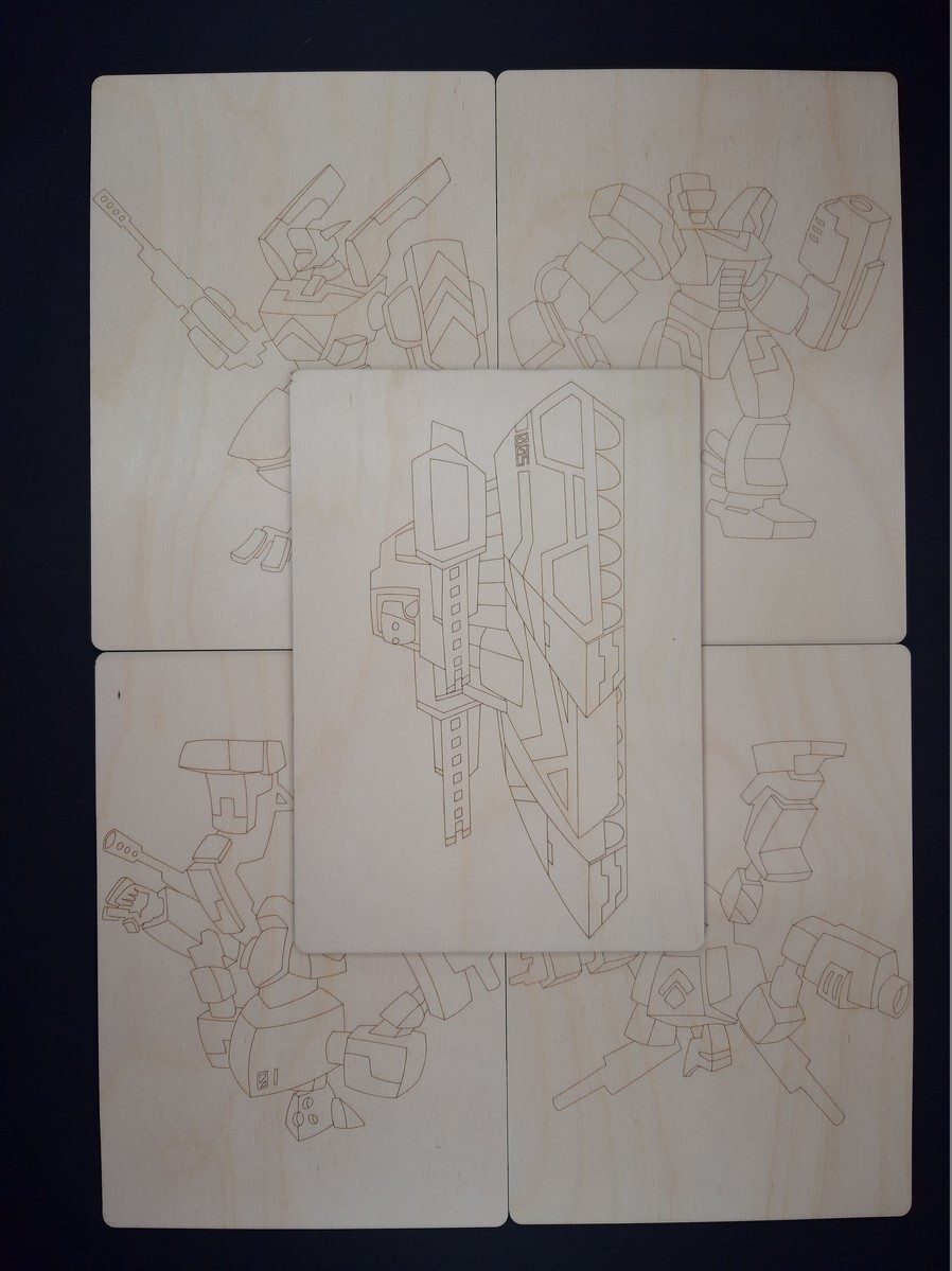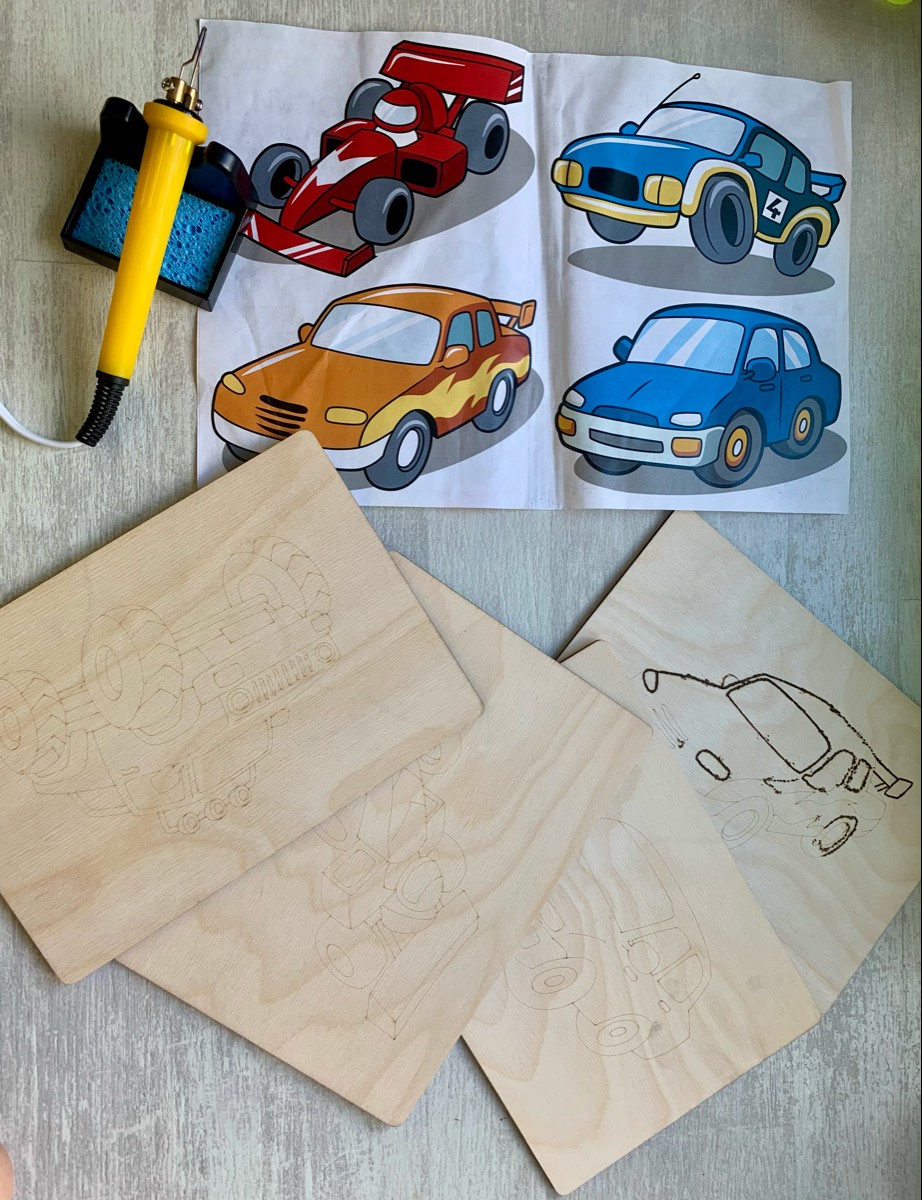 Набор, доски для выжигания и рисования по дереву "Роботы", А5, 5 шт, для творчества, детские
