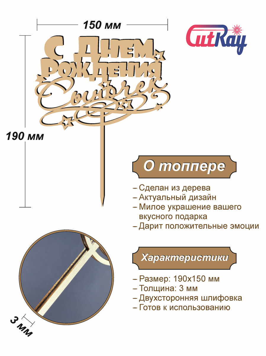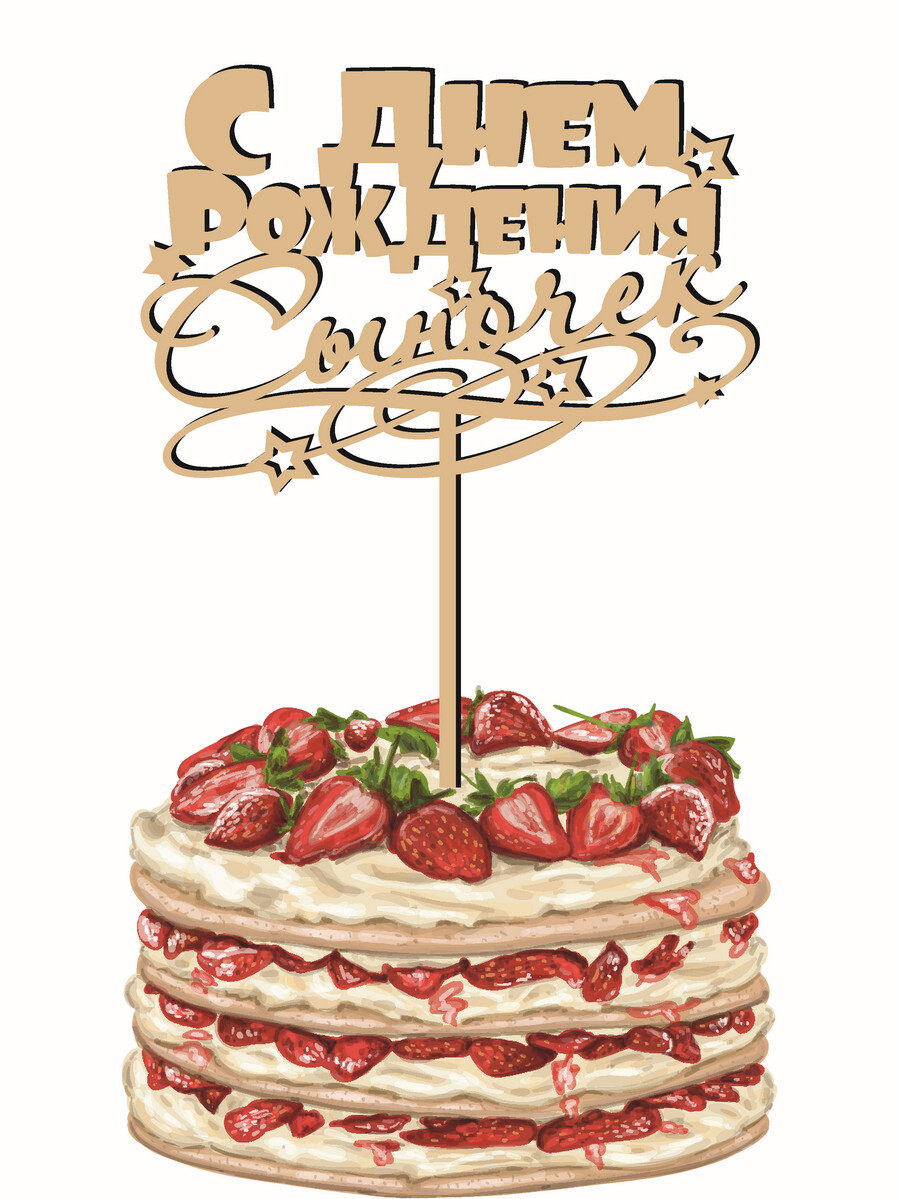 Топпер для торта CutRay "Вензель, звезды, сердце, текст, круги, фигуры", 1 шт, 1 уп.