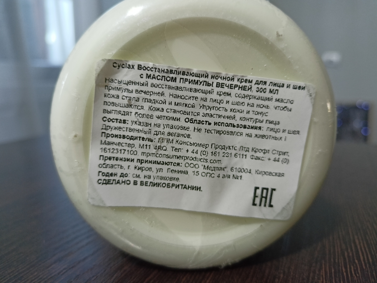 CYCLAX / Восстанавливающий ночной крем для лица и шеи с МАСЛОМ ПРИМУЛЫ ВЕЧЕРНЕЙ, 300 МЛ