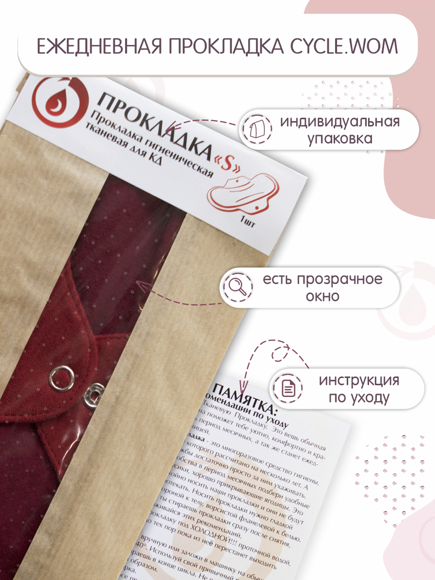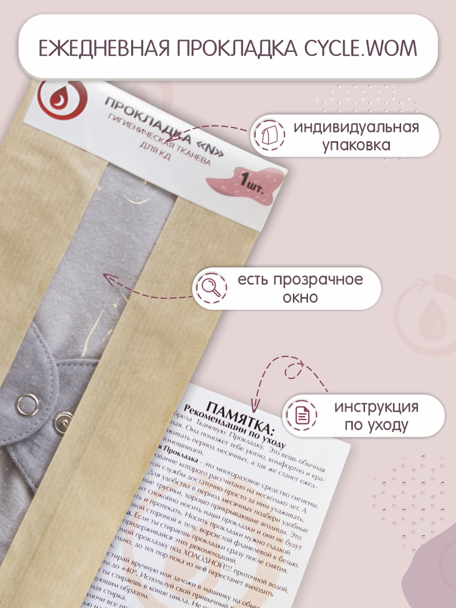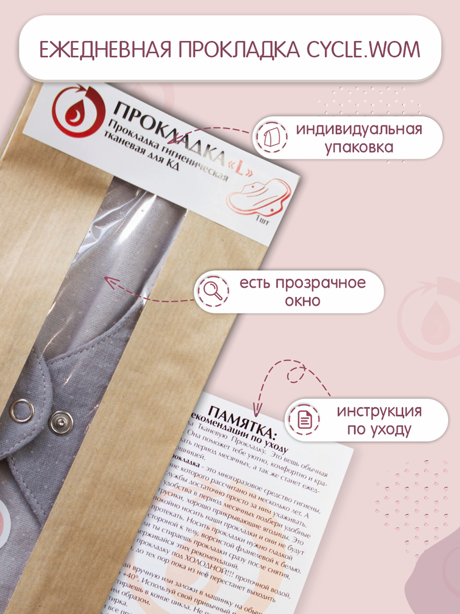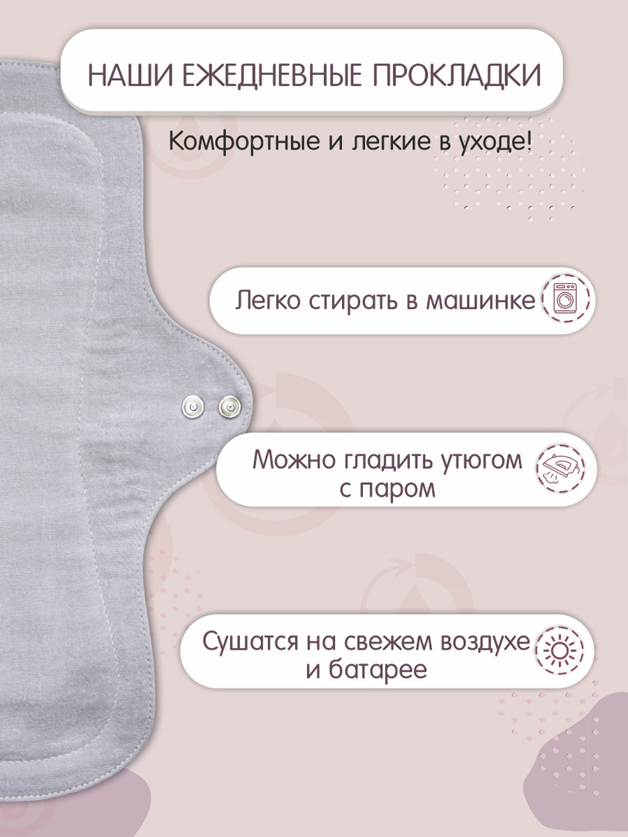 Многоразовые Ежедневные прокладки из хлопка, УВЕЛИЧЕННЫЕ, 1 капля .