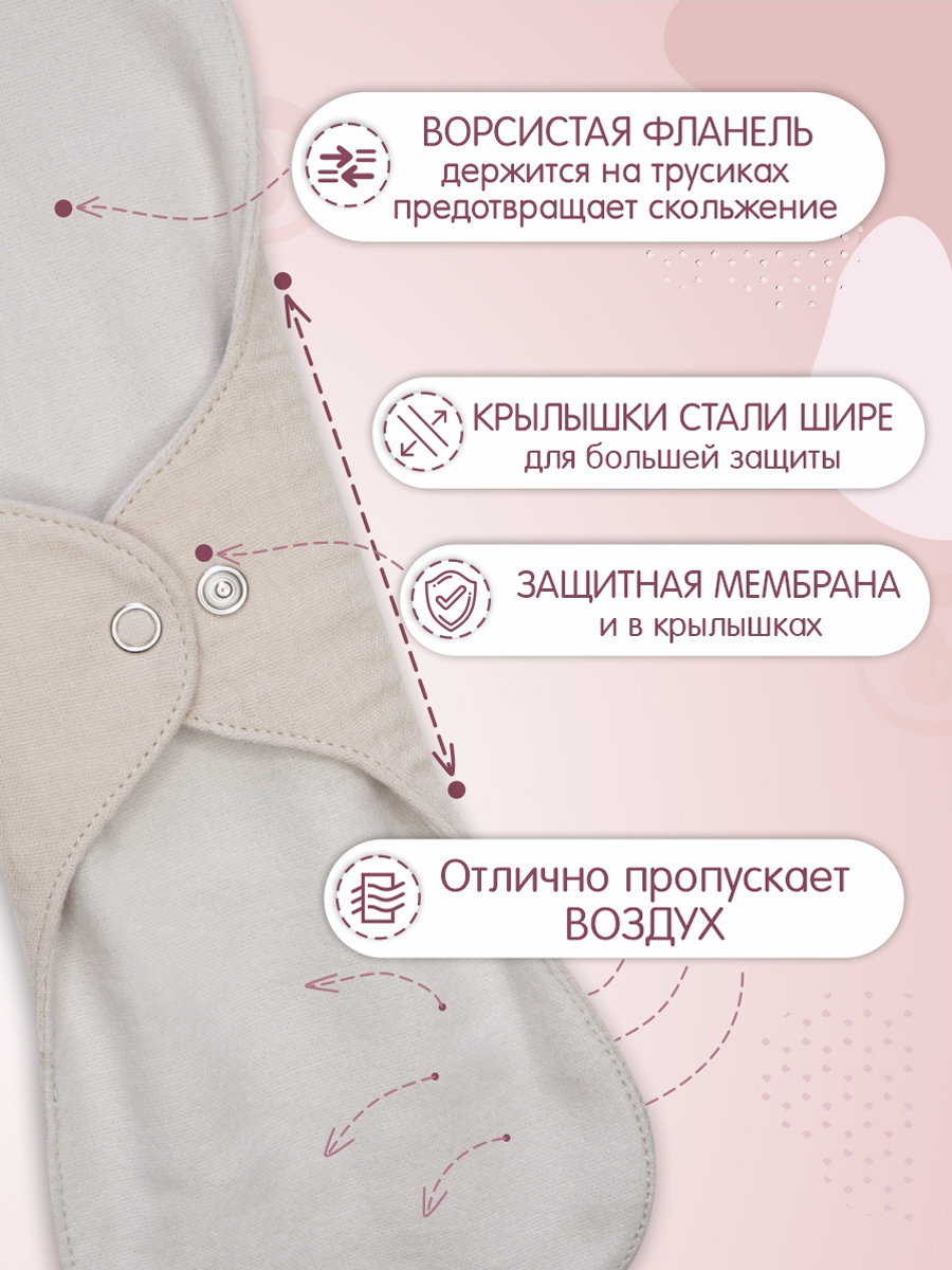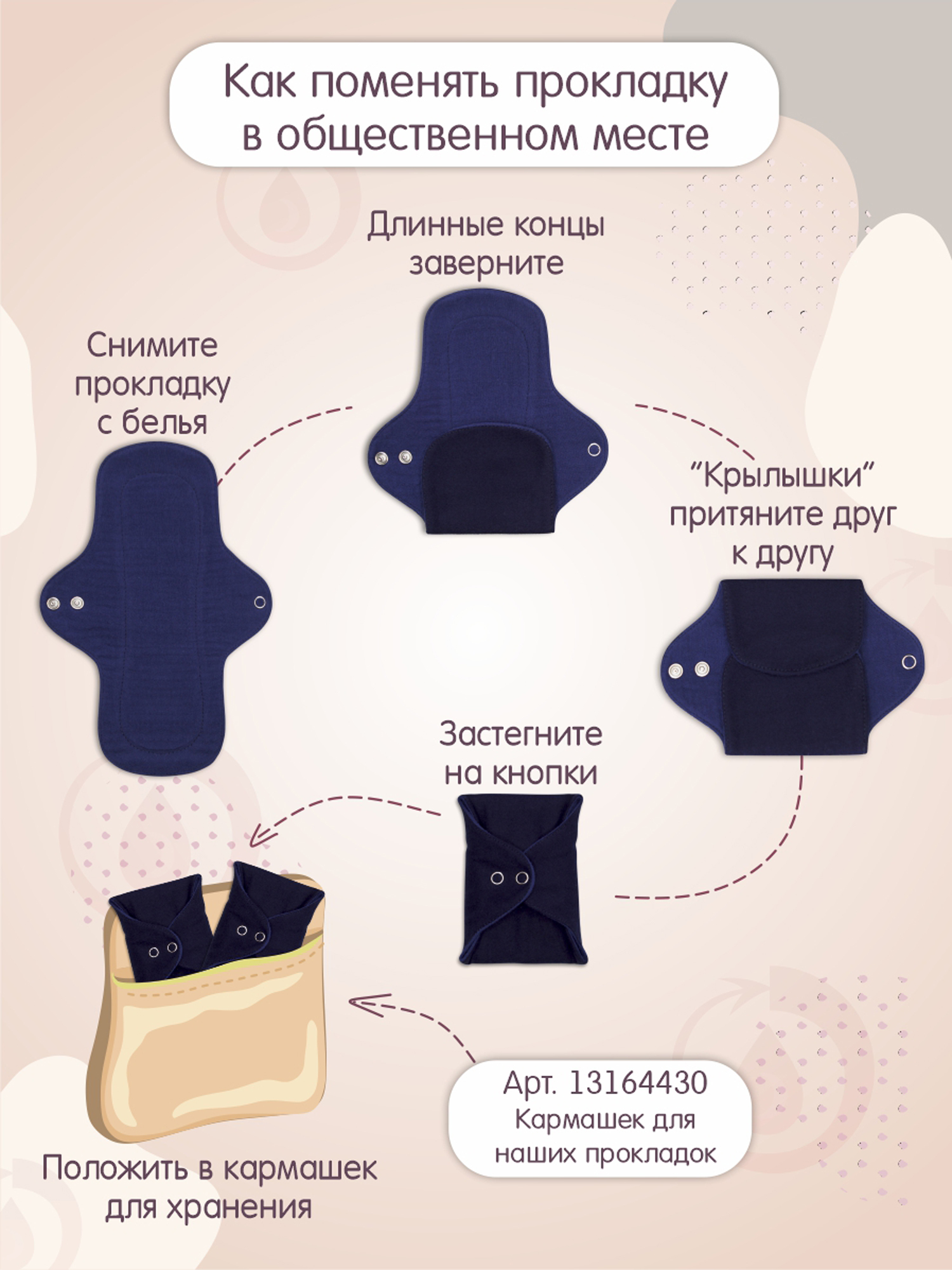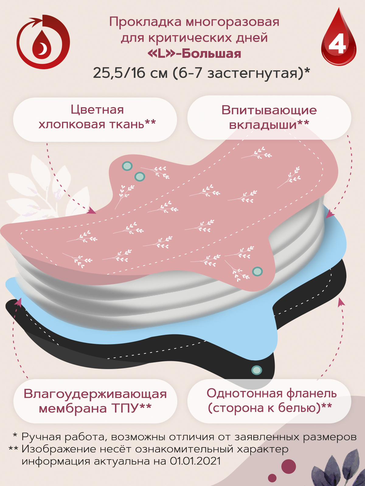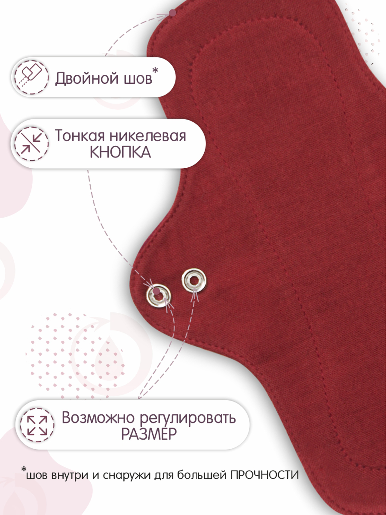 Тканевая прокладка из хлопка (многоразовая) гигиеническая, для КД, большая, 4 капли