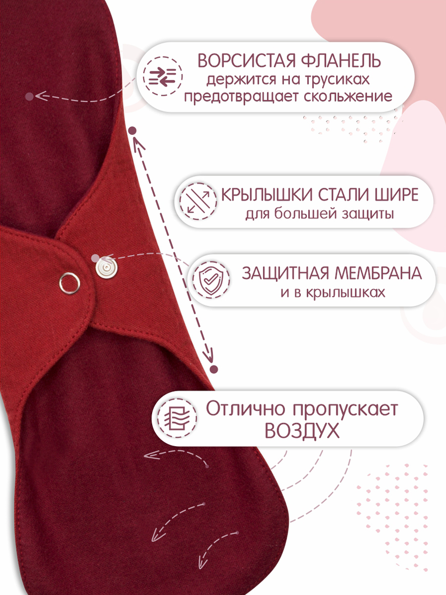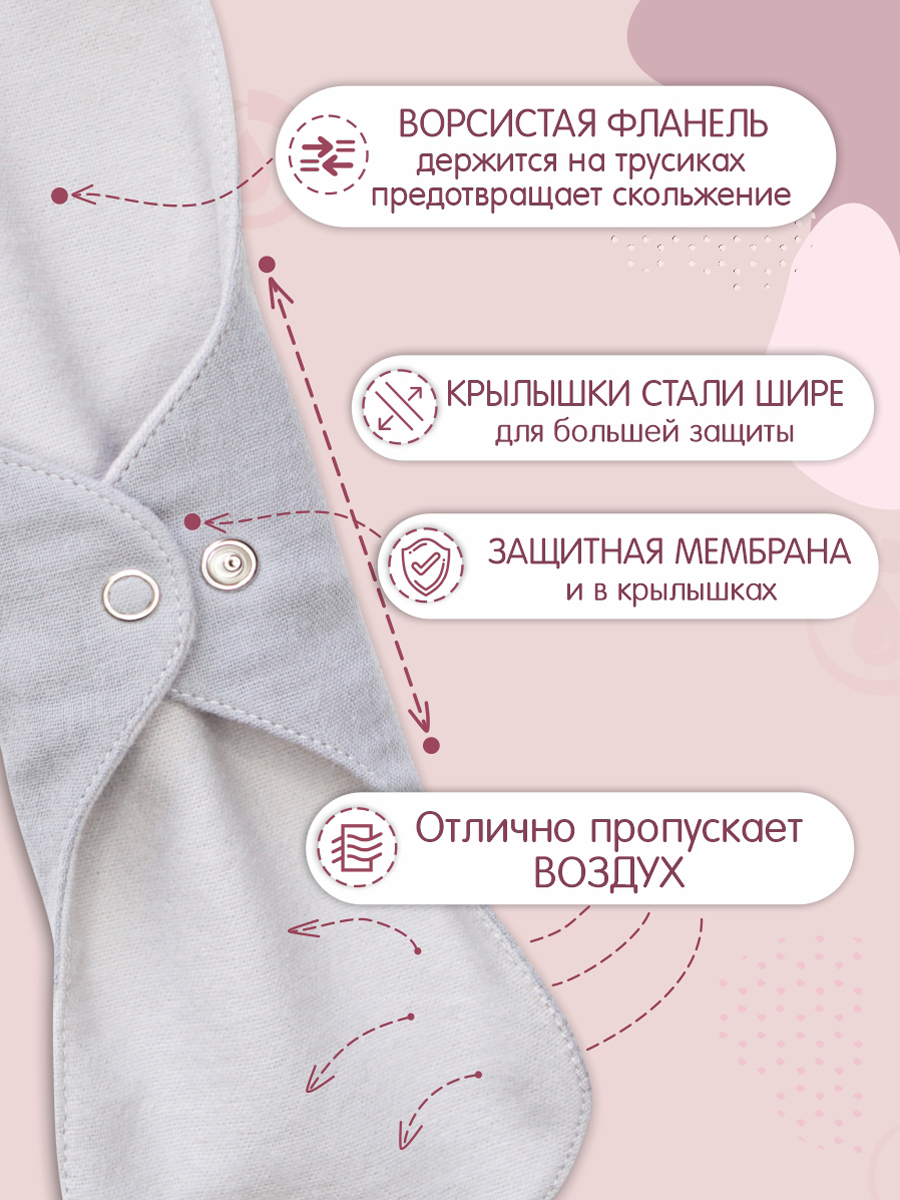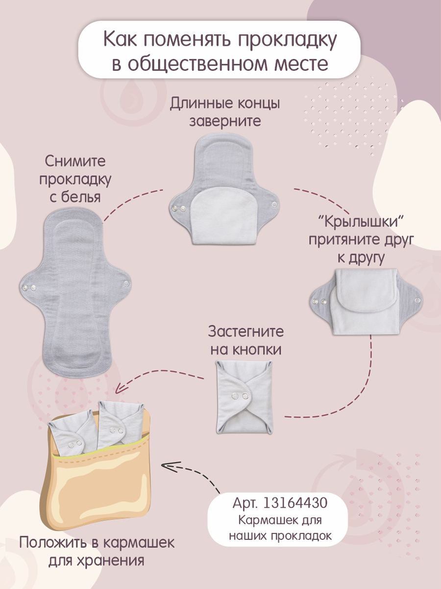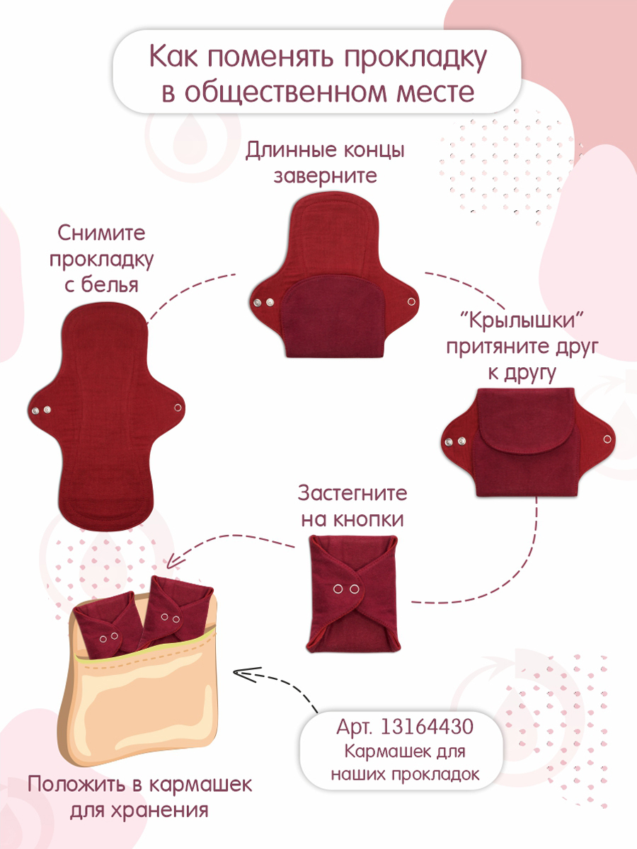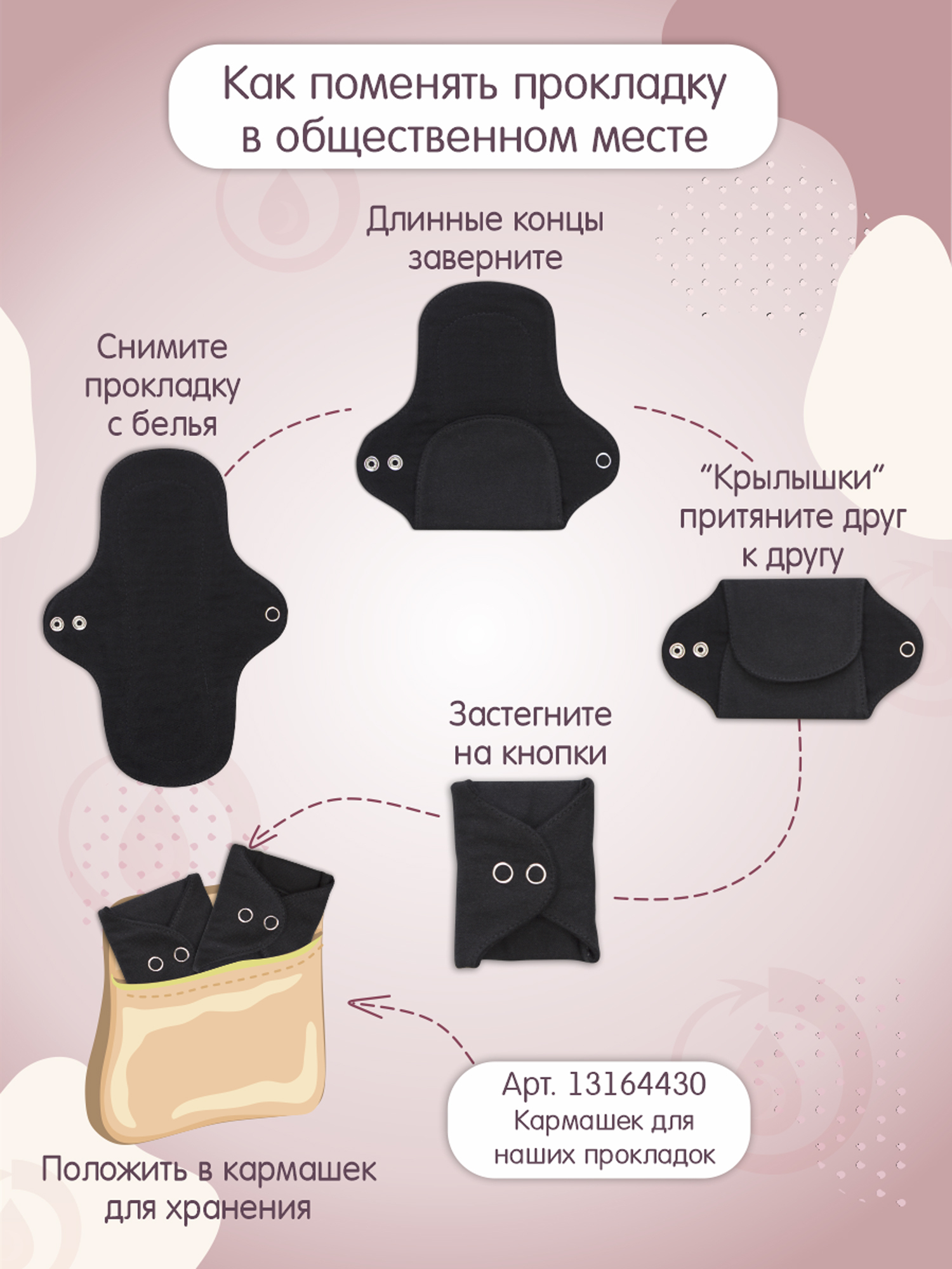 Тканевая прокладка из хлопка (многоразовая) гигиеническая, для КД, большая, 4 капли