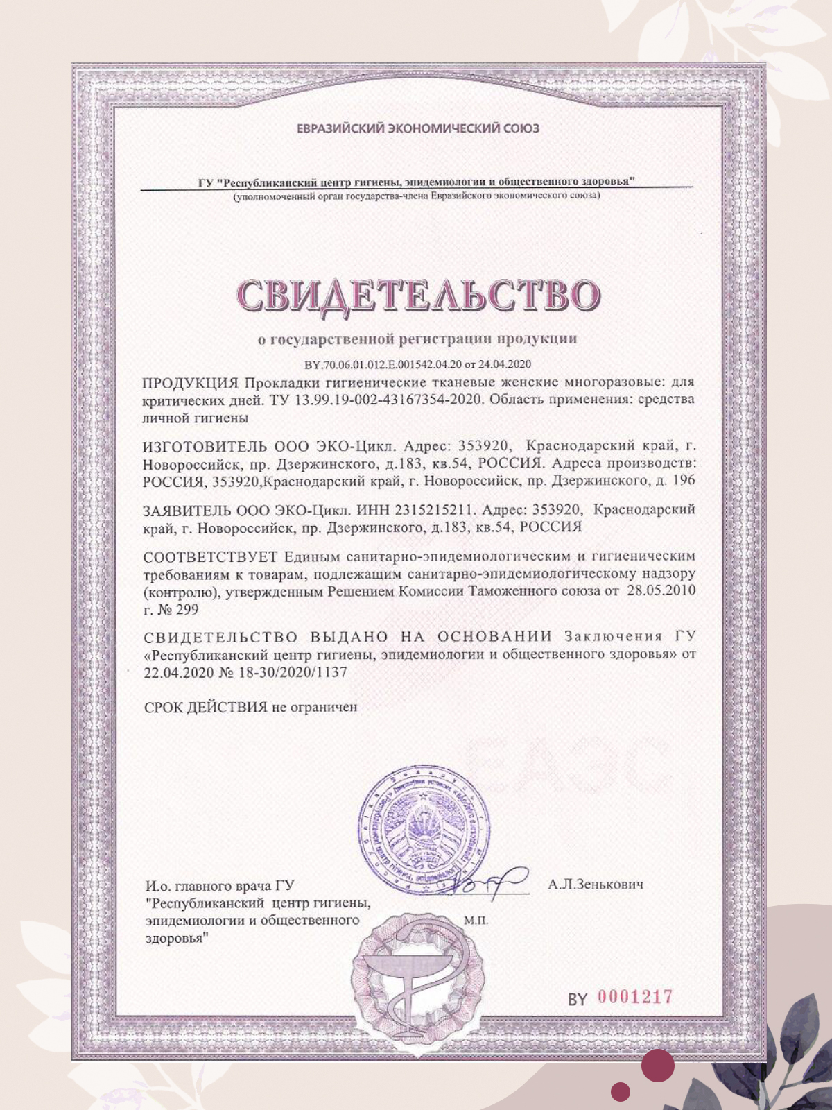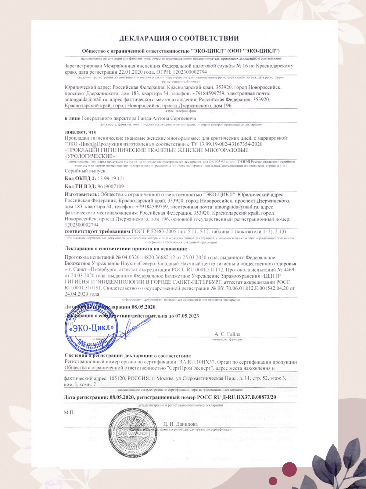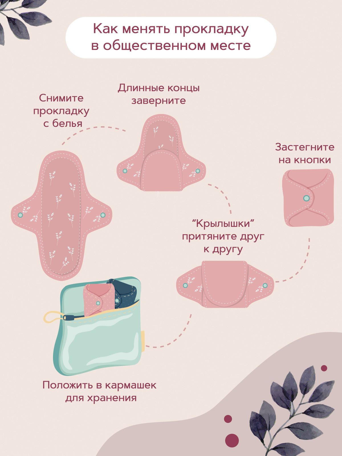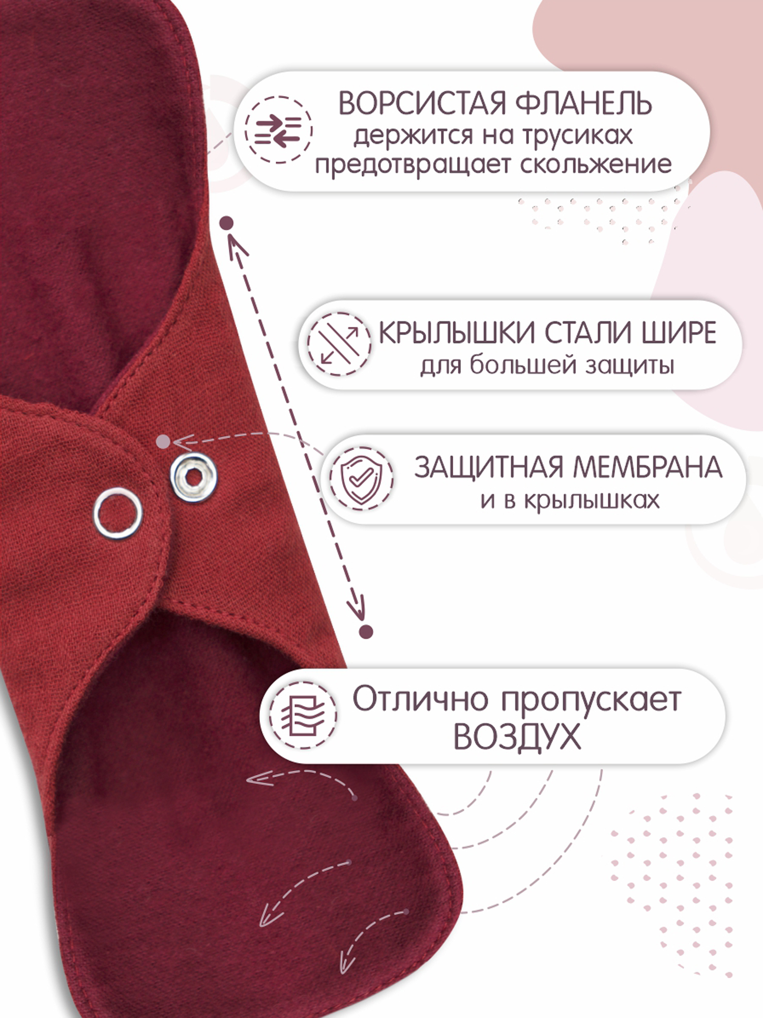 Тканевая прокладка из хлопка (многоразовая) гигиеническая, для КД, большая, 4 капли