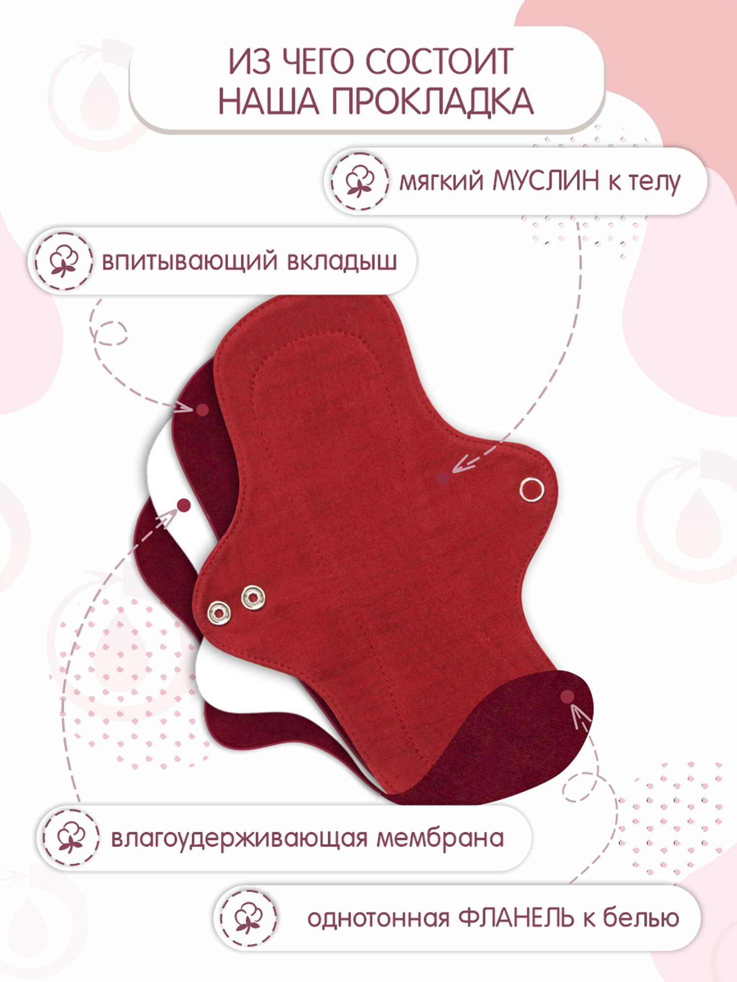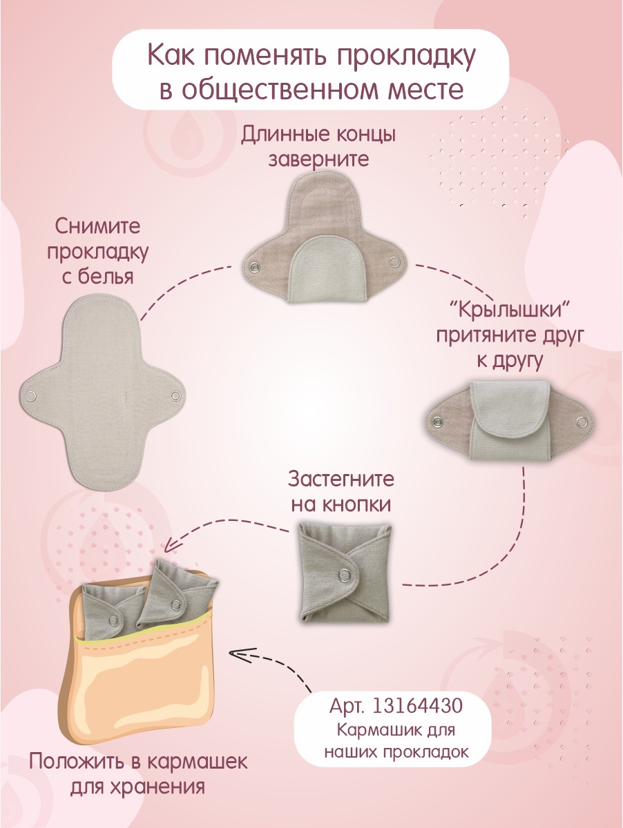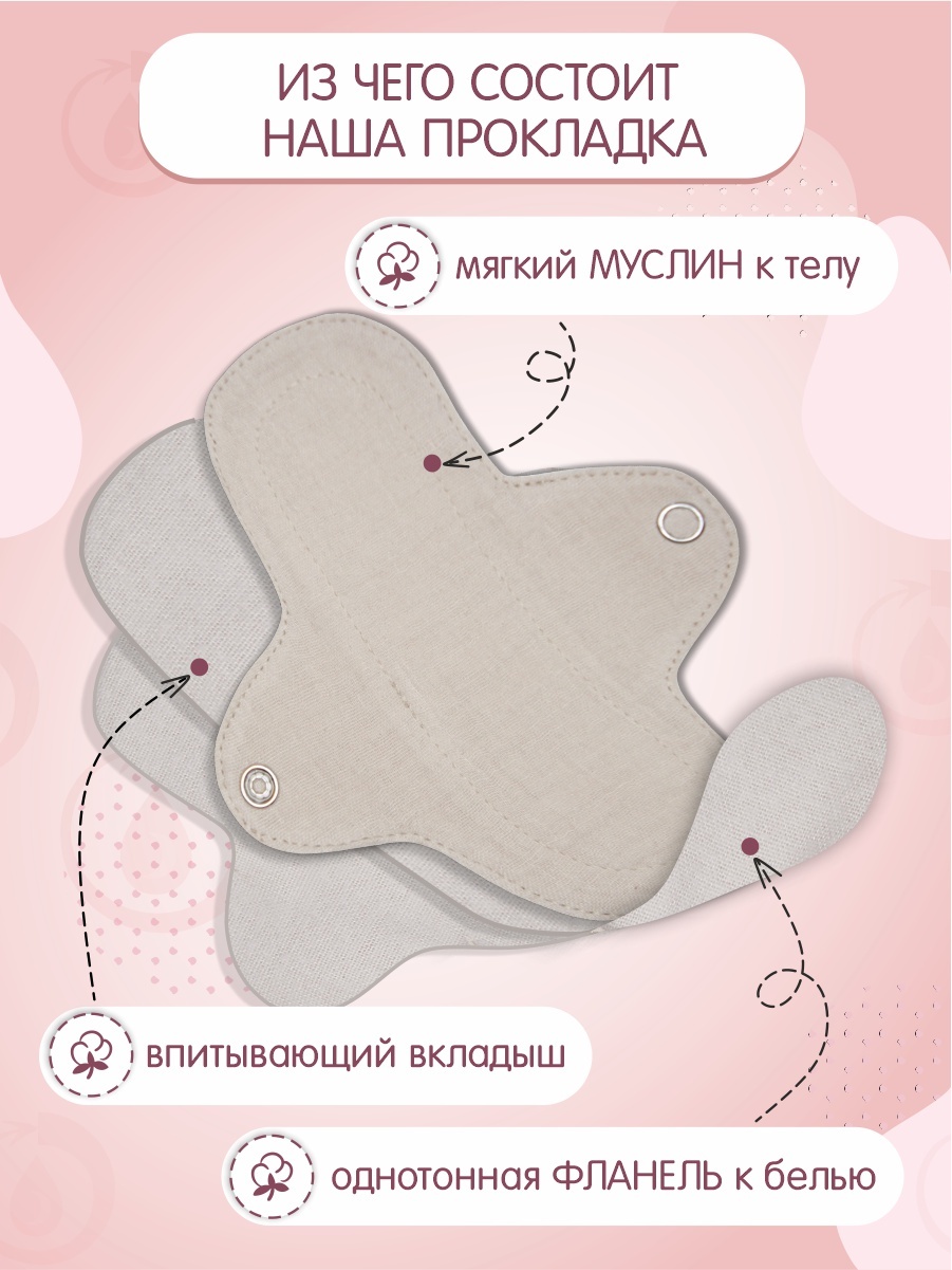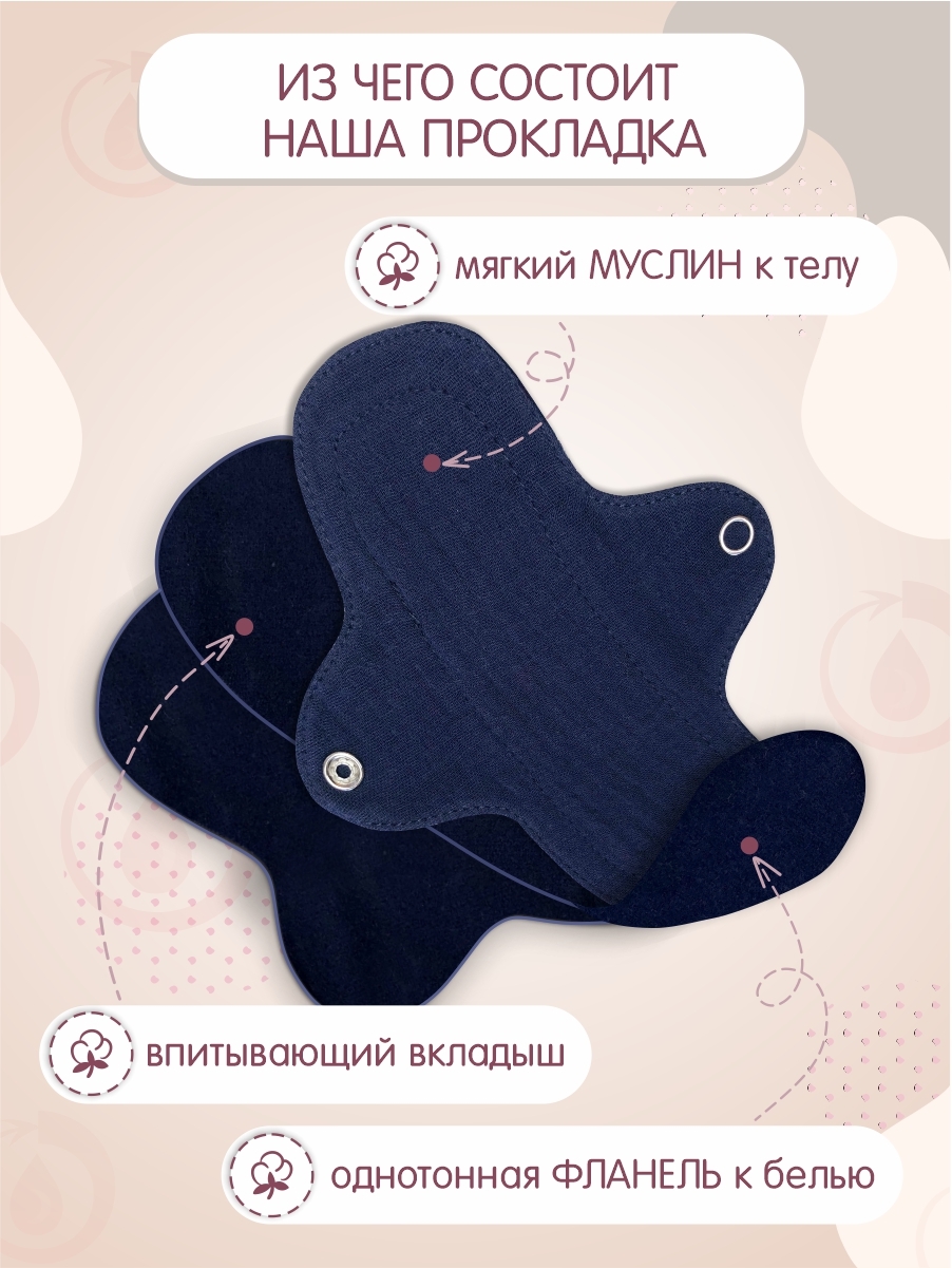 Тканевая прокладки из хлопка, многоразовая, гигиеническая, для КД , средняя, 3 капли