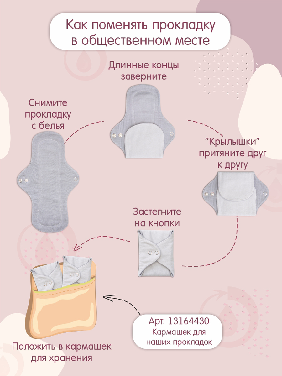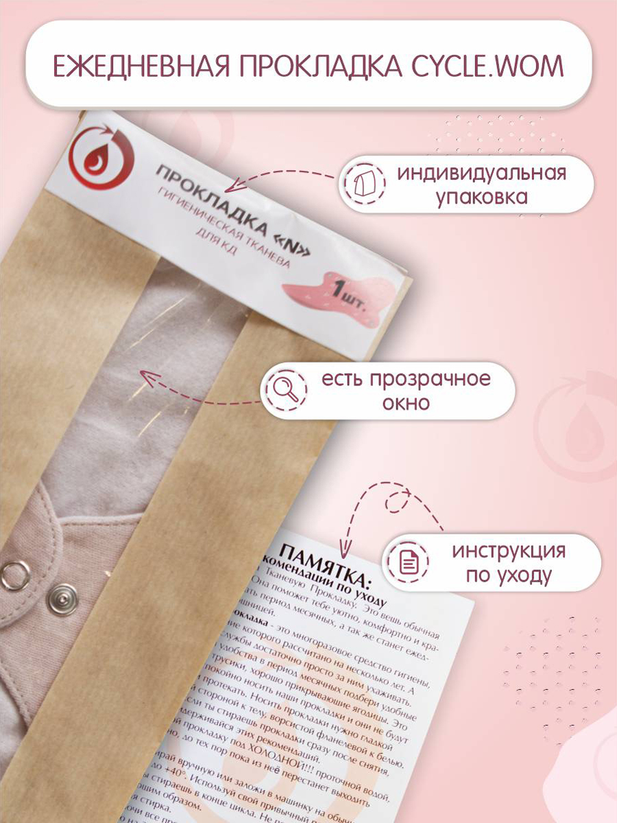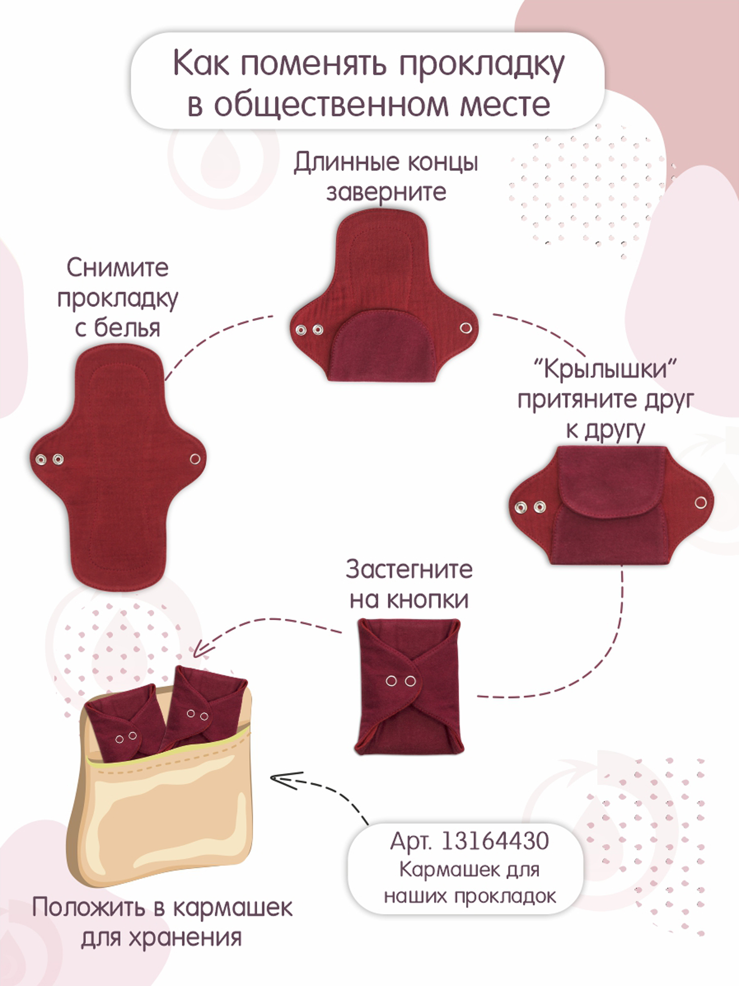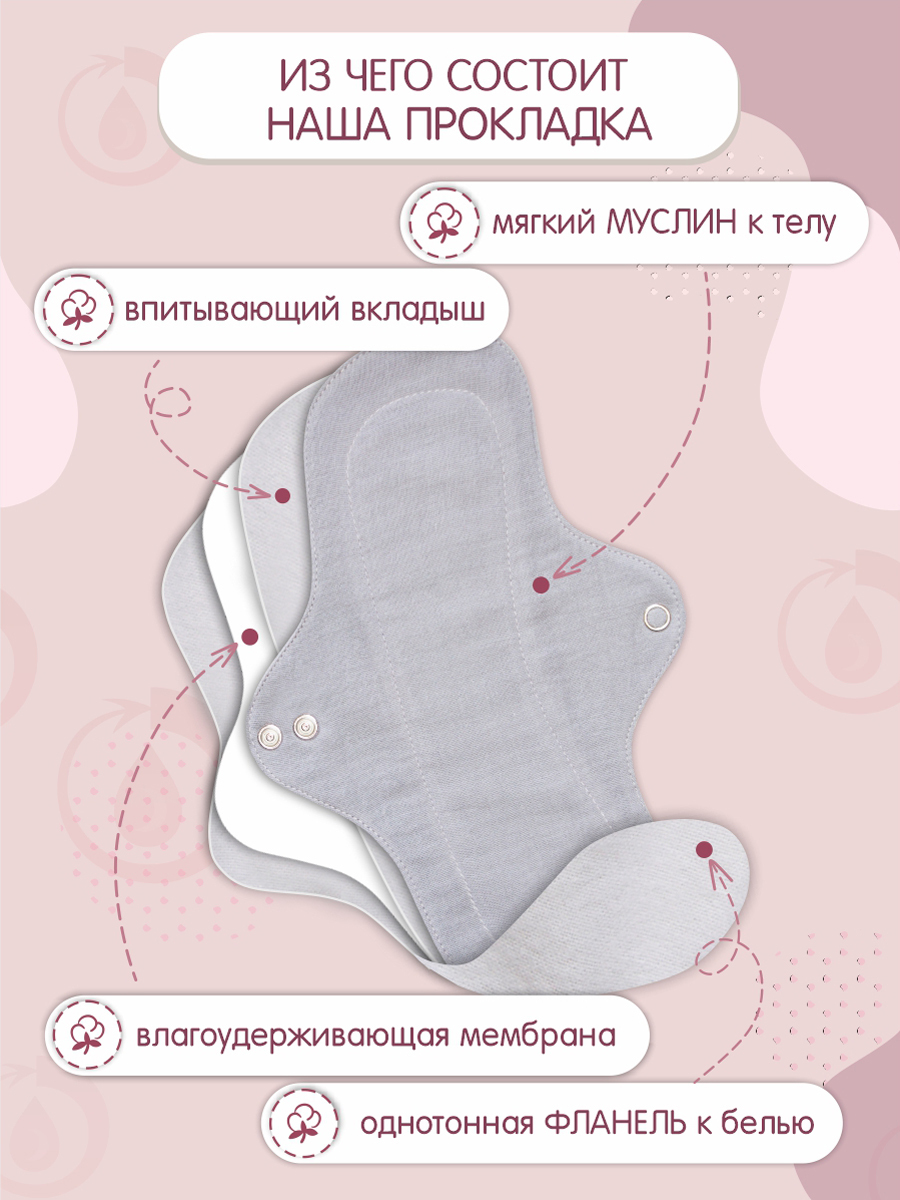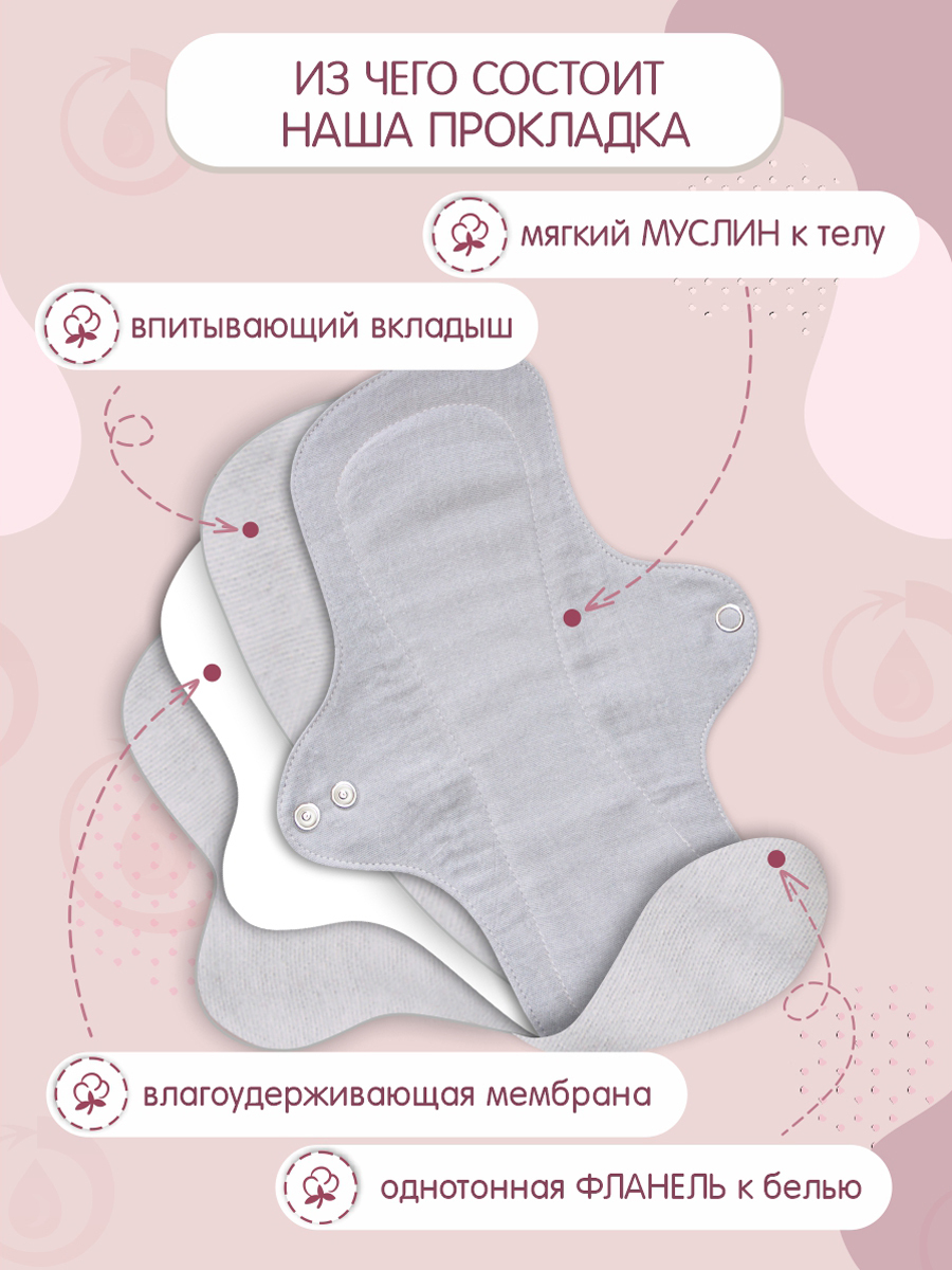 Тканевая прокладки из хлопка, многоразовая, гигиеническая, для КД , средняя, 3 капли