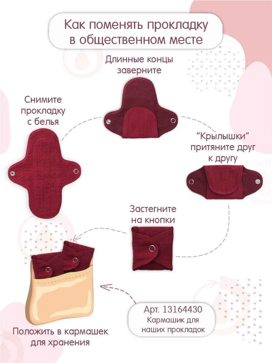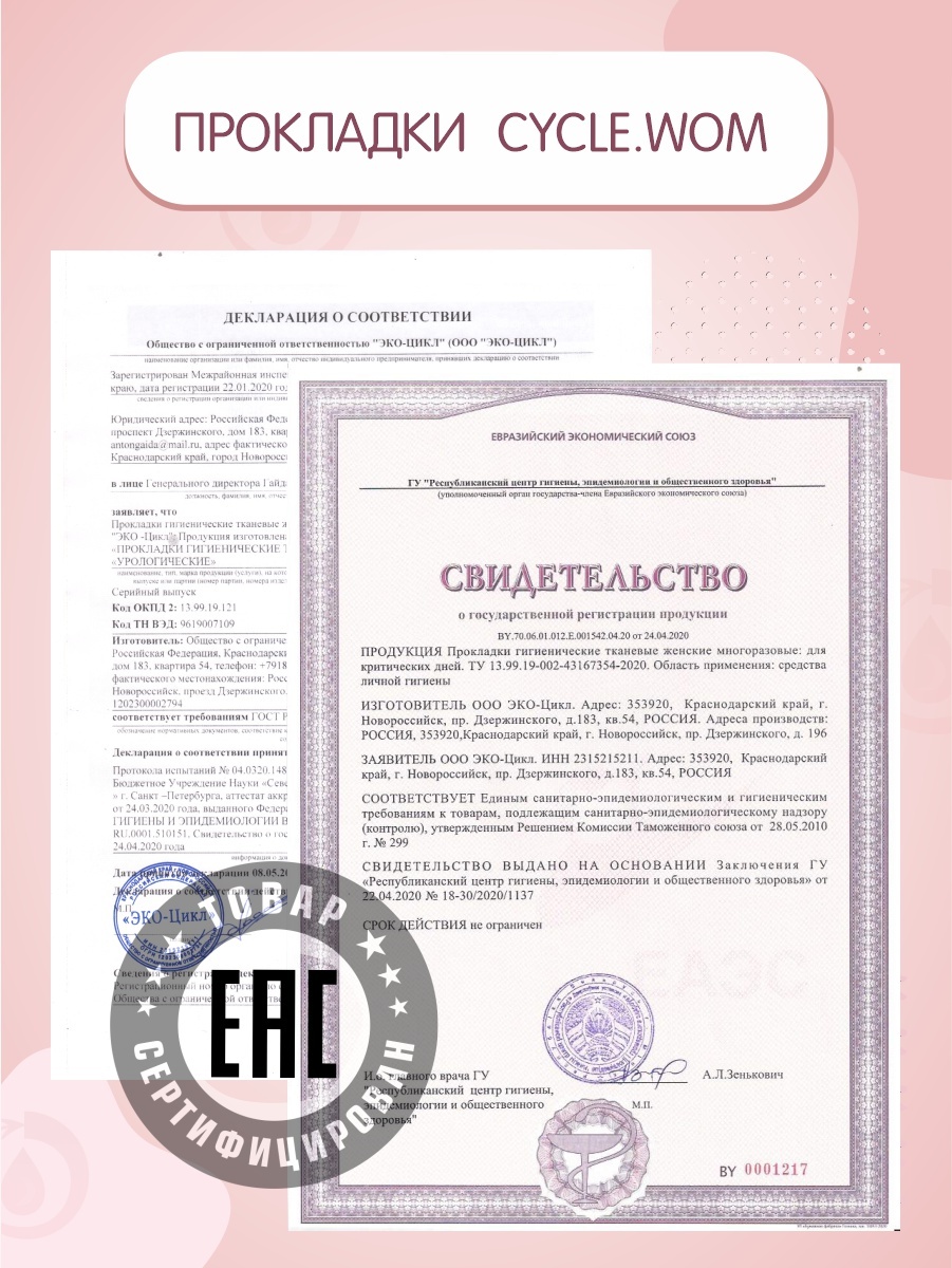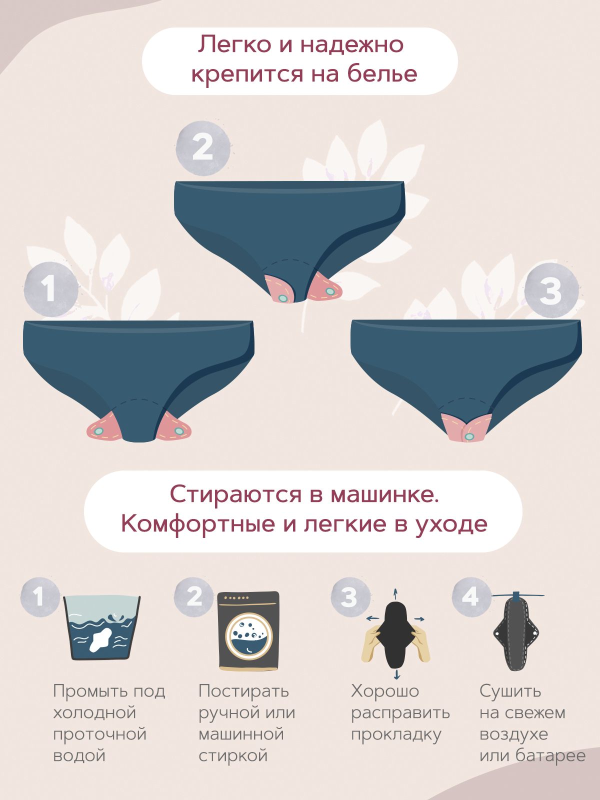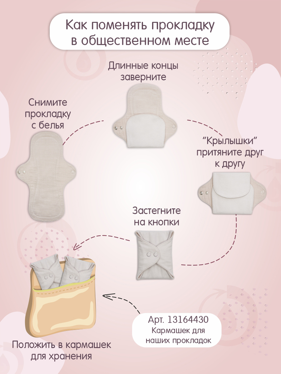 Тканевая прокладки из хлопка, многоразовая, гигиеническая, для КД , средняя, 3 капли