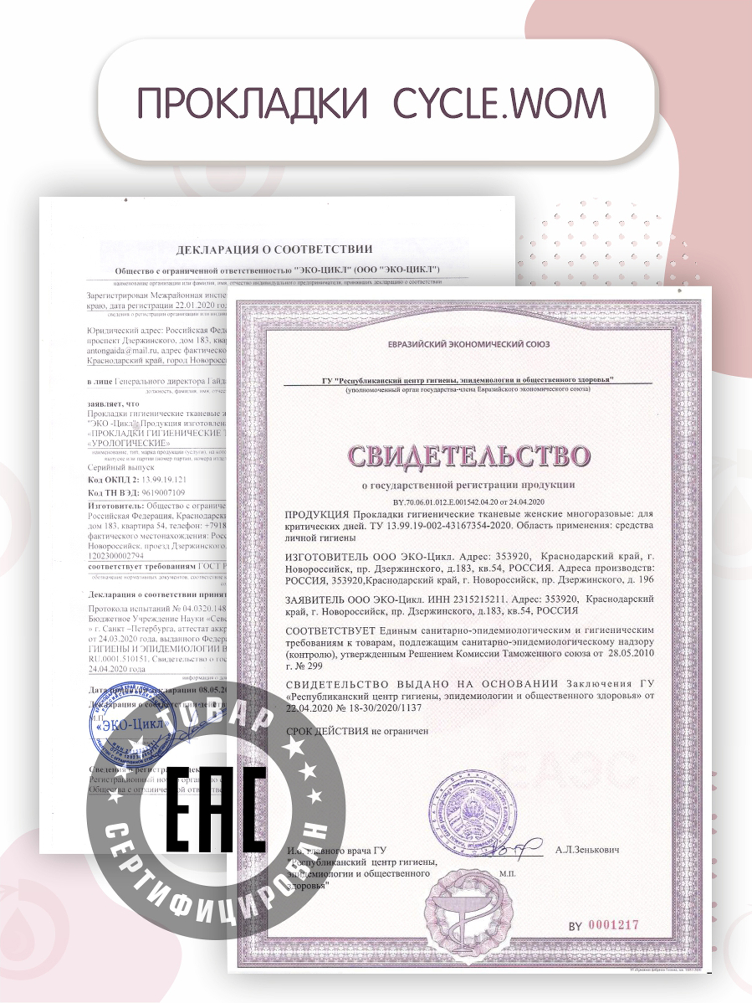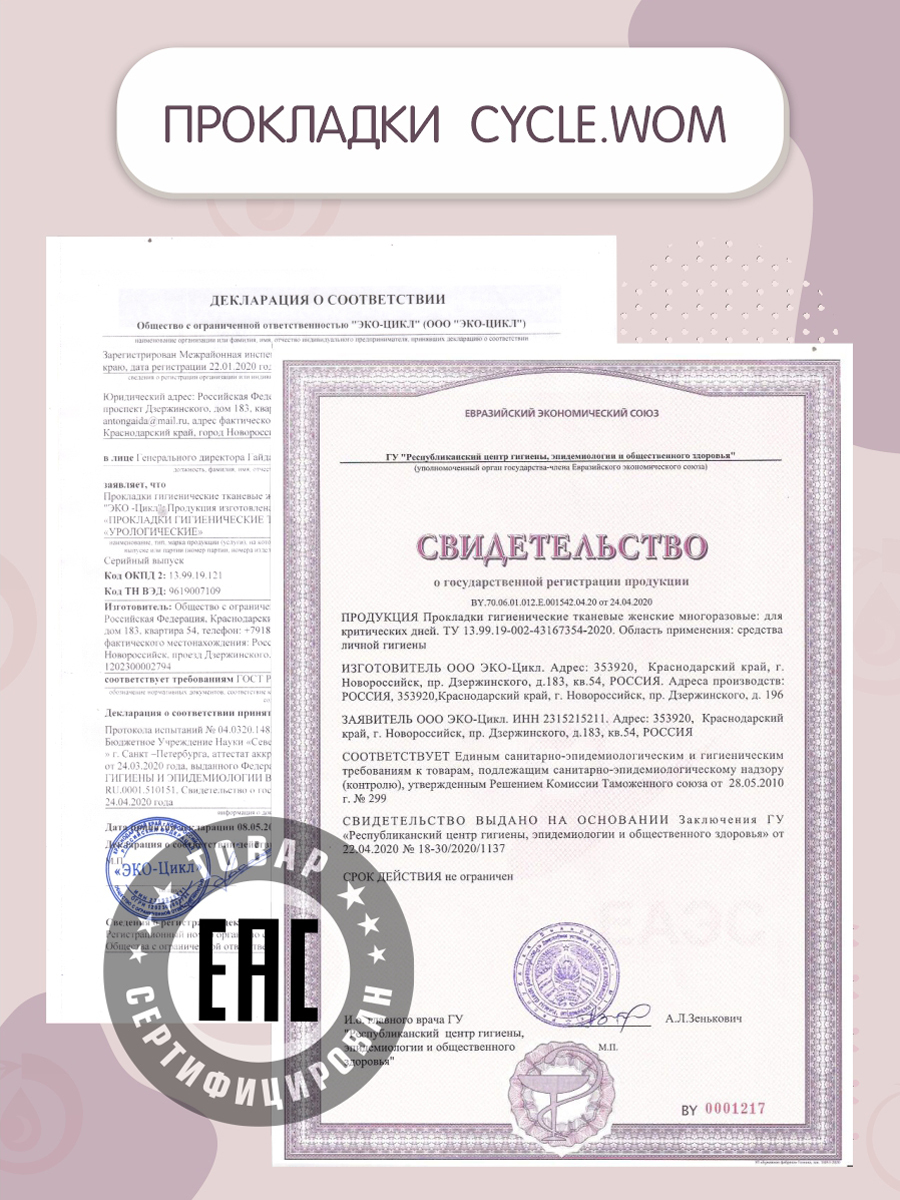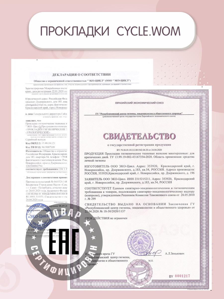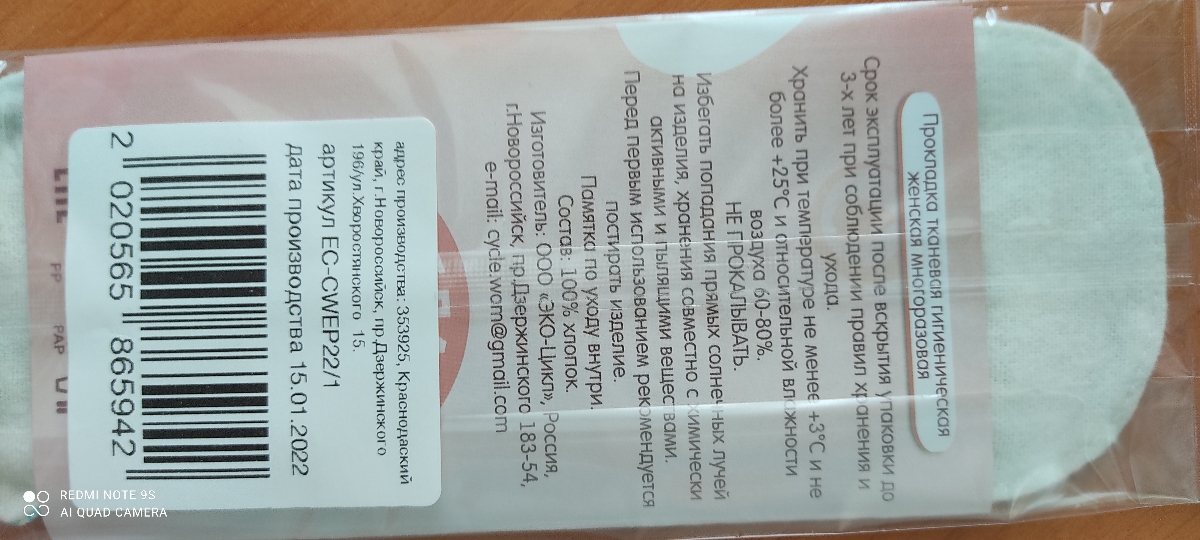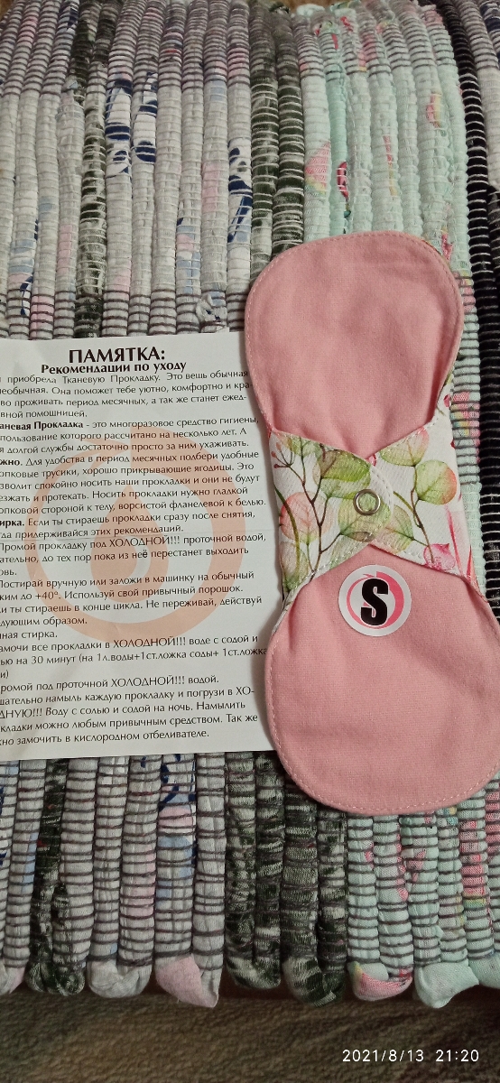 Тканевая прокладки из хлопка, многоразовая, гигиеническая, для КД , средняя, 3 капли