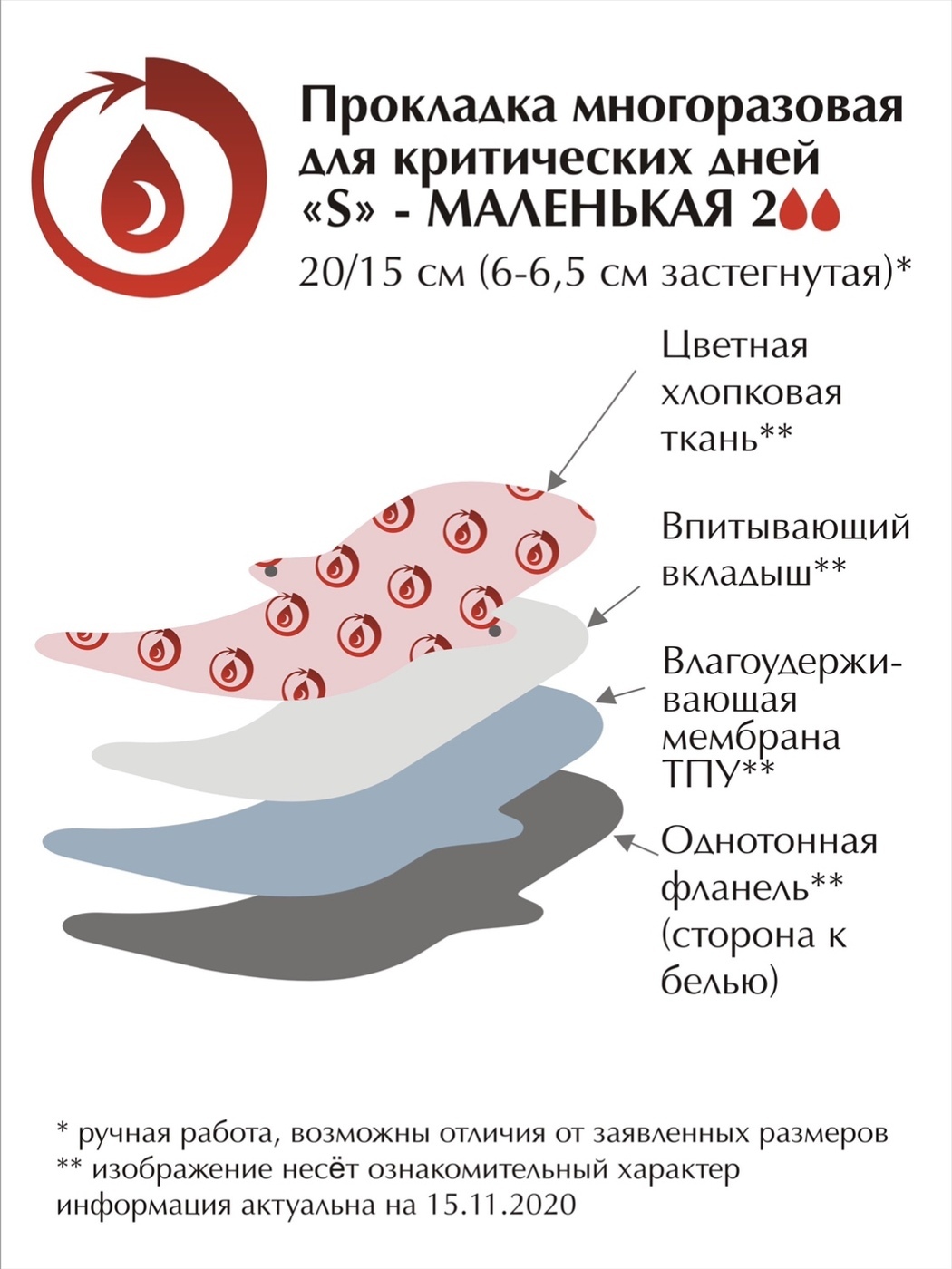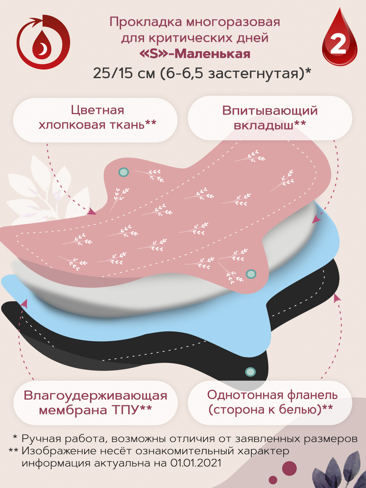 Тканевая прокладка из хлопка, многоразовая, гигиеническая, для КД, маленькая, 2 капли