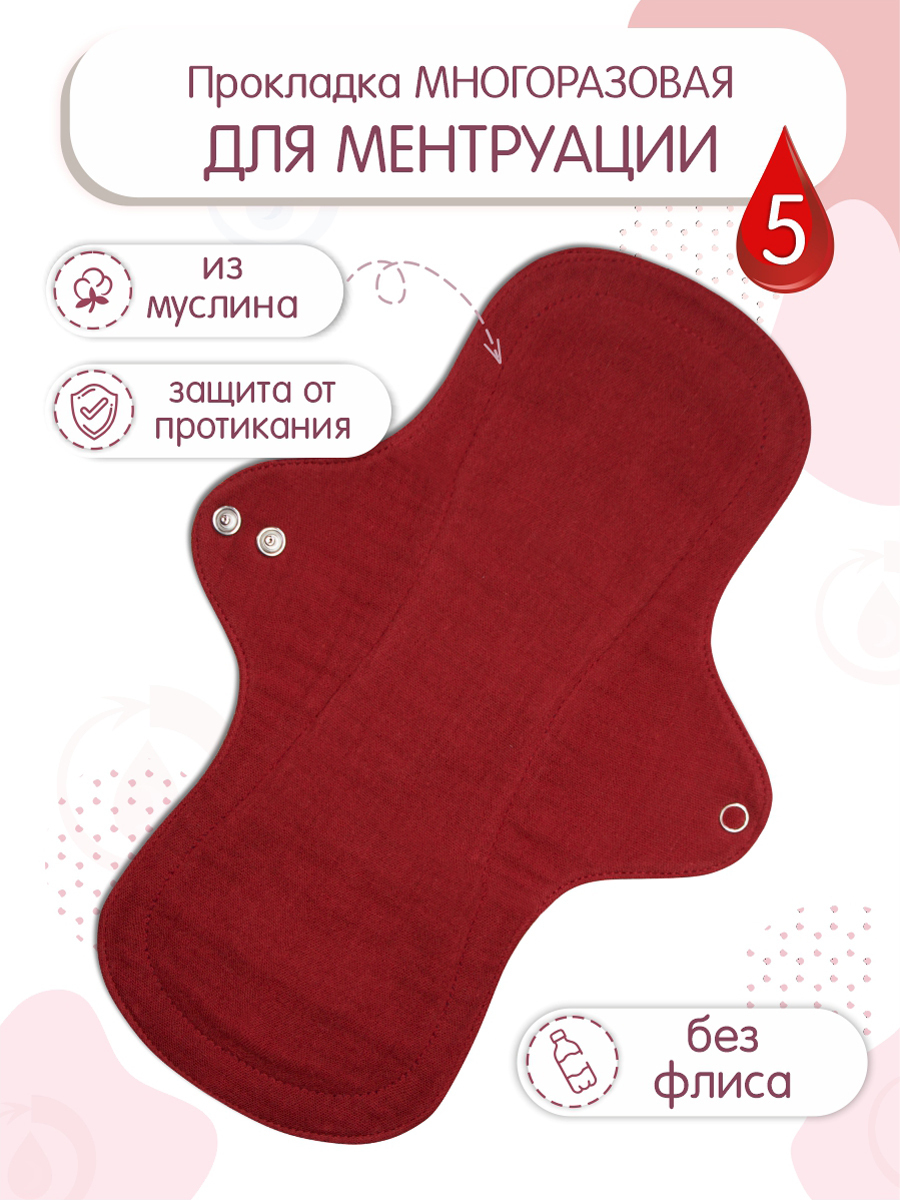 Многоразовые гигиенические прокладки для критических дней из хлопка, муслиновые 5 капли