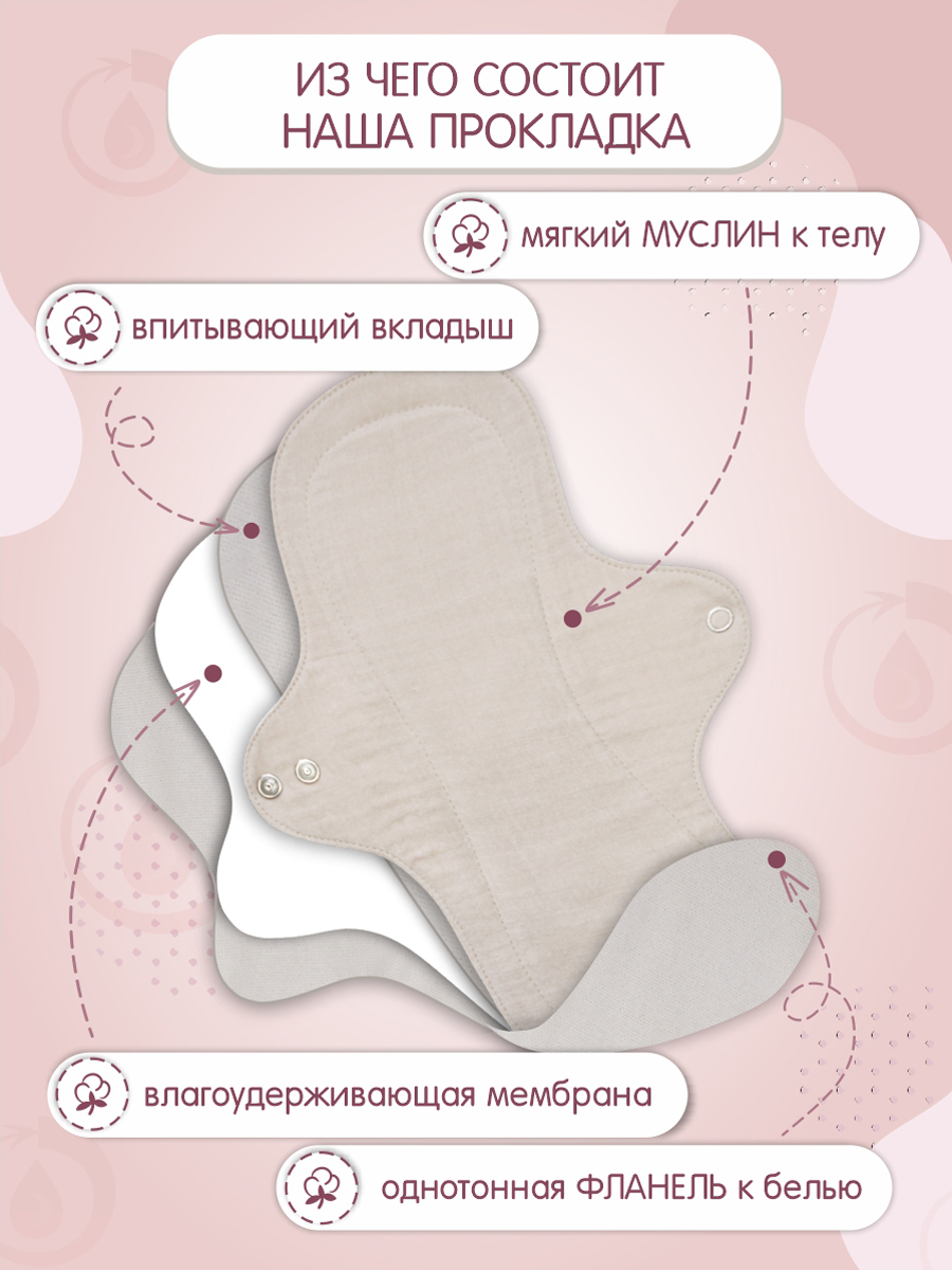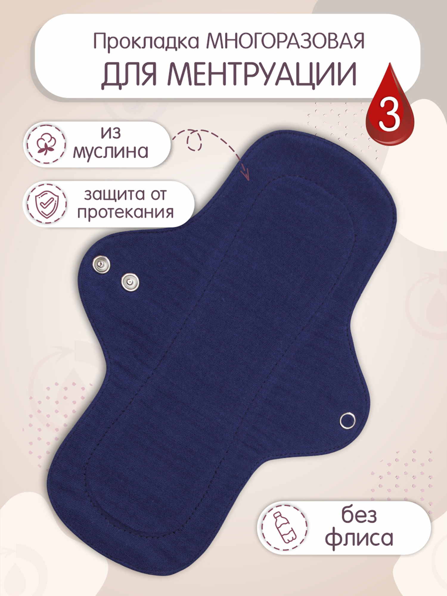 Многоразовые прокладки для критических дней из хлопка, муслиновые, 3 капли