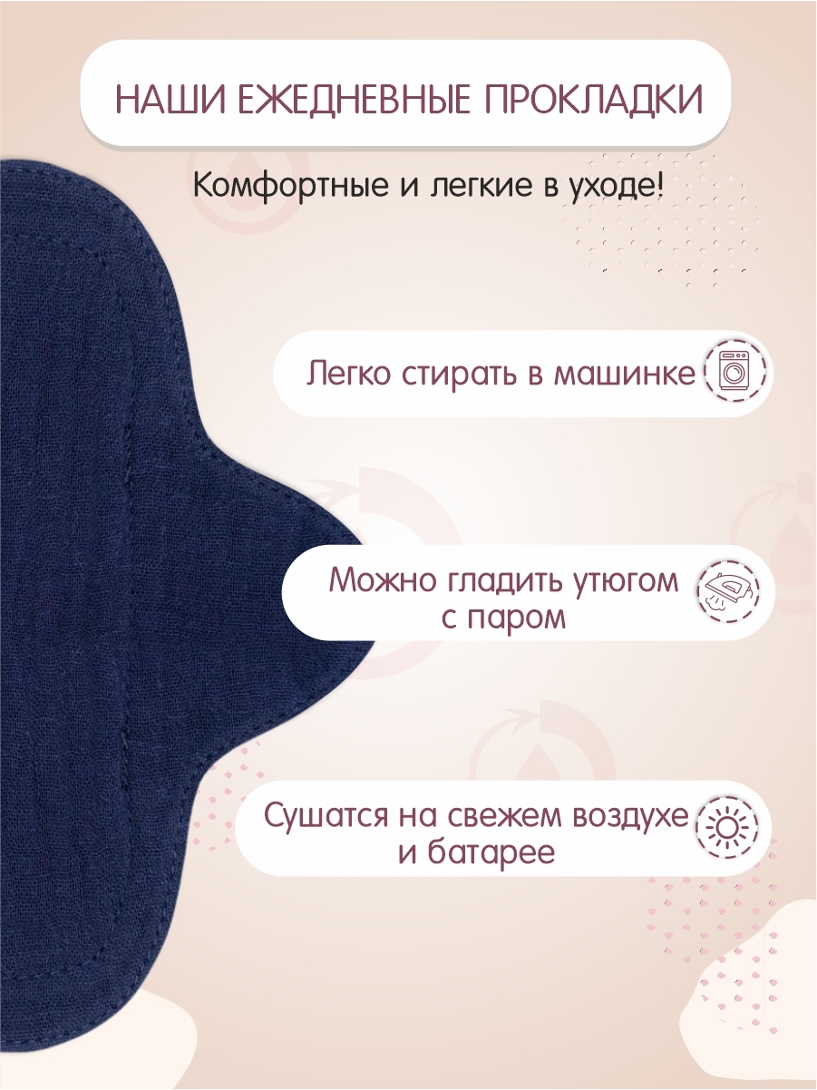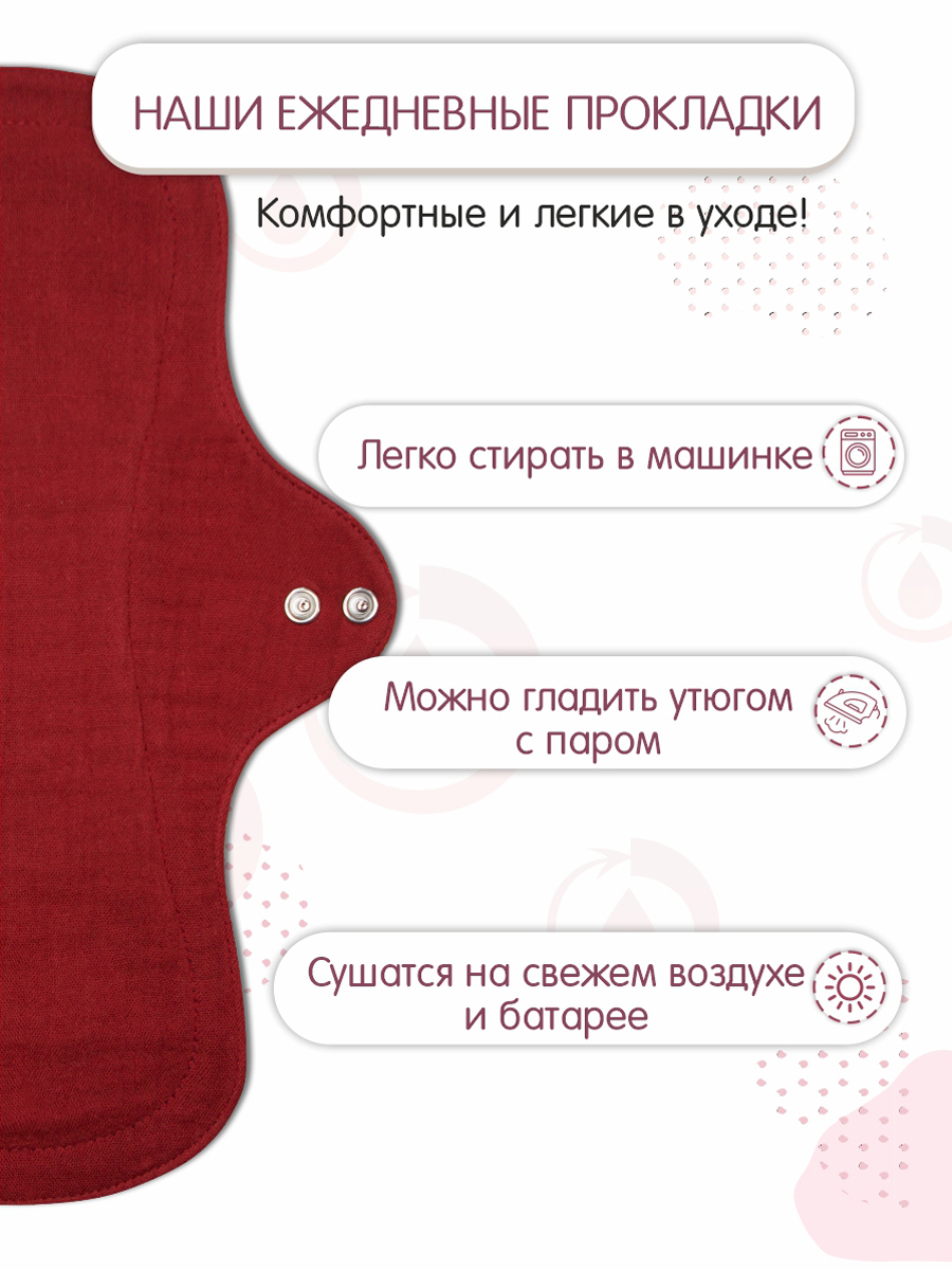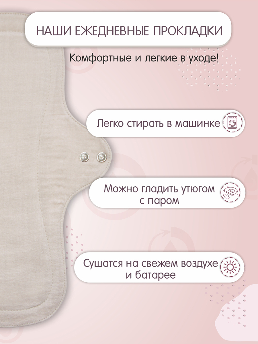 Многоразовые Ежедневные прокладки из хлопка, УВЕЛИЧЕННЫЕ, муслиновые, 1 капля .