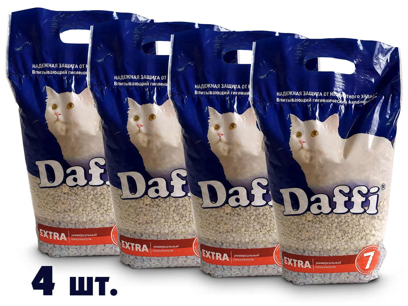 Гигиенический наполнитель Daffi EXTRA (средняя гранула), 7 литров х 4 шт