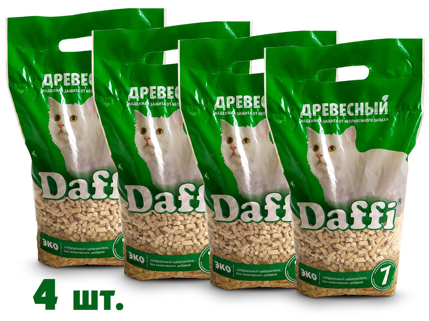 Гигиенический наполнитель Daffi EKO древесный, 7 литров х 4 шт
