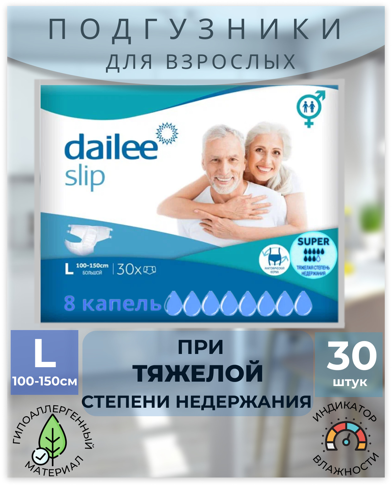 Подгузники для взрослых Dailee Super, размер L (100-150 СМ), 30 шт.