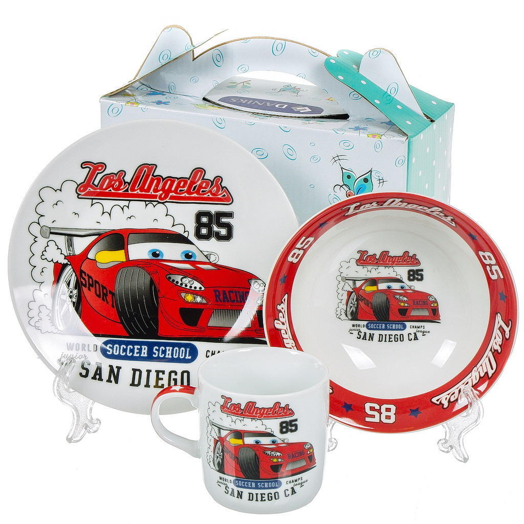 Набор детской посуды из фарфора Болид, 3 предмета (кружка 230 мл, тарелка 175 мм, салатник 150 мм)