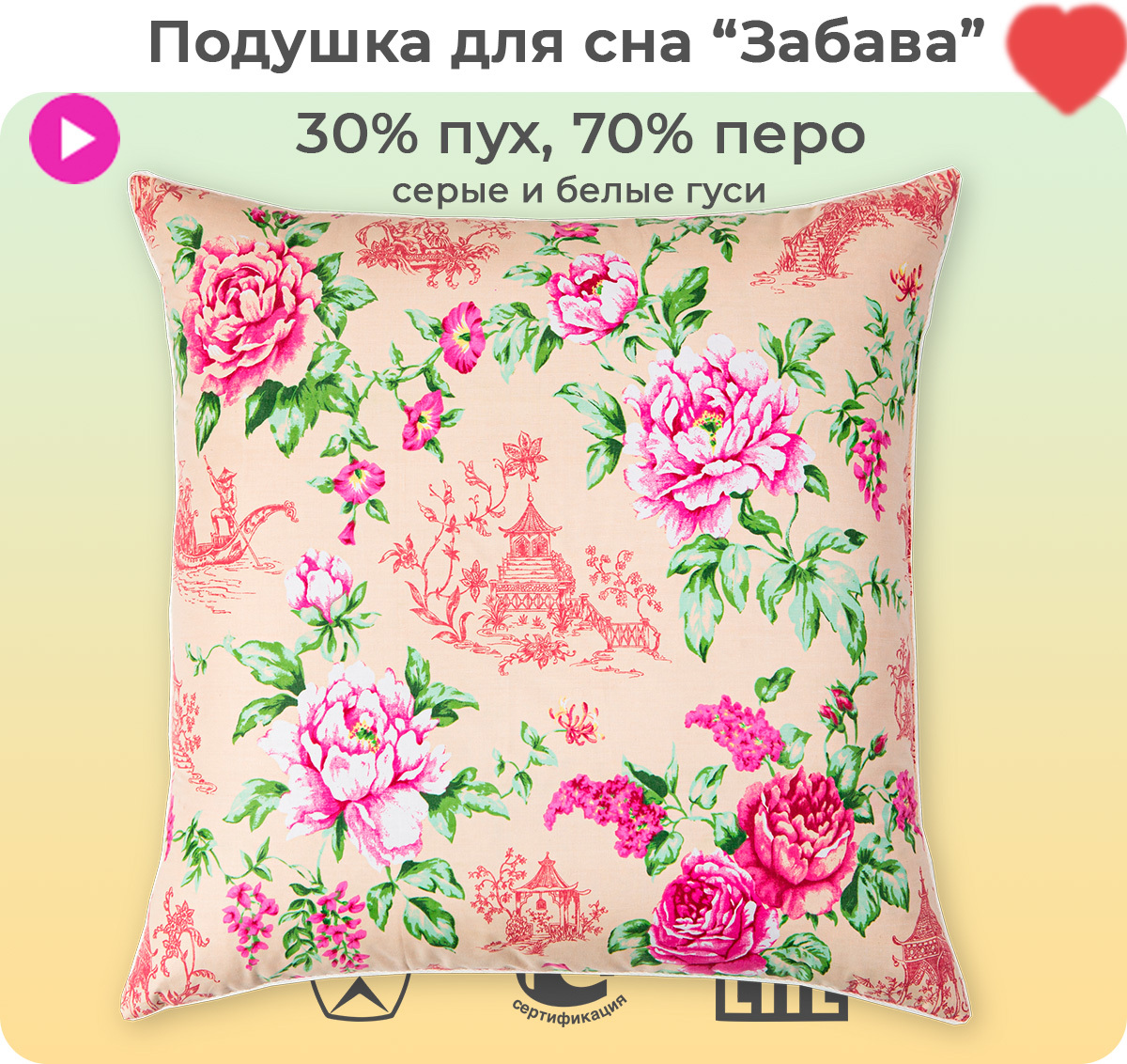 Подушка Дарёна Забава Пух-перо, Перо, 68x68 см