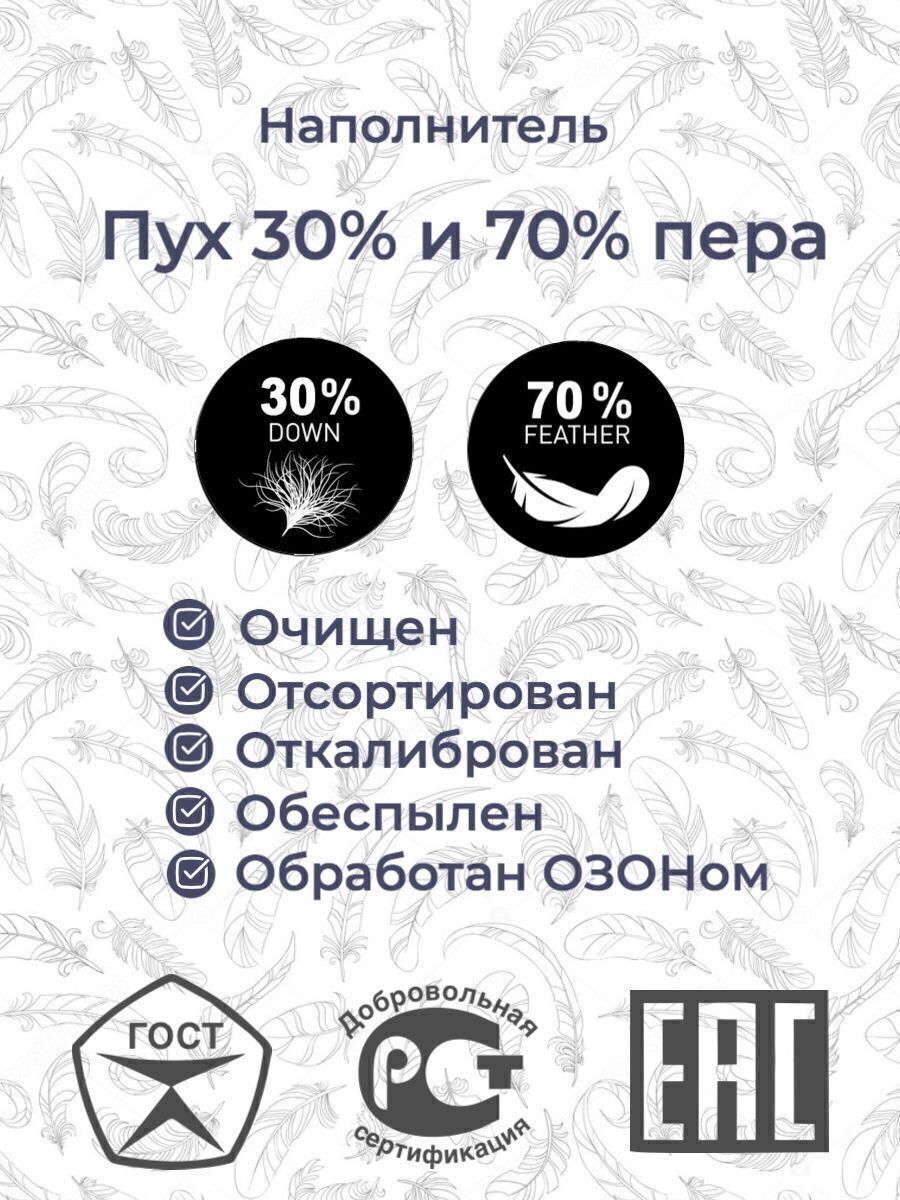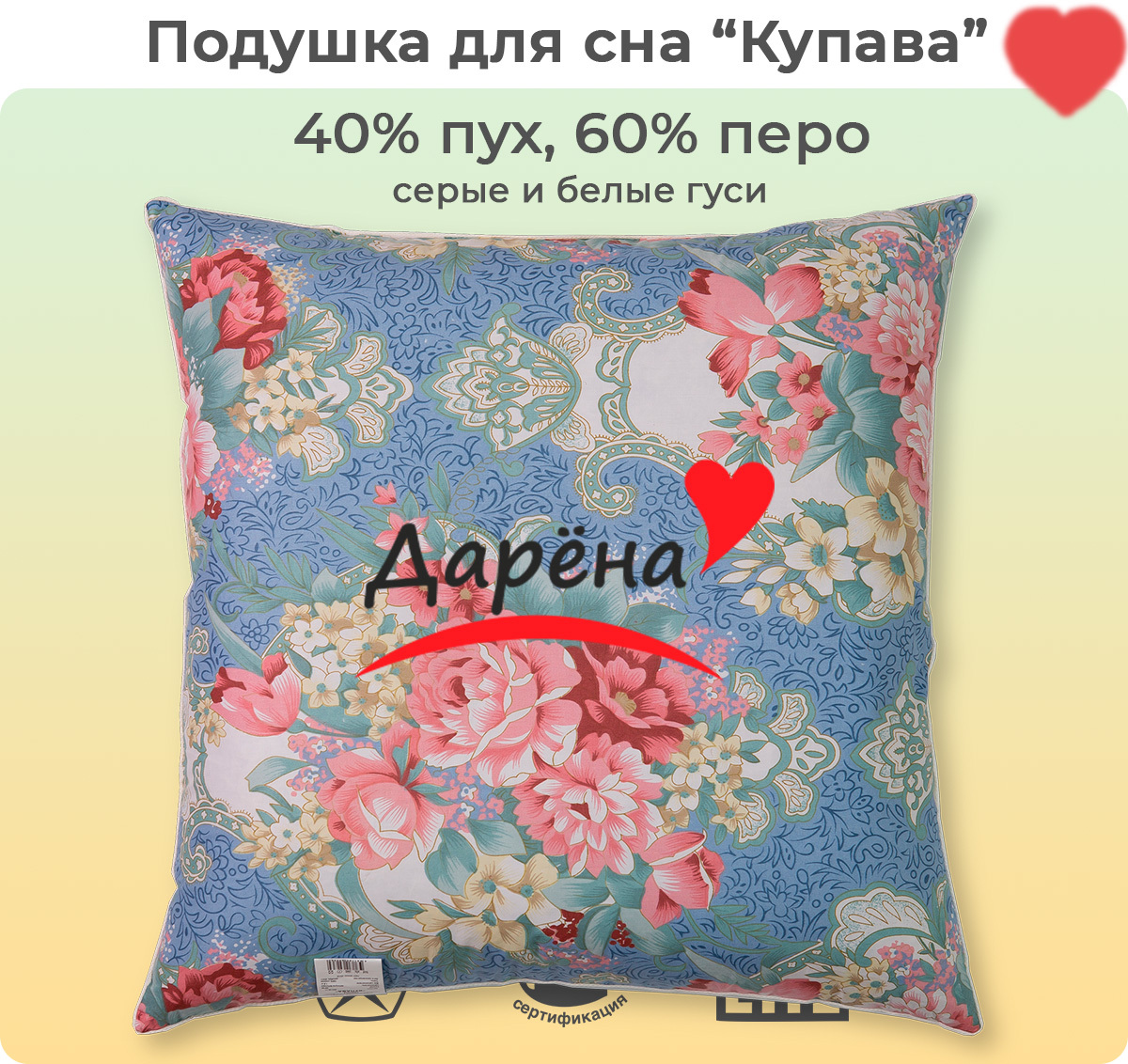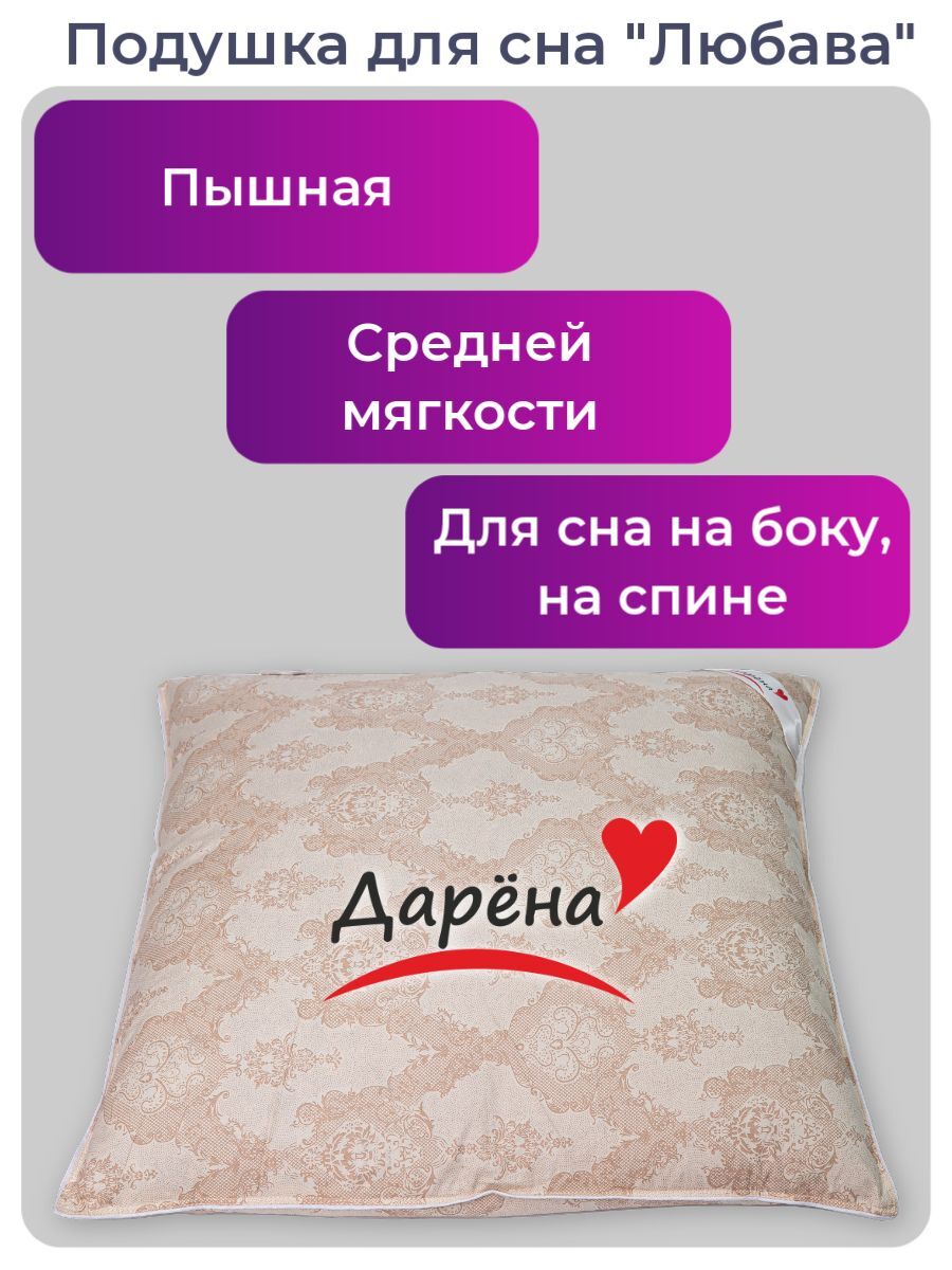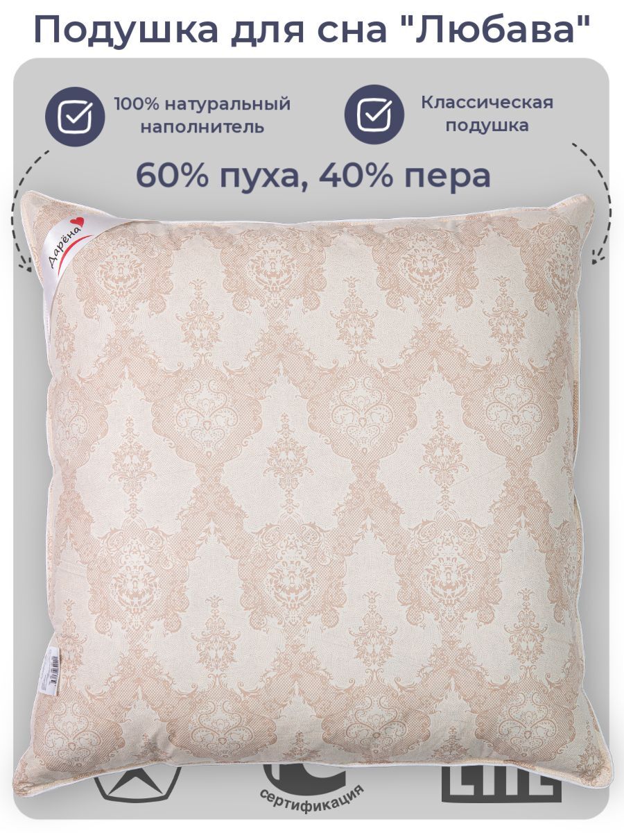 Подушка пуховая 70х70 Любава 40% пух, 60% перо для взрослых подушка для сна 68х68 см