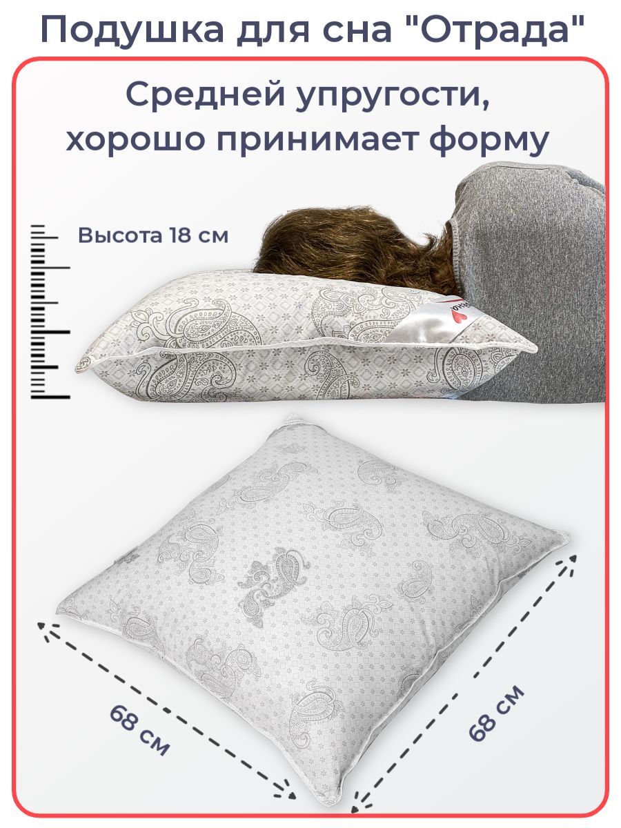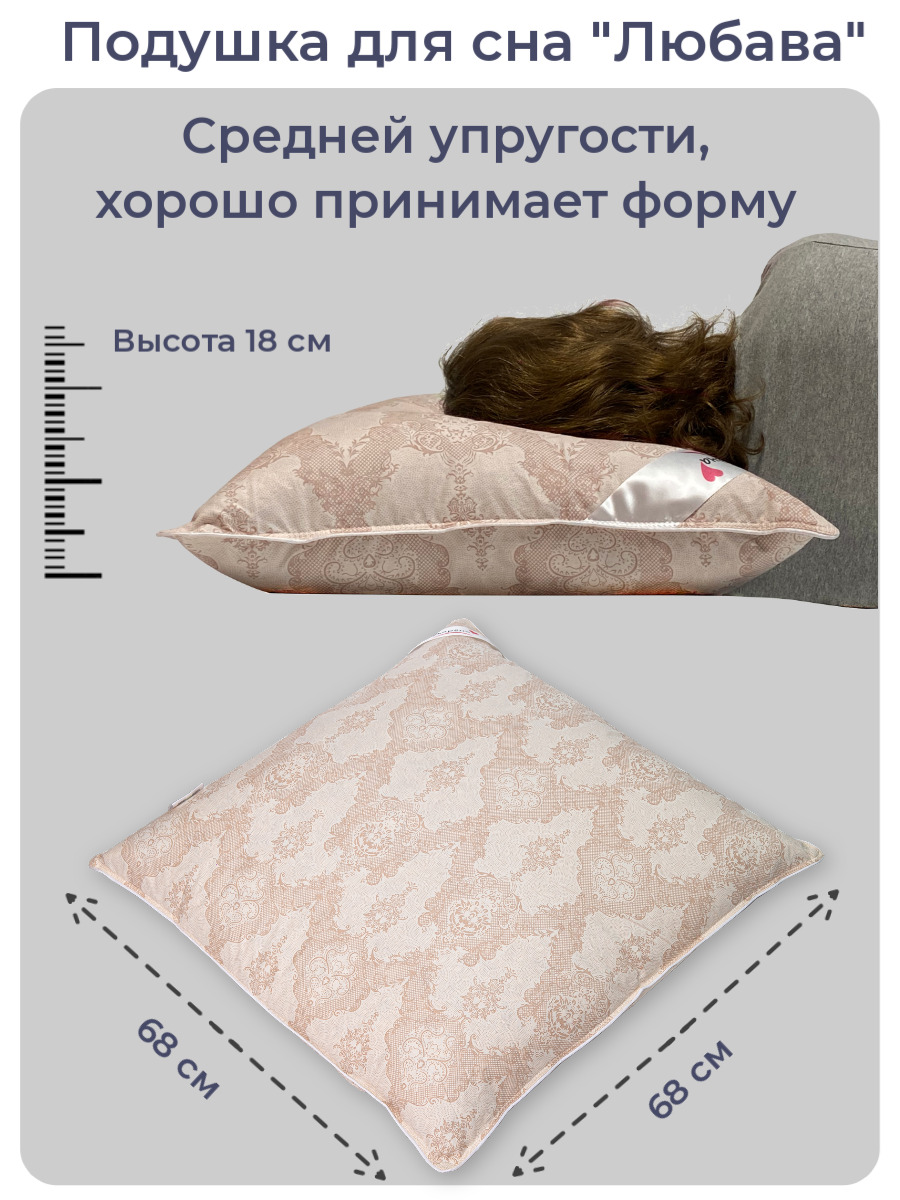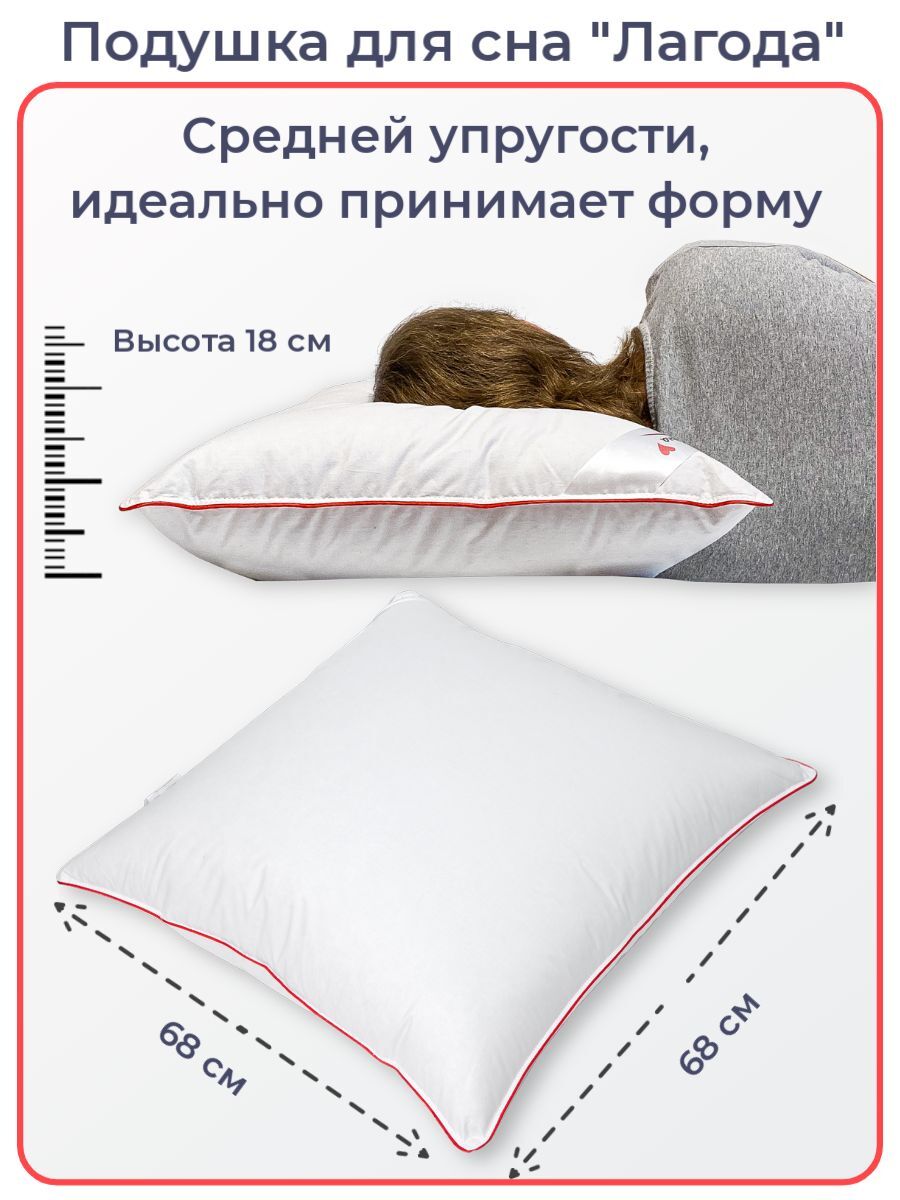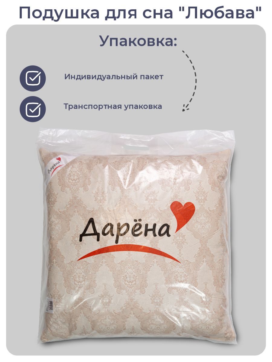 Подушка пуховая 70х70 Любава 40% пух, 60% перо для взрослых подушка для сна 68х68 см