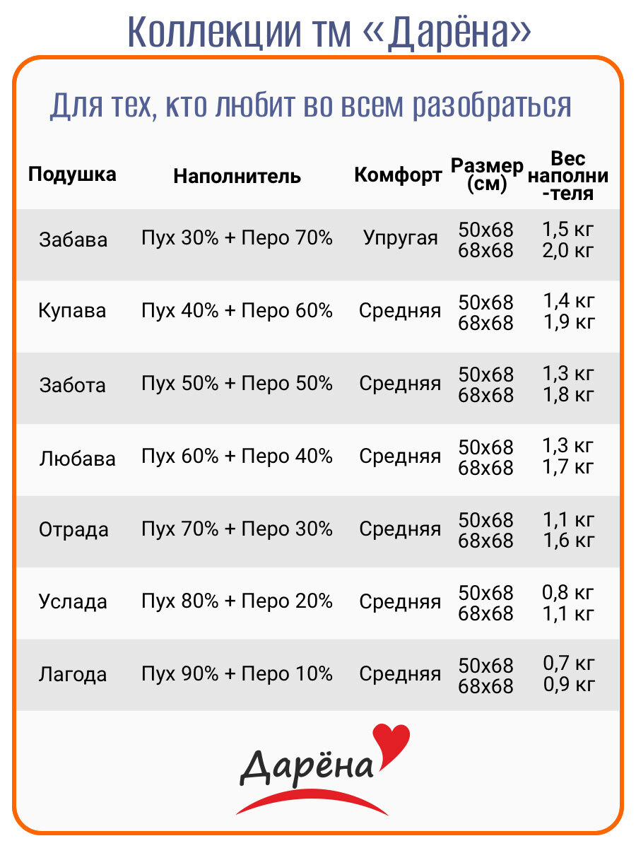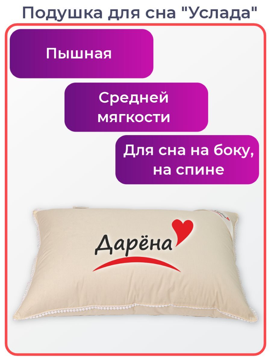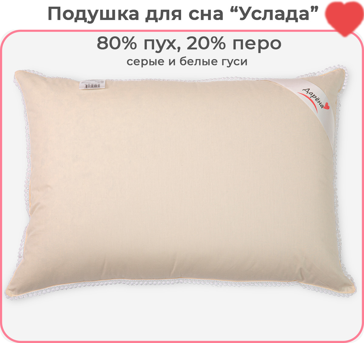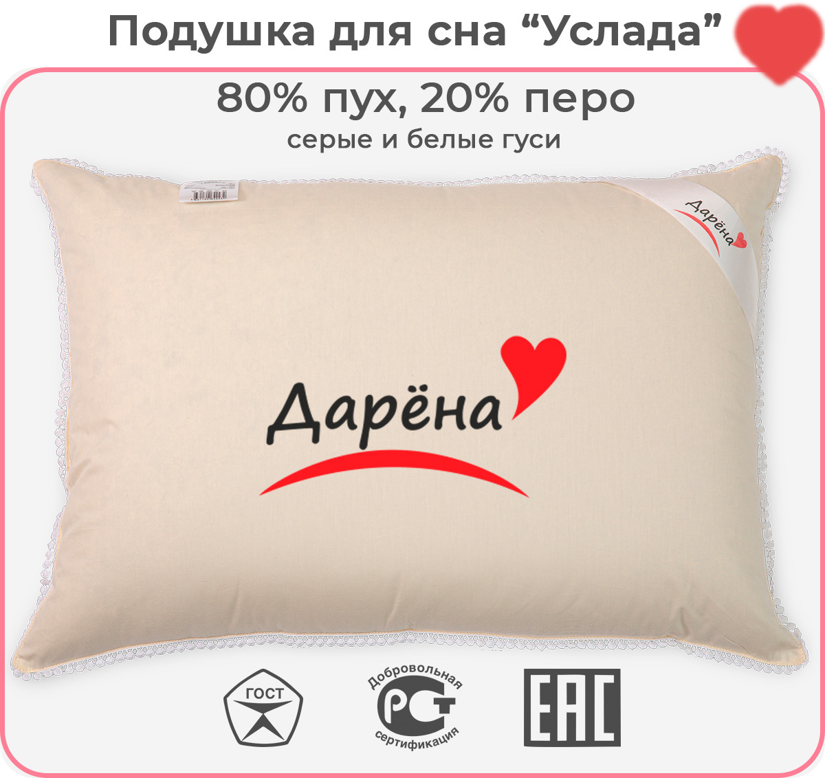 Подушка Дарёна Услада Пух-перо, Перо, 50x68 см