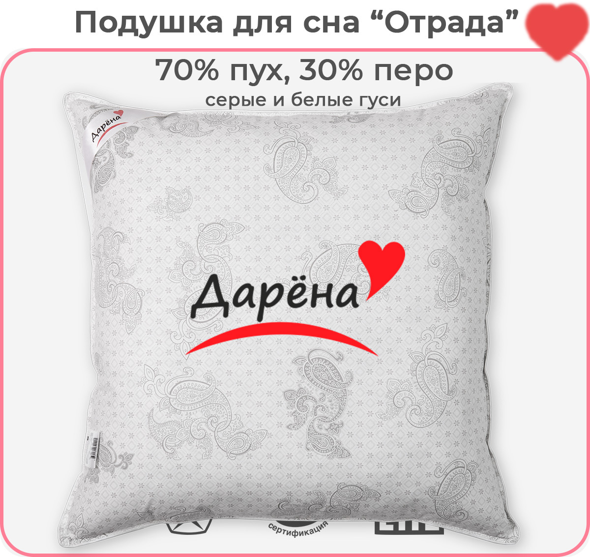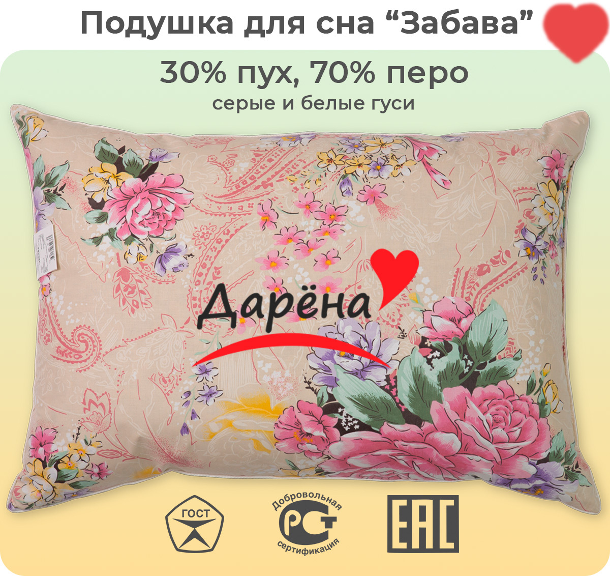 Подушка Дарёна Забава 50х68 Пух-перо, Перо, 50x68 см
