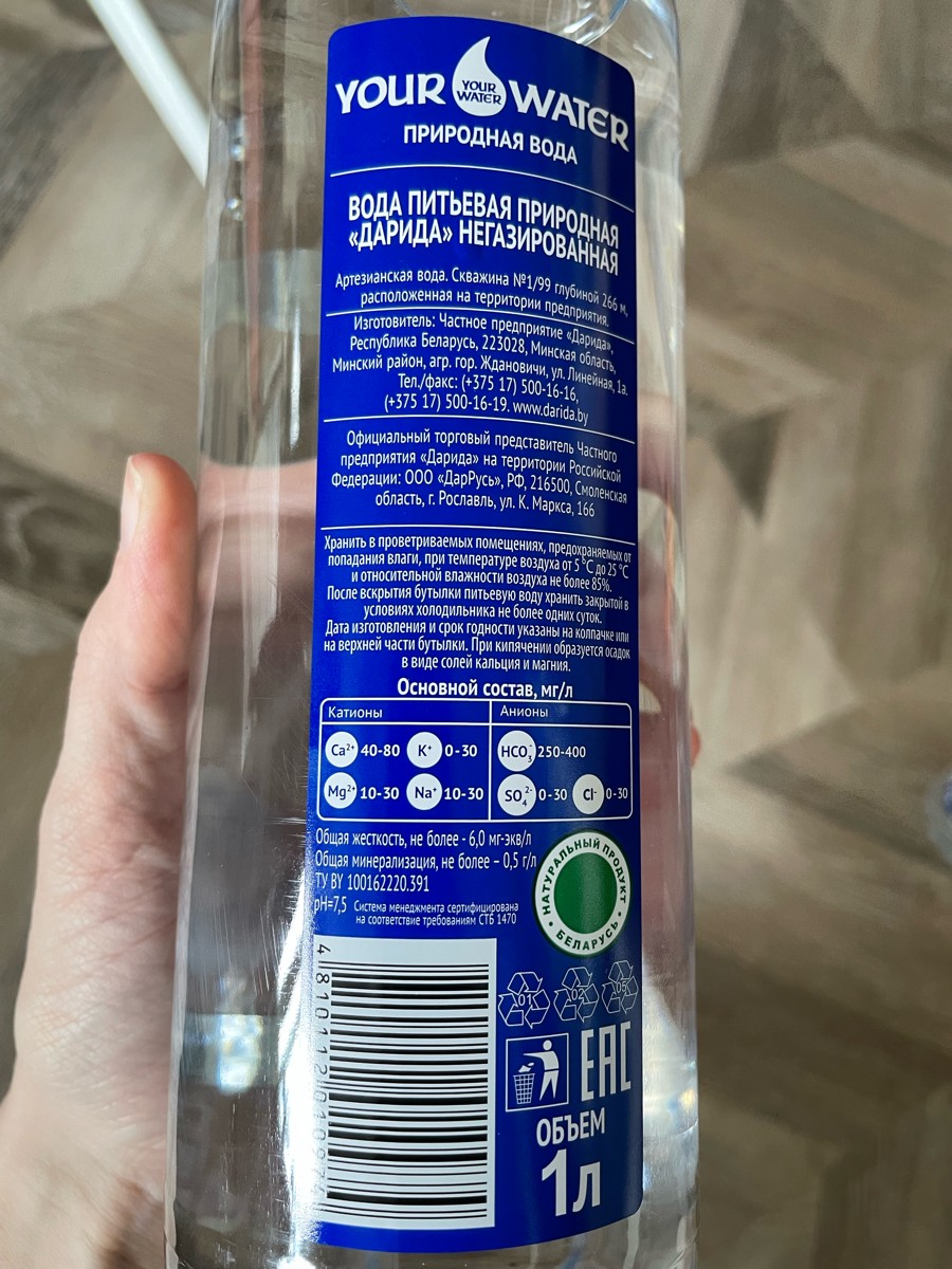 Дарида & Darida Вода питьевая негазированная природная "Your Water" / глубинная 260 м/ 0,5 литра,12 штук / упаковка воды