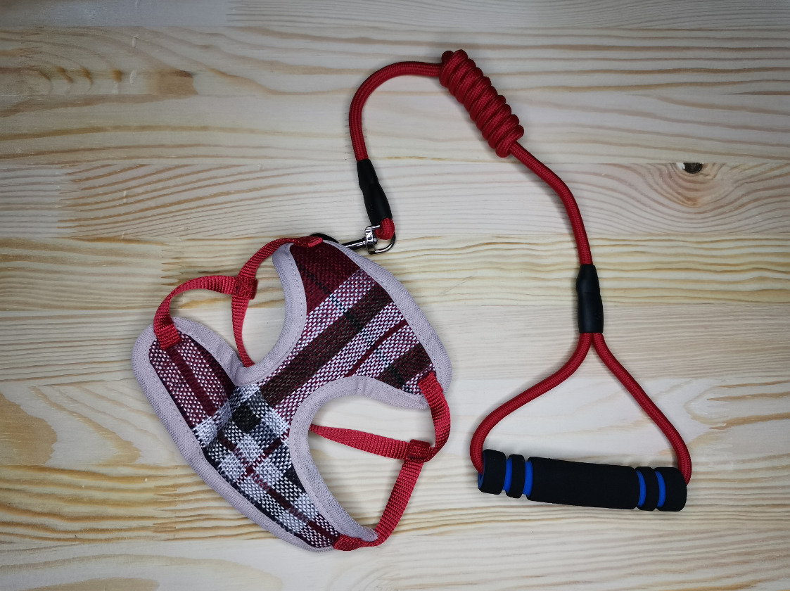 Шлейка эластичная с поводком, для кошек и собак, красная