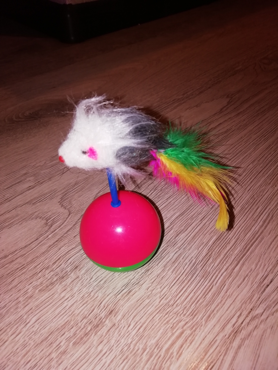 Игрушка - неваляшка мышка на шарике для кошек, бордово-оранжевая