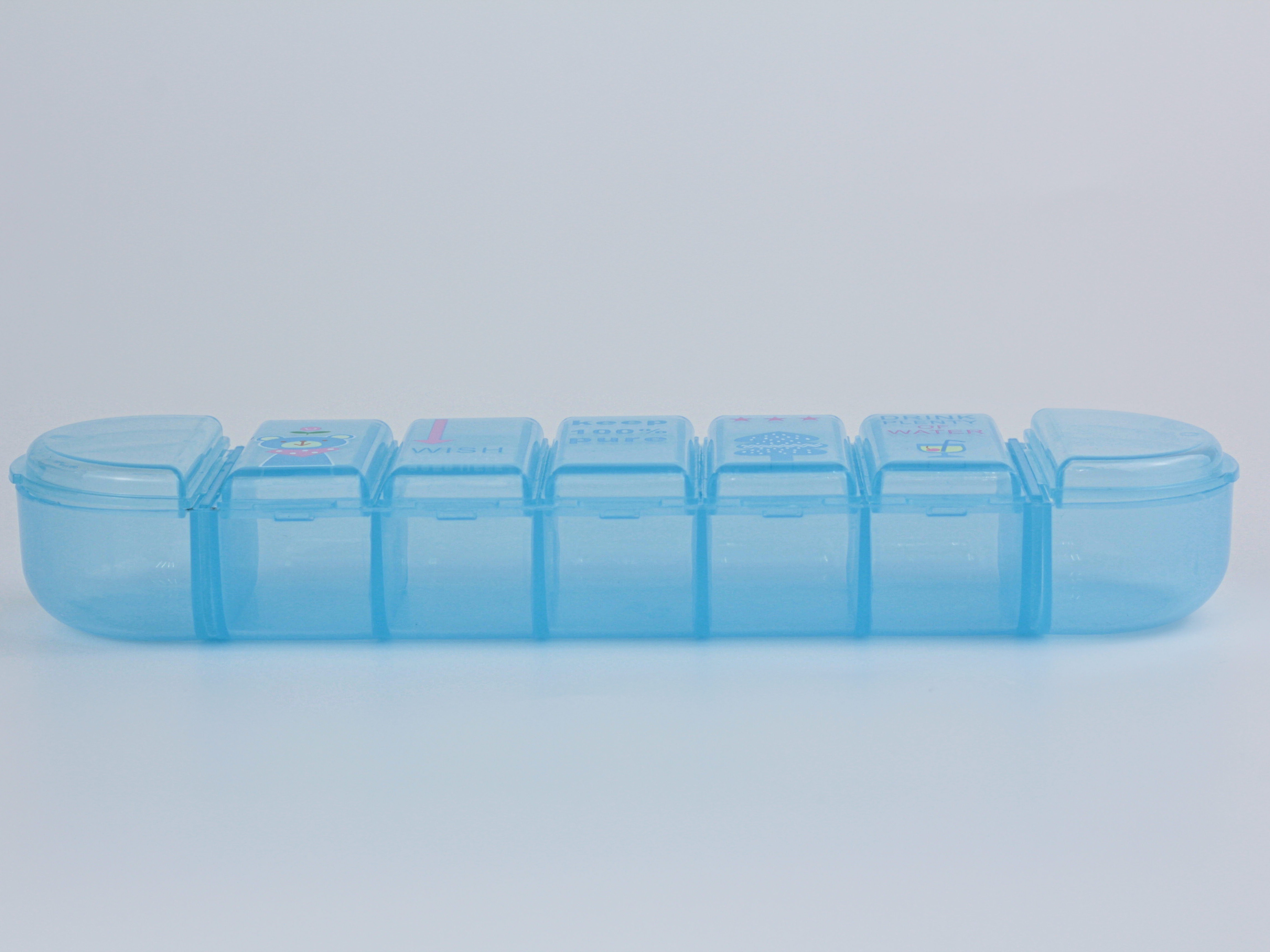 Контейнер органайзер для витаминов, таблеток голубой прозрачный 7 ячеек Dark Beauty