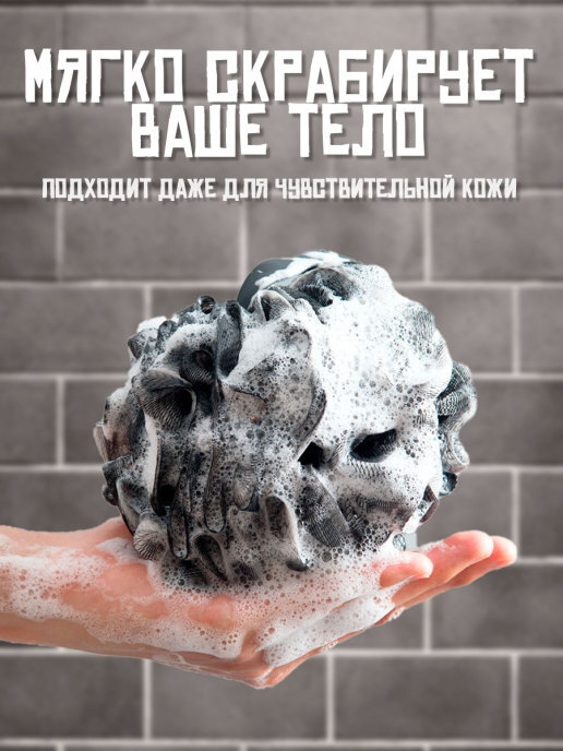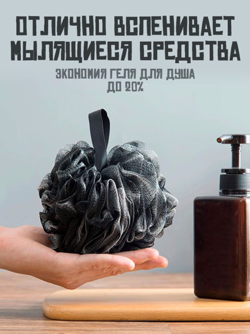 Мочалка для душа DarVi с добавлением натурального бамбукового угля