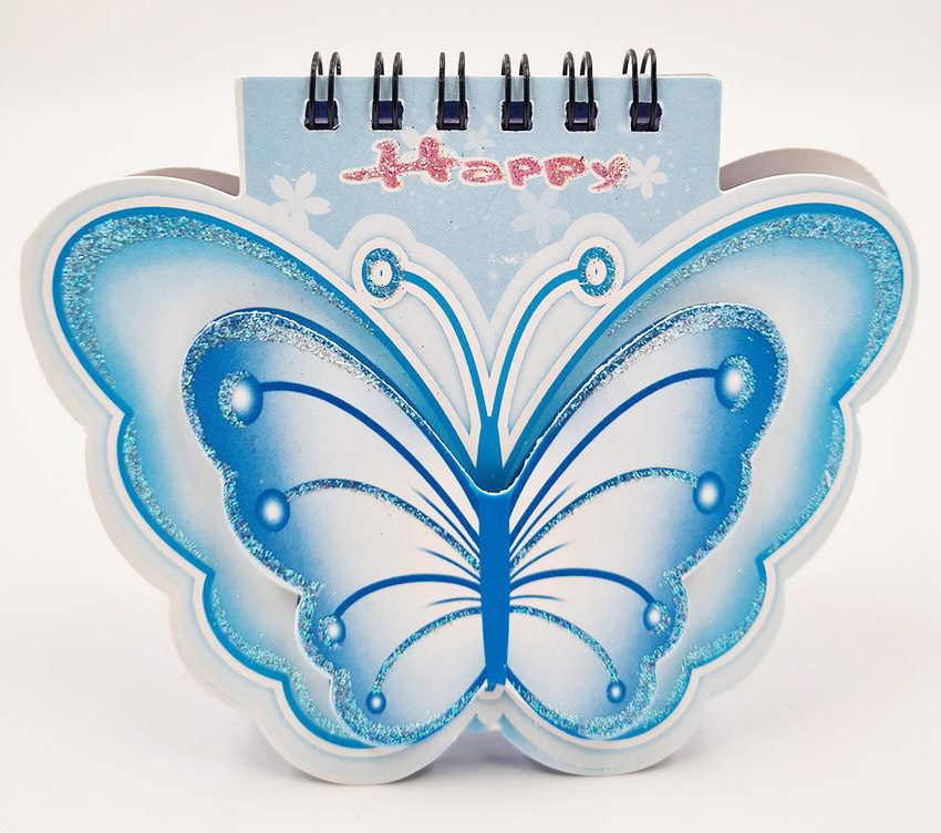 Блокнот на спирали с фигурной высечкой Бабочка, голубая, А7 50 листов, "Darvish", DV-7101