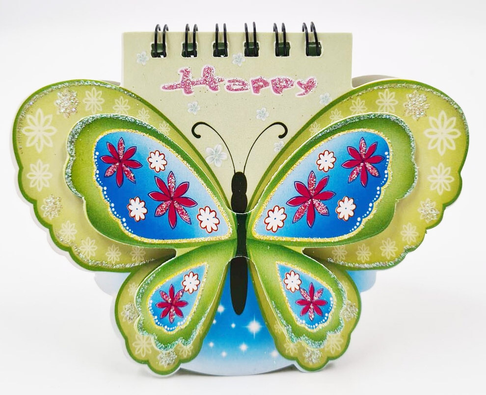 Блокнот на спирали с фигурной высечкой Бабочка, зелёная, А7 50 листов, "Darvish", DV-7101