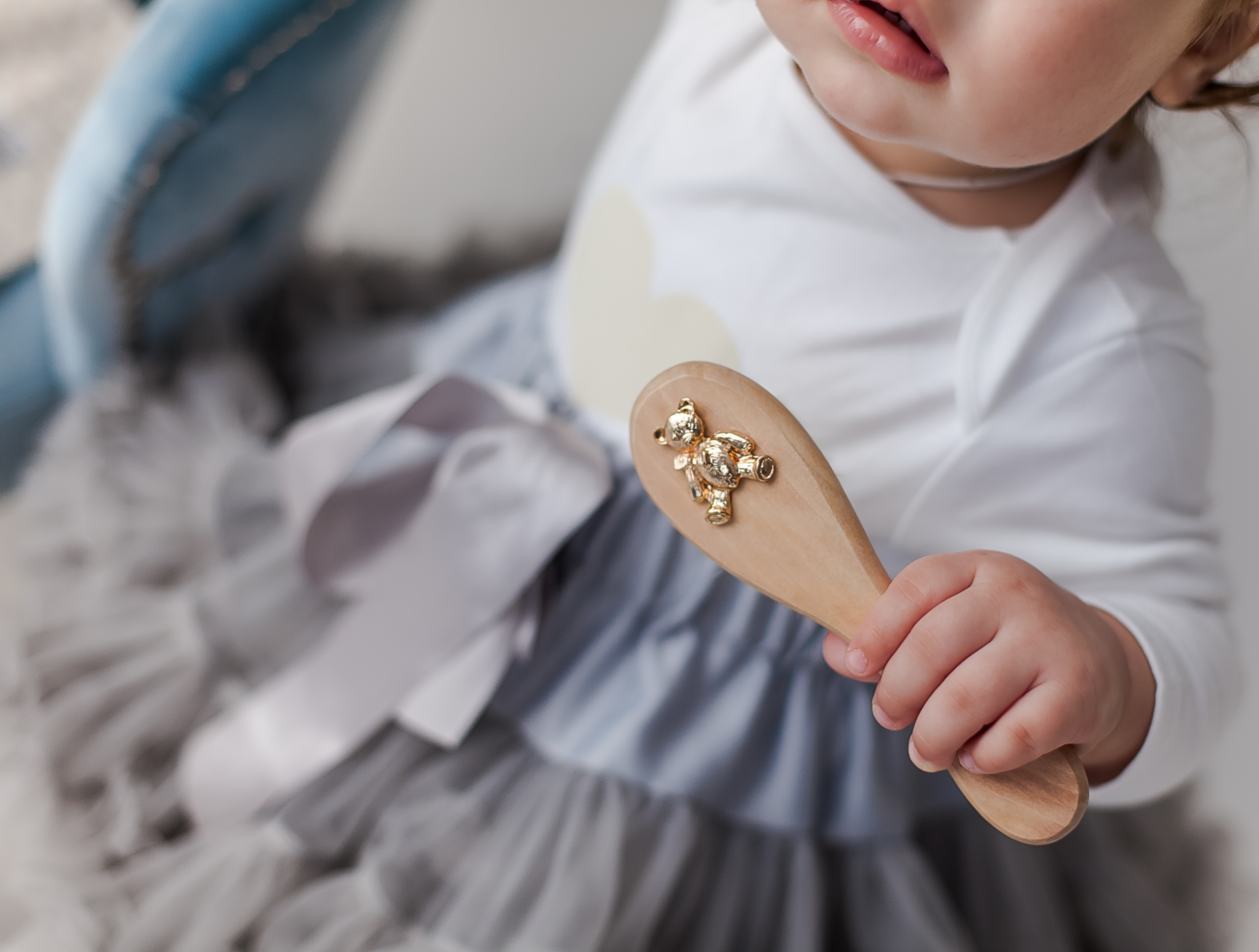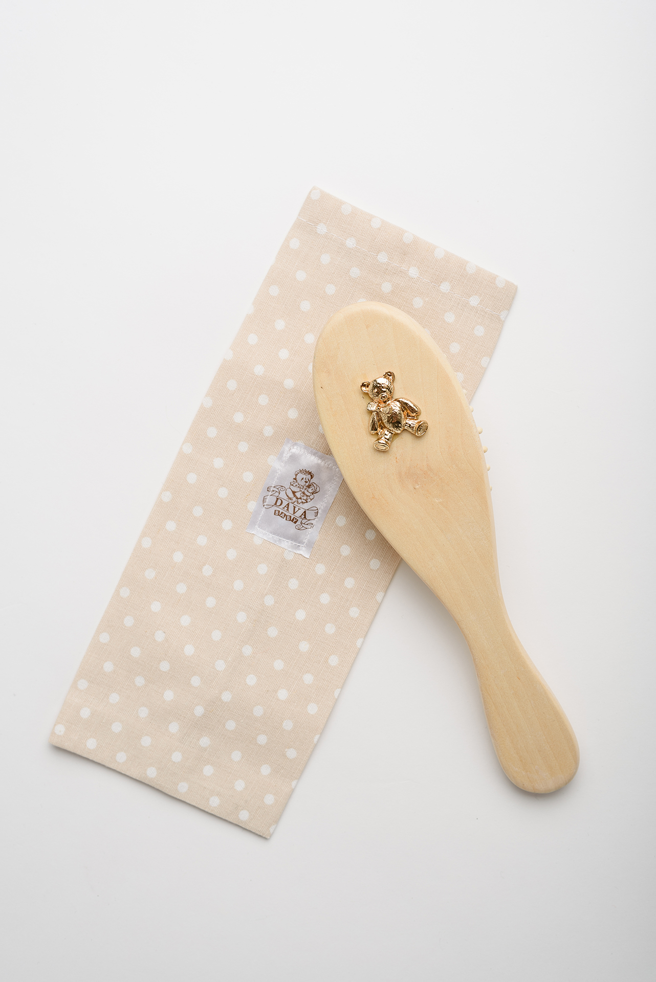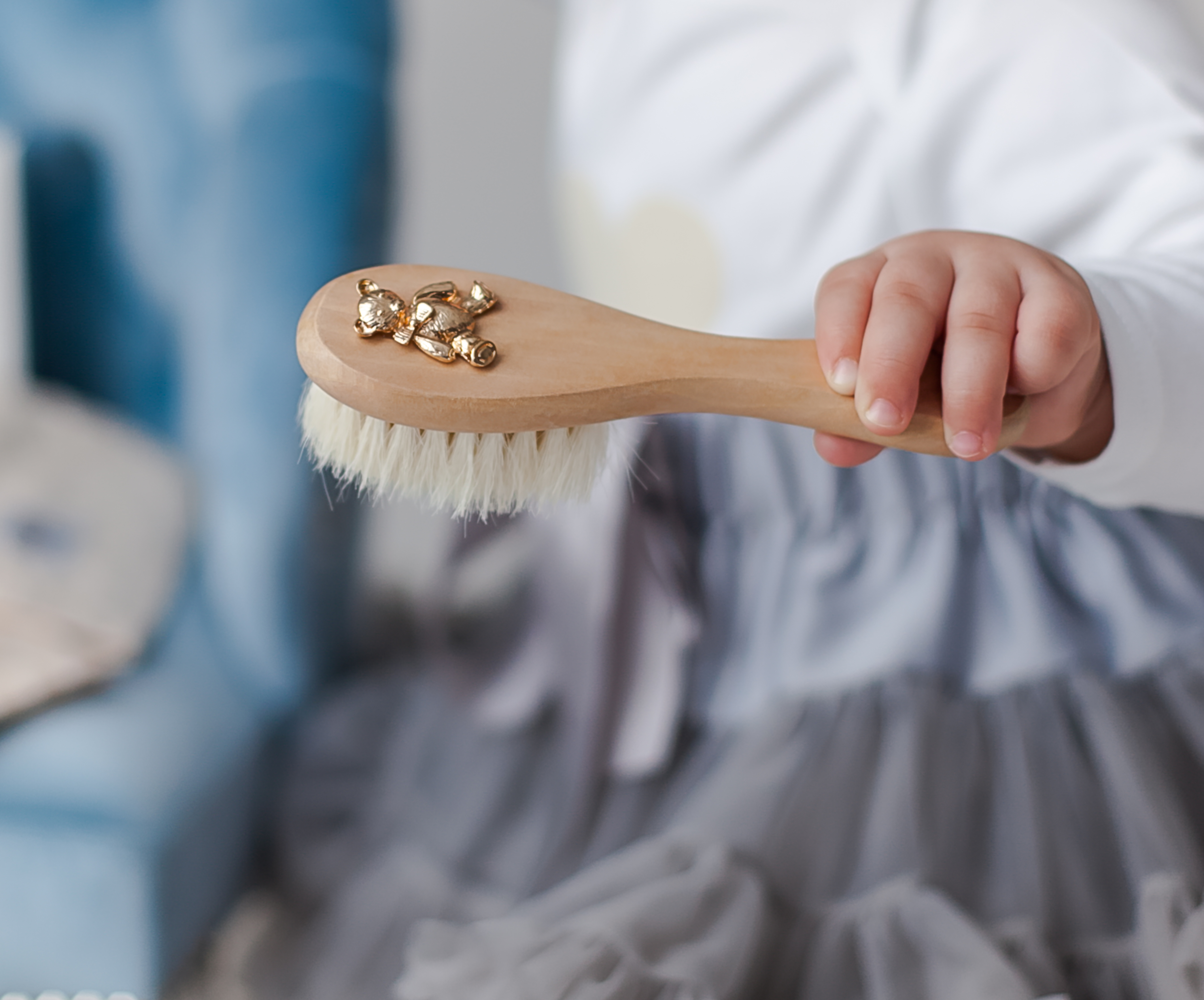 Расческа "Золотой мишка" деревянная с натуральной щетиной/подарок на рождение/ детская расческа