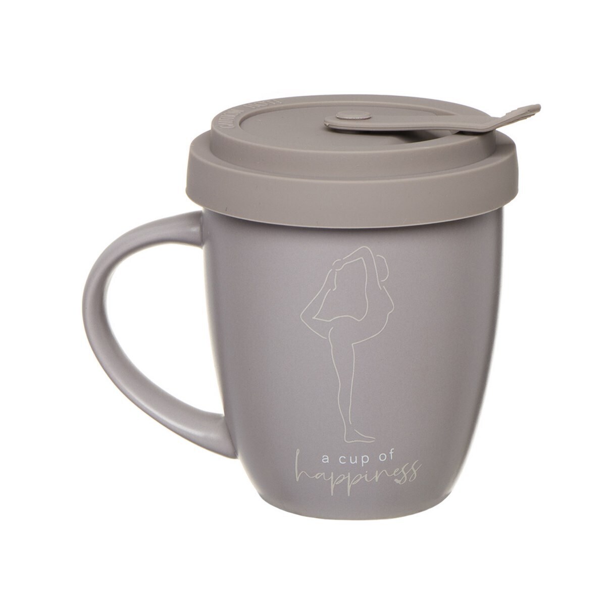 Кружка D'casa "с силиконовой крышкой Yoga серый", 360 мл