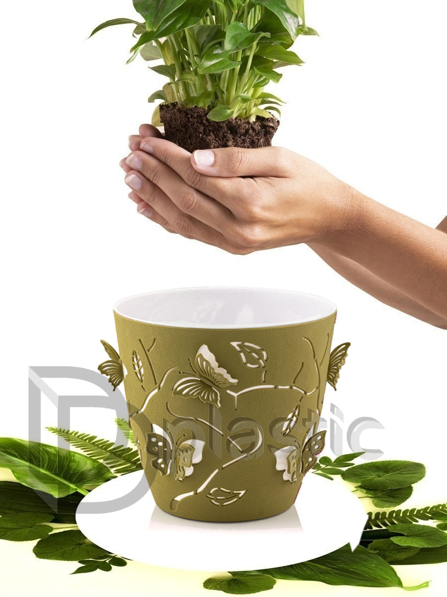 Горшок для цветов, Кашпо DDplastic, Оливковый, 2,5 л, 1 шт