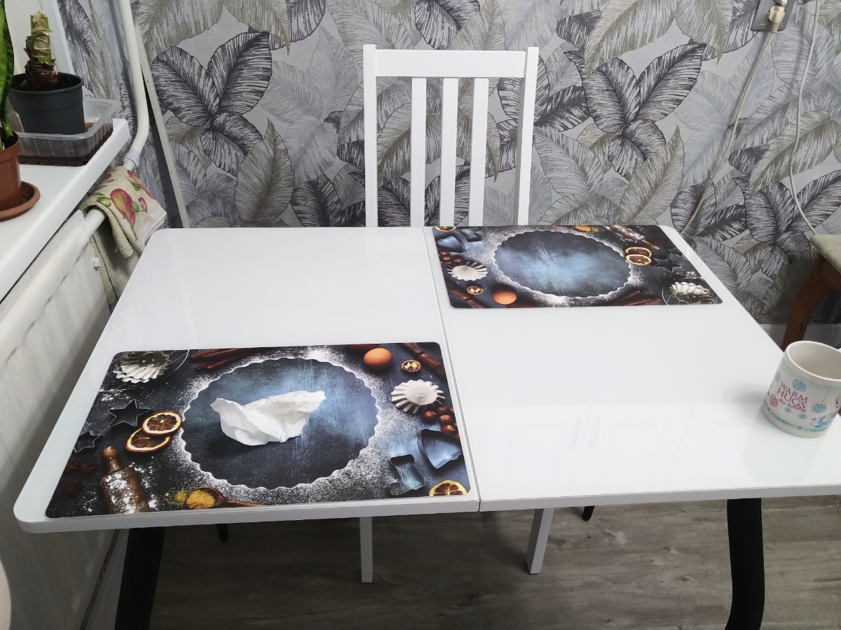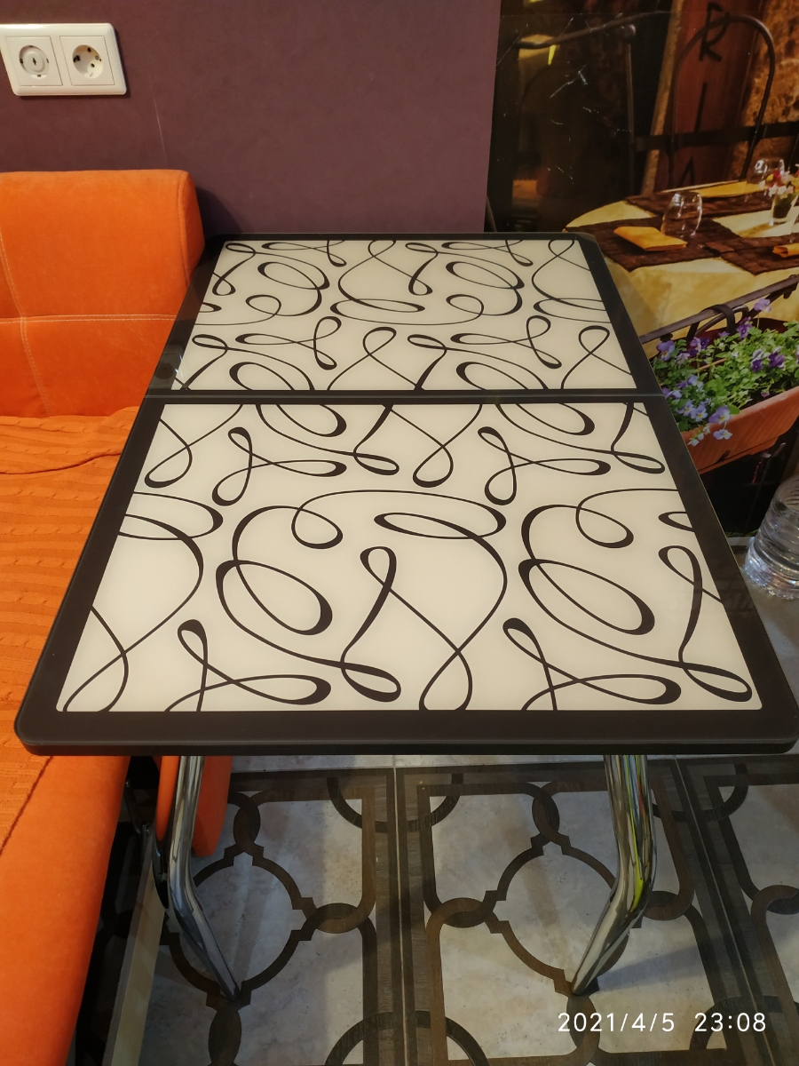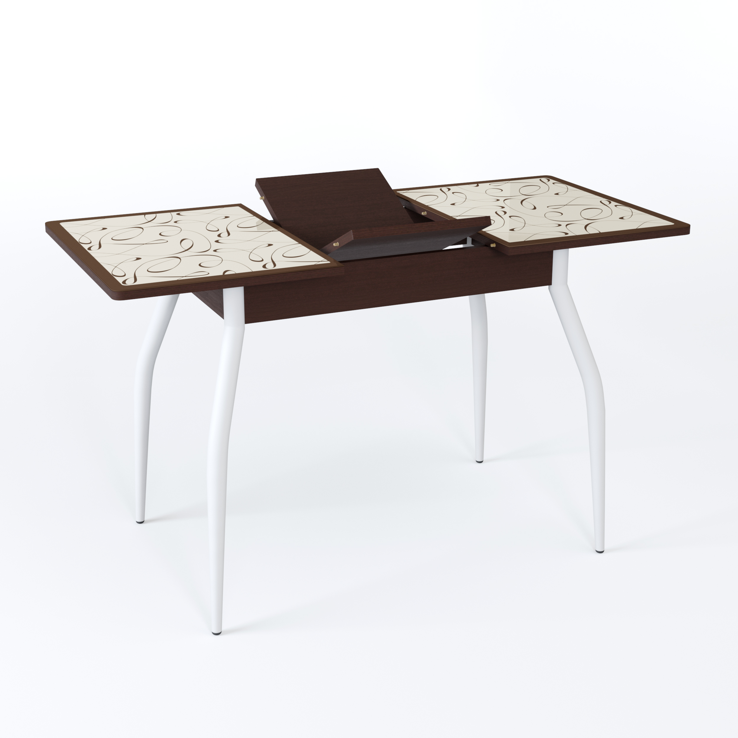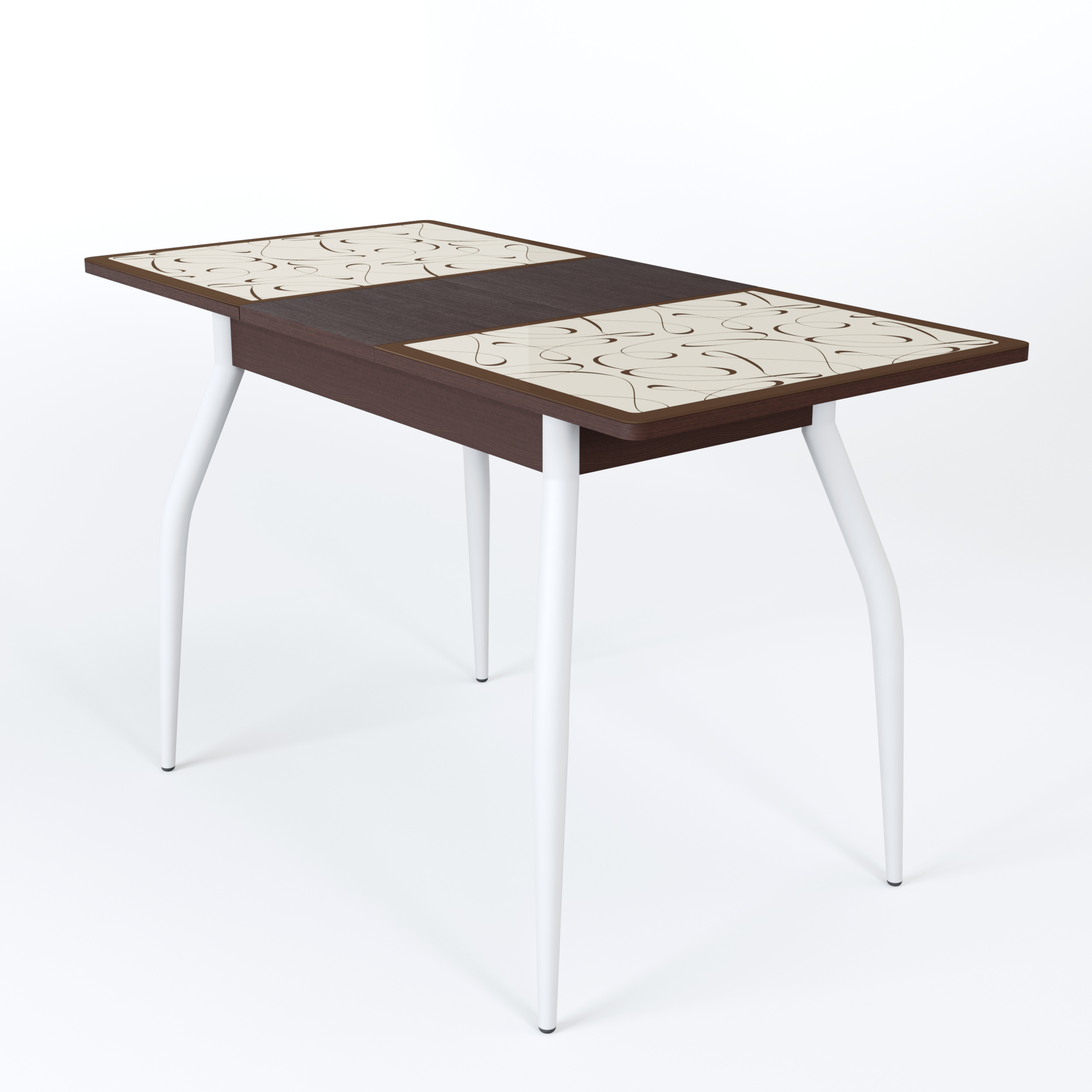 Стол обеденный Раздвижной Аспен, столешница со стеклом, фотопечать, ноги белые (металл), 90х60х75 см